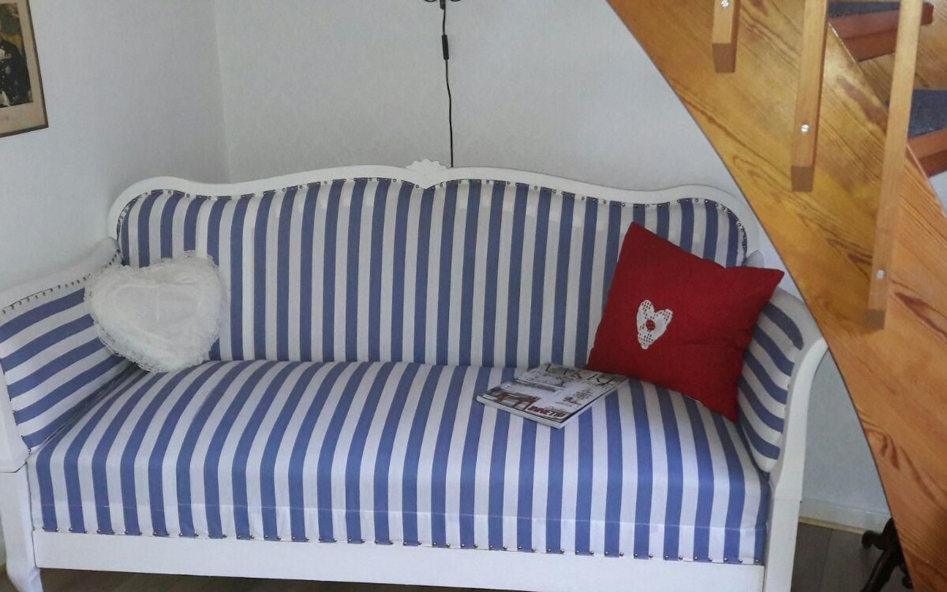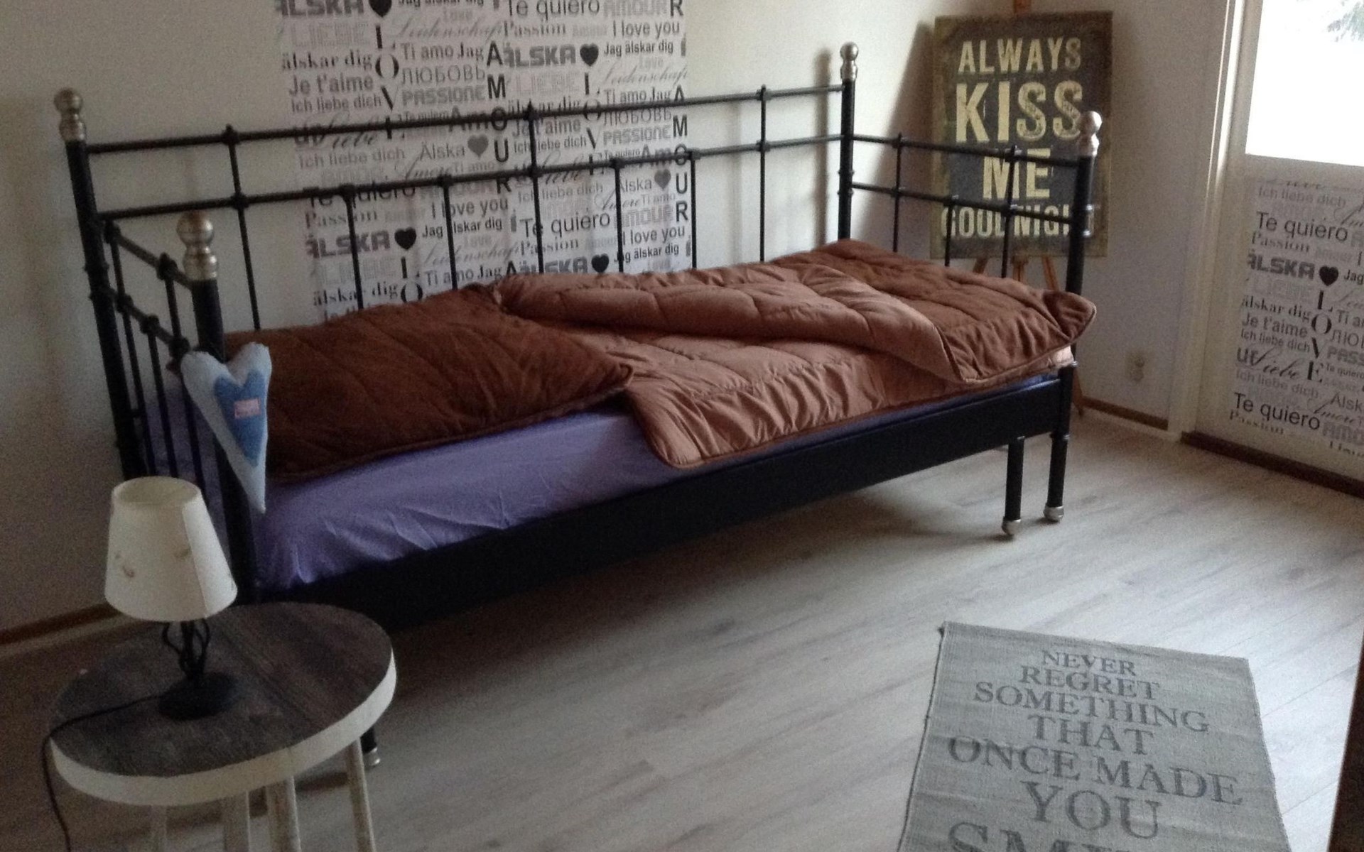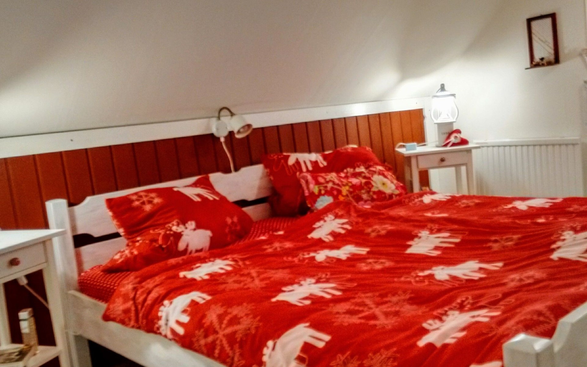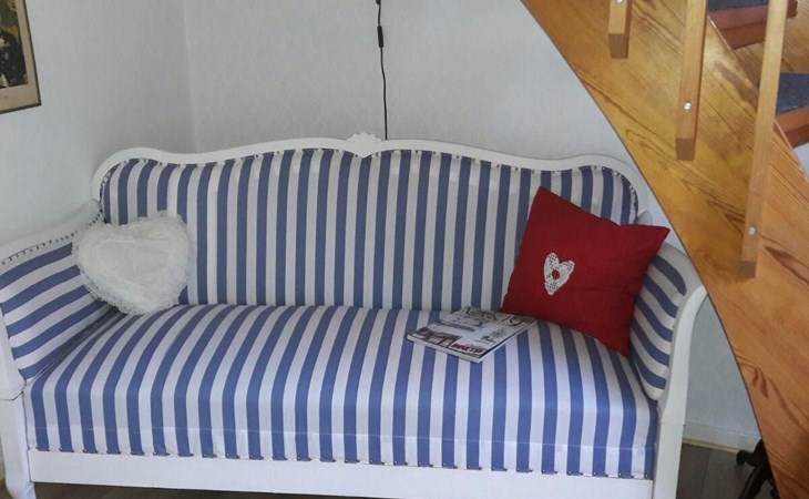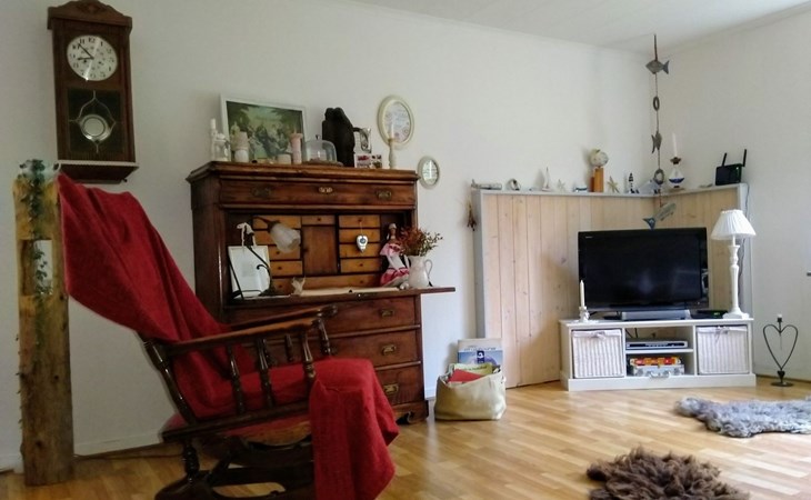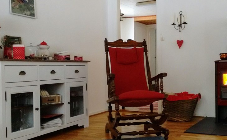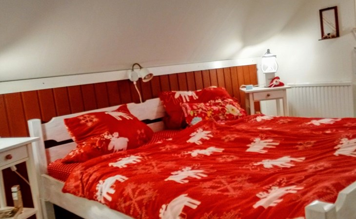 Dieses kürzlich renovierte Ferienhaus verfügt über drei Schlafzimmer mit einem Doppelbett (180 x 200 cm), einem Doppelbett (140 x 200 cm) mit Balkon, einem Einzelbett (90 x 200 cm) und einen Schlafplatz im Loft mit einem Einzelbett (80 x 200 cm). Im gemütlich eingerichteten Wohn- und Essbereich gibt es ein Sofa und drei Schaukelstuhl, Sat.-TV, einen Kamin und einen Esstisch mit Stühlen. Die Küche ist neu eingerichtet und mit allem ausgestattet was man braucht: Herd, Backofen, Kühl- und Gefrierschrank, Toaster, Wasserkocher, Spülmaschine, Mikrowelle und Kaffeemaschine. Des Weiteren gibt es ein Bad mit Toilette und Waschbecken, dort steht auch die Waschmaschine.