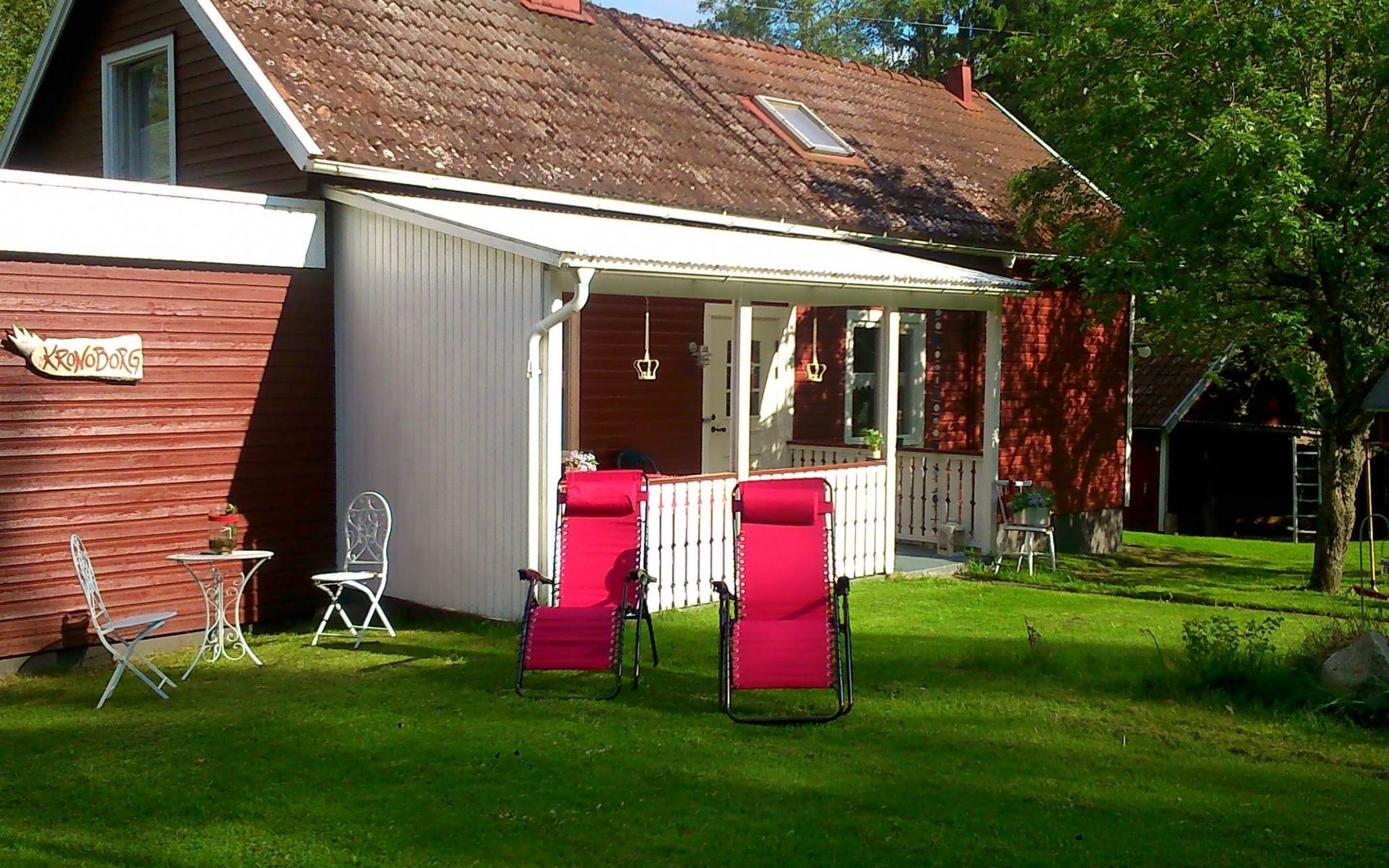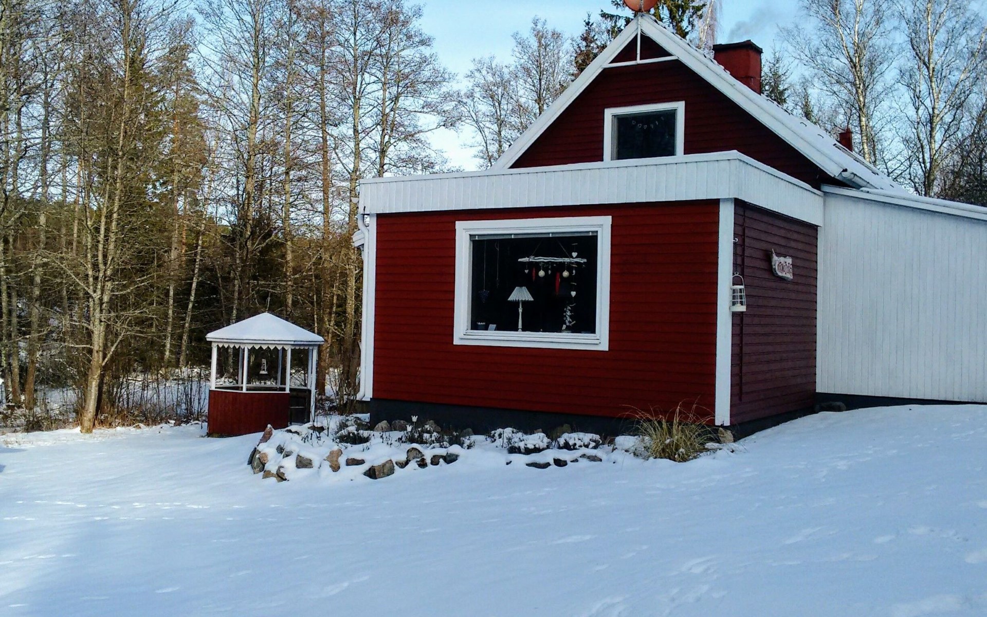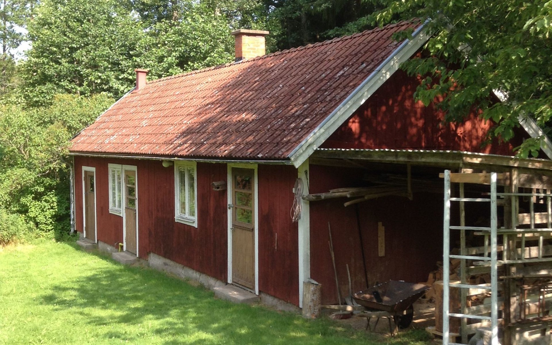 Auf dem Grundstück steht noch ein Nebengebäude, ein Garten-Pavillon und es gibt zwei Parkmöglichkeiten: eine Garage und einen Carport. Das Grundstück ist von einem kniehohen Holzzaun umgeben. Dementsprechend sollten Sie auf Ihr freilaufendes Haustier ein Auge haben.