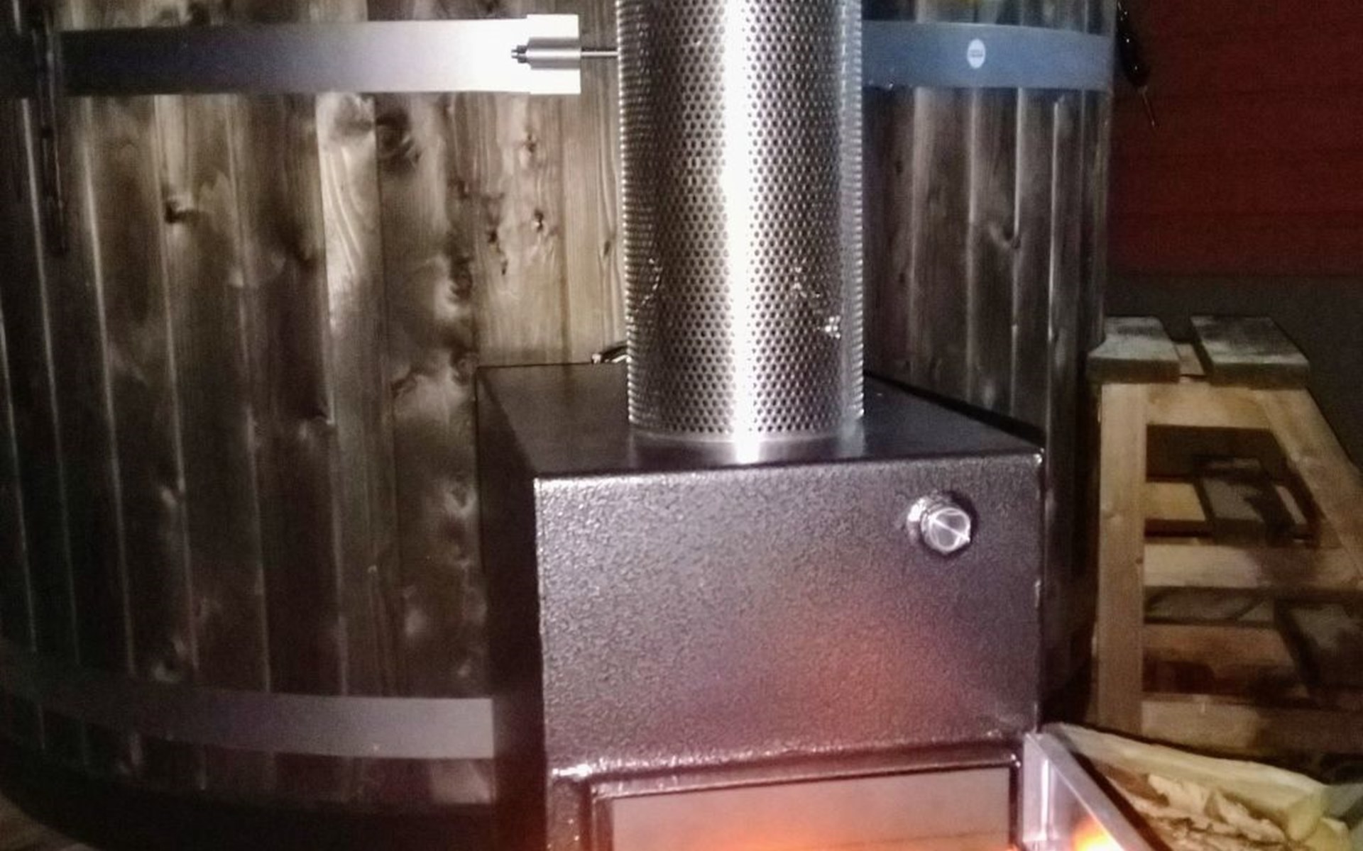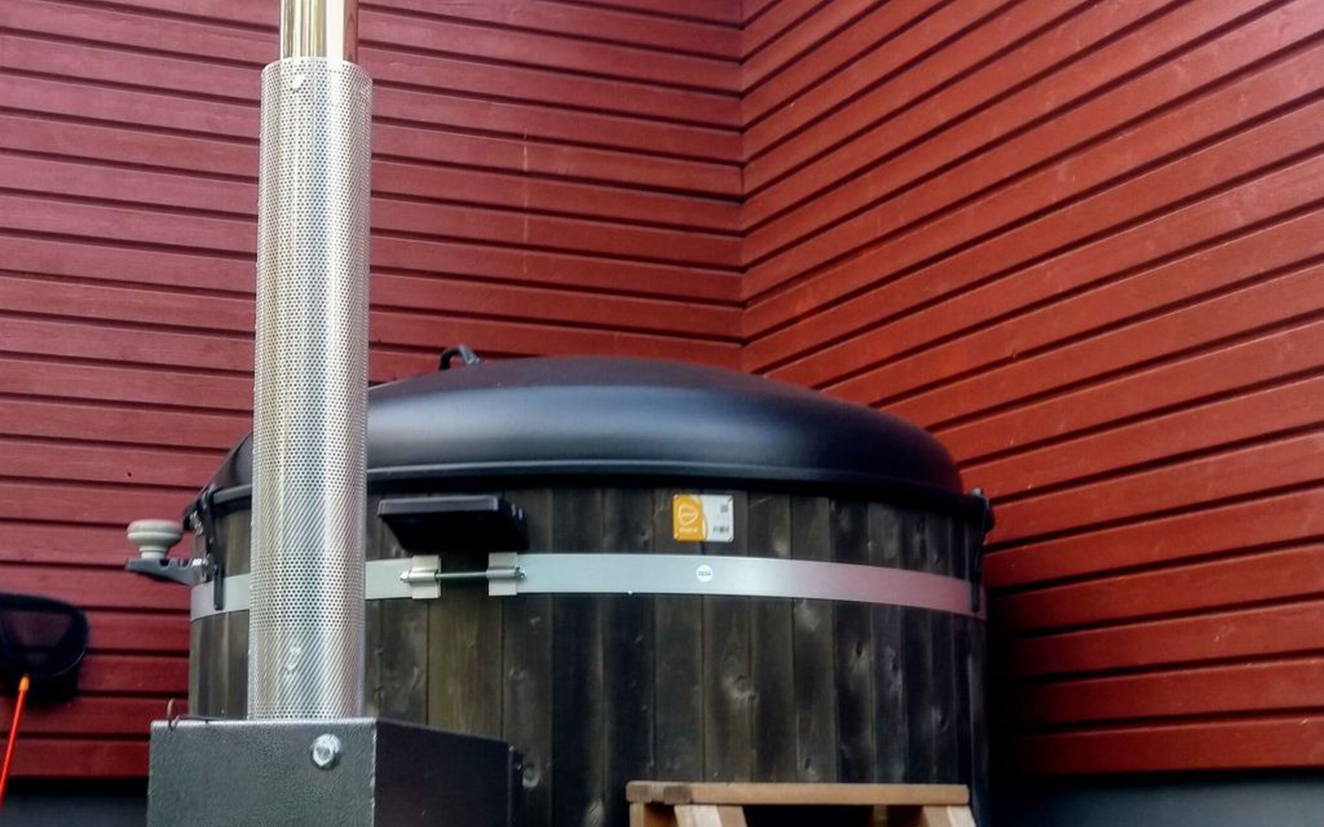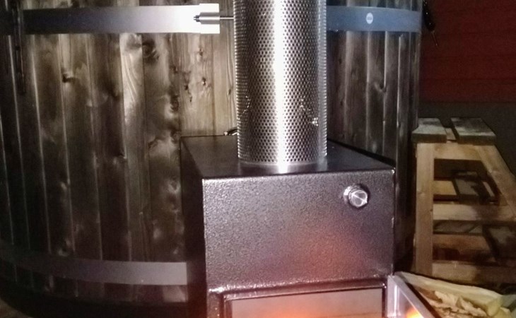 Hier befindet sich auch der Tot Tub mit externem Ofen.