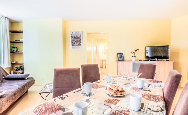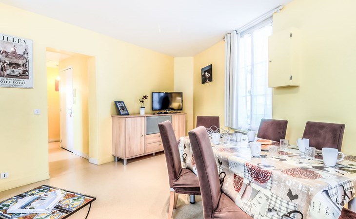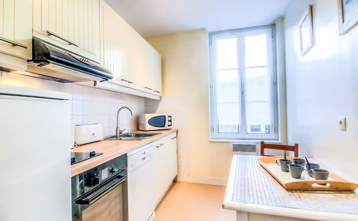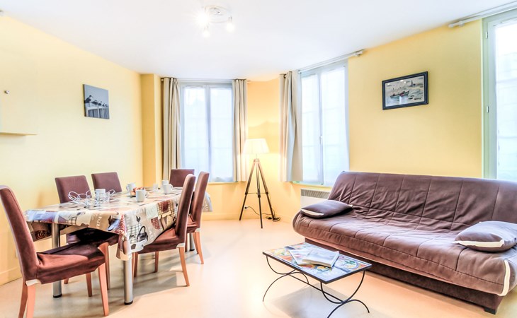 Trouville sur Mer: Kleine Residenz "Orléans", auf 3 Stockwerken. Zentrale Lage, 300 m vom Meer, 300 m vom Strand. Einkaufsgeschäft, Lebensmittelgeschäft 10 m, Supermarkt 200 m, Restaurant 10 m, Bushaltestelle "Casino de Trouville" 250 m, Bahnstation "Deauville-Trouville" 900 m, Hallenbad 400 m, Thermalbad "Trouville sur Mer" 300 m. Golfplatz (18 Loch) 5 km, Segelschule 1.1 km, Tennis 400 m. Nahe gelegene Sehenswürdigkeiten: Hippodrome Deauville-La Touques 2.9 km, Honfleur 15 km, Mémorial de Caen 50 km, Plage du débarquement d'Arromanches 86 km. Die Schlüsselübergabe findet bei der Agentur Interhome in Deauville statt.