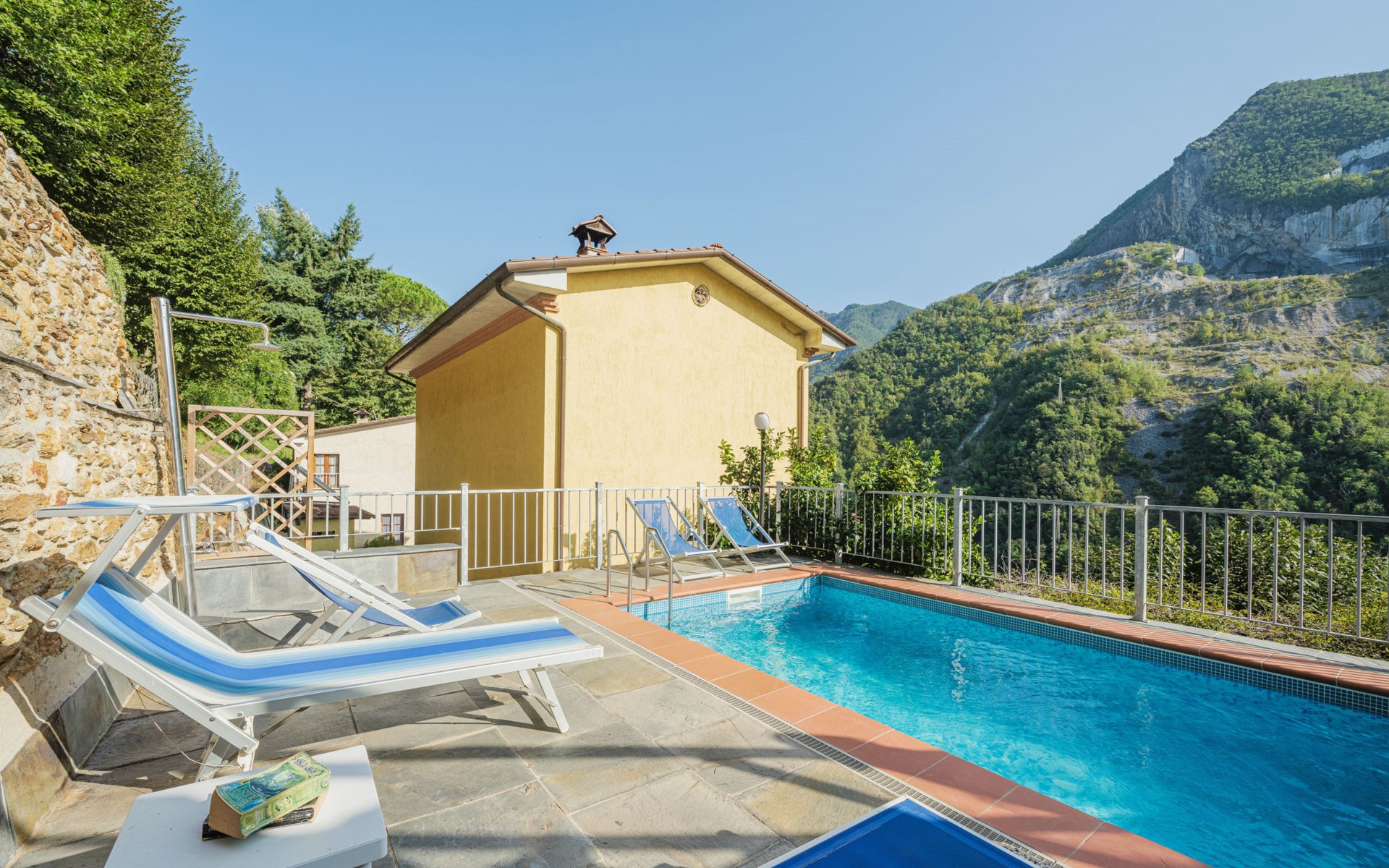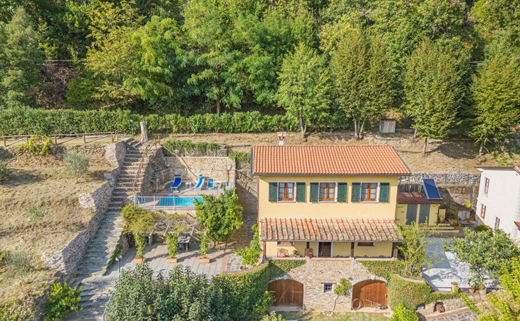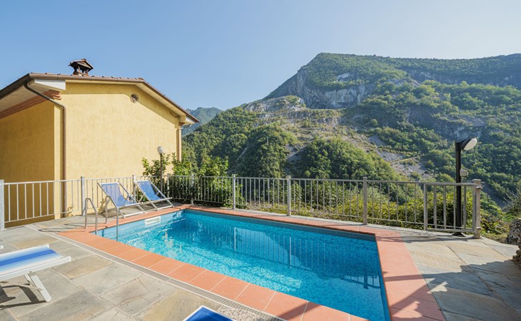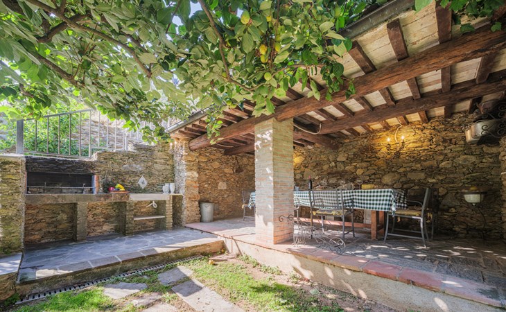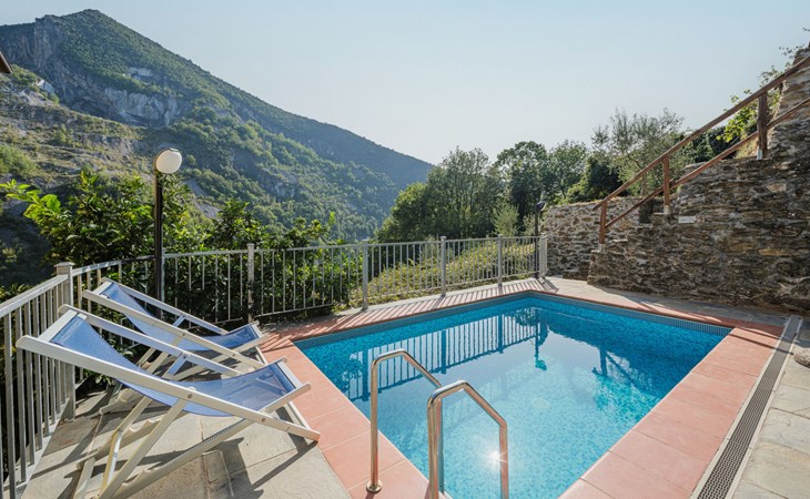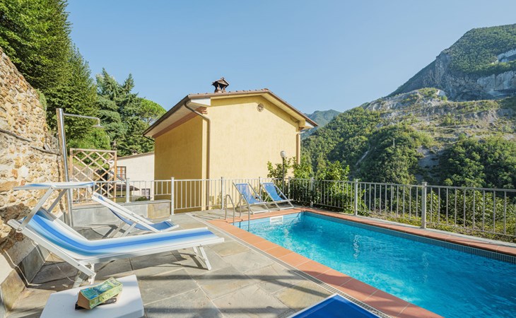 Seravezza: Gemütliches, rustikales, freistehendes Einfamilienhaus "L'Aia", auf 2 Stockwerken. 2 Häuser in der Residenz. 1 km vom Zentrum von Seravezza, ruhige, sonnige Lage am Hang, 50 m vom Waldrand, 9 km vom Meer, 9 km vom Strand, in einer Sackgasse, im Grünen. Zur Alleinbenutzung: Garten 50 m2 mit Rasen und Pflanzen, Schwimmbad (4 x 3 m, 140 cm tief, saisonale Verfügbarkeit: 19.Mai. - 30.Sep.). Aussendusche, Pergola, Terrasse, Gartenmöbel, Grill. In der Anlage: Sauna (extra). Sprudelbad, Waschmaschine (zur Mitbenutzung). Wäschewechsel (zusätzlich extra). Handtuchwechsel (zusätzlich extra). Steile, schmale Zufahrt bis zum Haus. Parkplatz beim Haus auf dem Grundstück. Lebensmittelgeschäft 1 km, Supermarkt 1 km, Restaurant 1 km, Bushaltestelle 800 m, Sandstrand "Forte dei Marmi" 11 km. Golfplatz (18 Loch) 12 km, Wanderwege ab Haus 30 m. Nahe gelegene Sehenswürdigkeiten: Pietrasanta 5 km, Forte dei Marmi 10 km, Lucca 32 km, Pisa 40 km. Bitte beachten: Fahrzeug empfohlen. Ferienwohnung Ref. IT5167.151.1 befindet sich auf dem gleichen Grundstück.