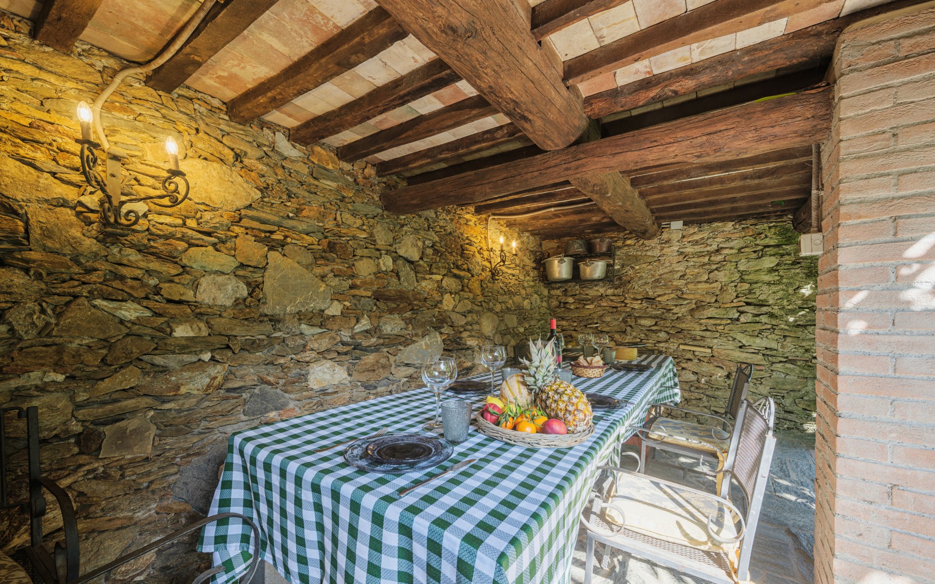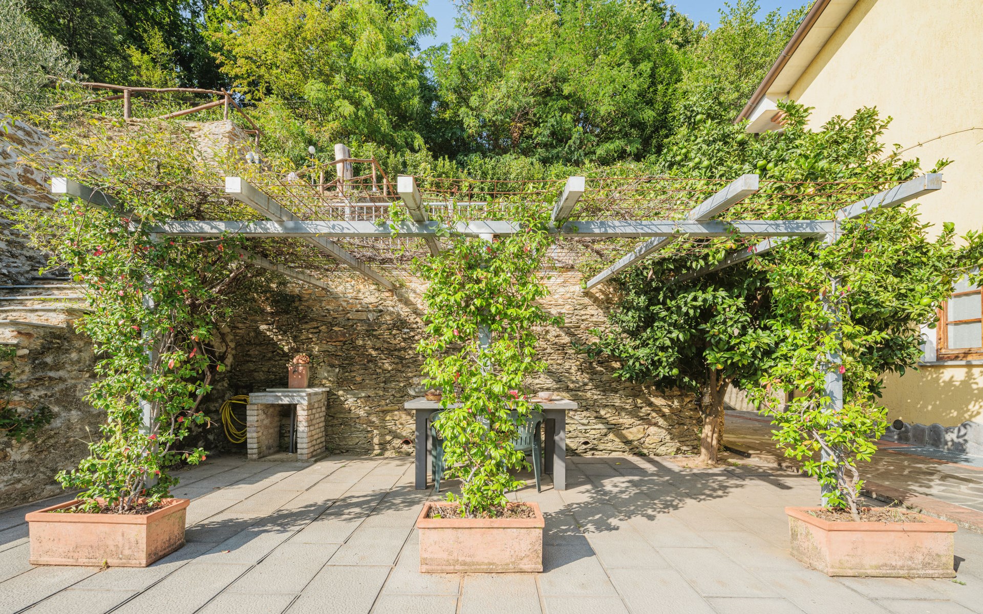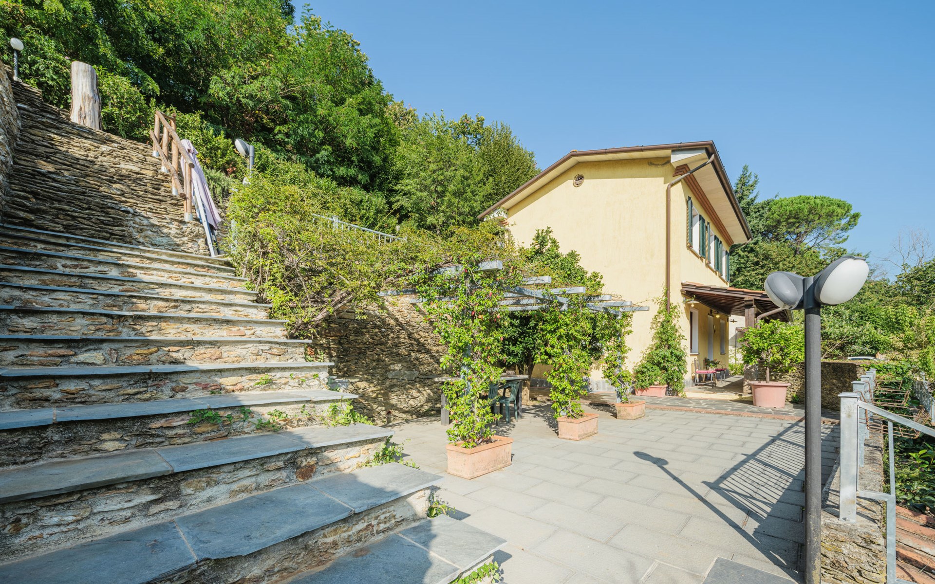 Seravezza: Gemütliches, rustikales, freistehendes Einfamilienhaus "L'Aia", auf 2 Stockwerken. 2 Häuser in der Residenz. 1 km vom Zentrum von Seravezza, ruhige, sonnige Lage am Hang, 50 m vom Waldrand, 9 km vom Meer, 9 km vom Strand, in einer Sackgasse, im Grünen. Zur Alleinbenutzung: Garten 50 m2 mit Rasen und Pflanzen, Schwimmbad (4 x 3 m, 140 cm tief, saisonale Verfügbarkeit: 19.Mai. - 30.Sep.). Aussendusche, Pergola, Terrasse, Gartenmöbel, Grill. In der Anlage: Sauna (extra). Sprudelbad, Waschmaschine (zur Mitbenutzung). Wäschewechsel (zusätzlich extra). Handtuchwechsel (zusätzlich extra). Steile, schmale Zufahrt bis zum Haus. Parkplatz beim Haus auf dem Grundstück. Lebensmittelgeschäft 1 km, Supermarkt 1 km, Restaurant 1 km, Bushaltestelle 800 m, Sandstrand "Forte dei Marmi" 11 km. Golfplatz (18 Loch) 12 km, Wanderwege ab Haus 30 m. Nahe gelegene Sehenswürdigkeiten: Pietrasanta 5 km, Forte dei Marmi 10 km, Lucca 32 km, Pisa 40 km. Bitte beachten: Fahrzeug empfohlen. Ferienwohnung Ref. IT5167.151.1 befindet sich auf dem gleichen Grundstück.