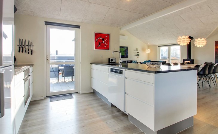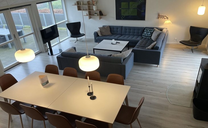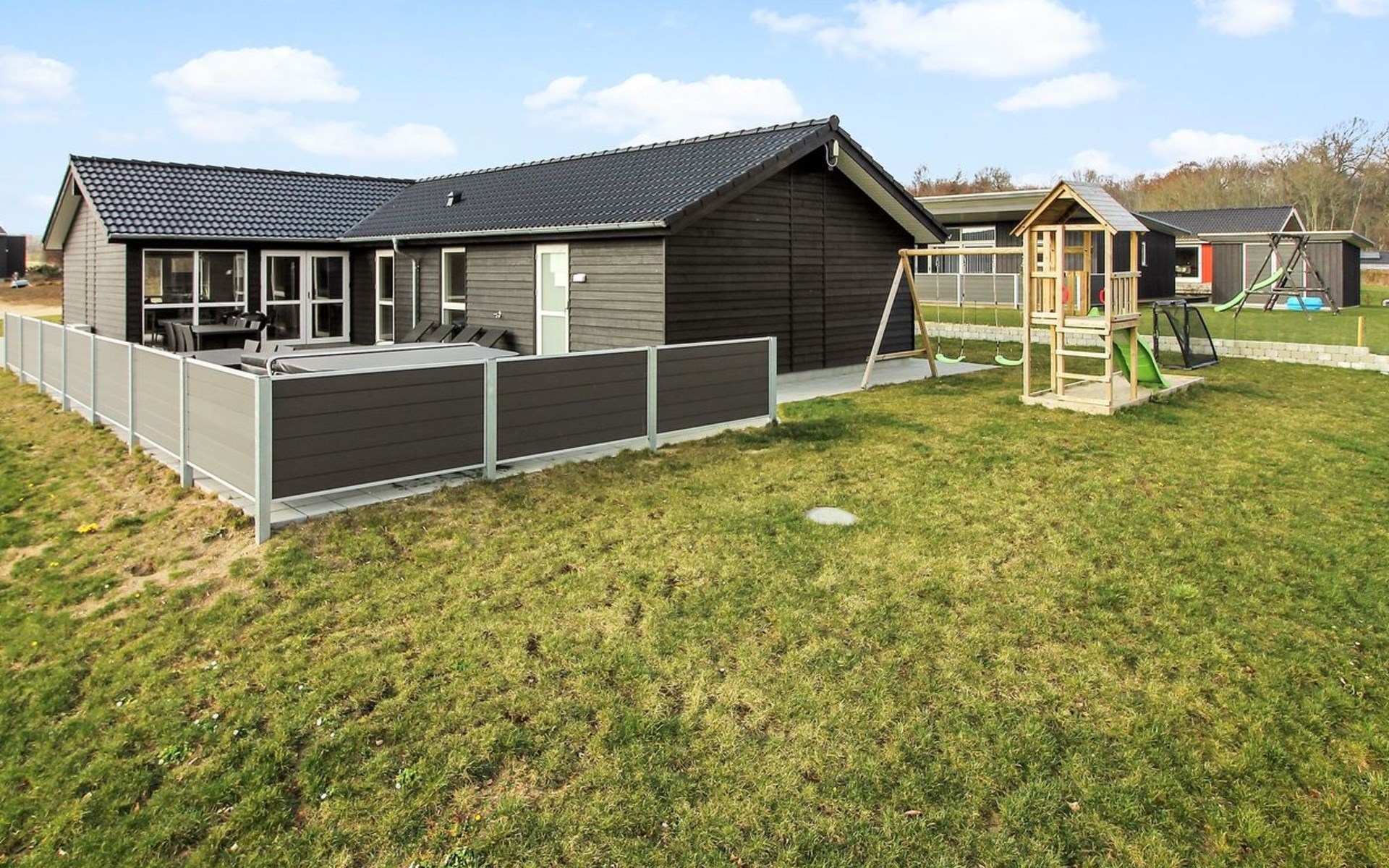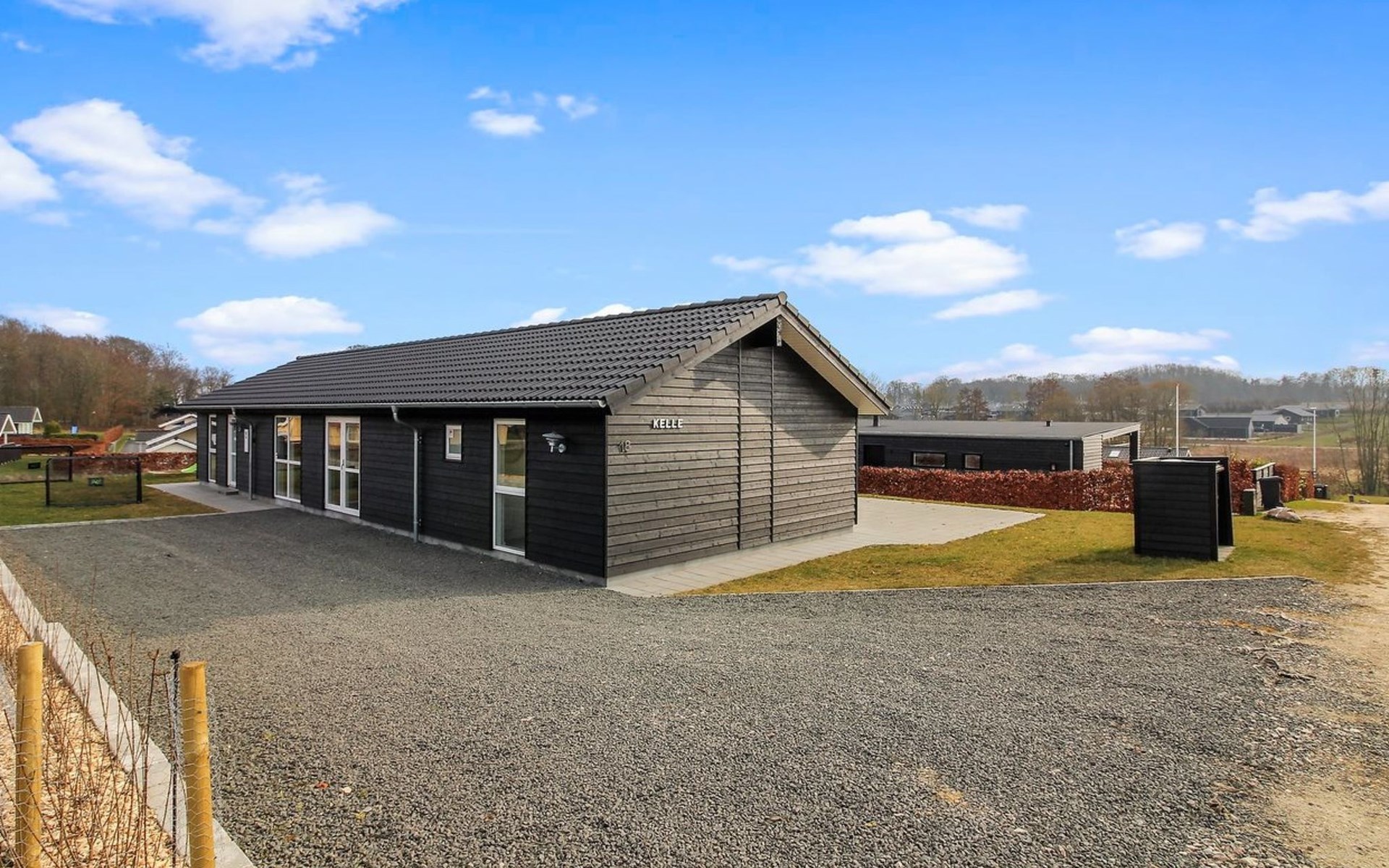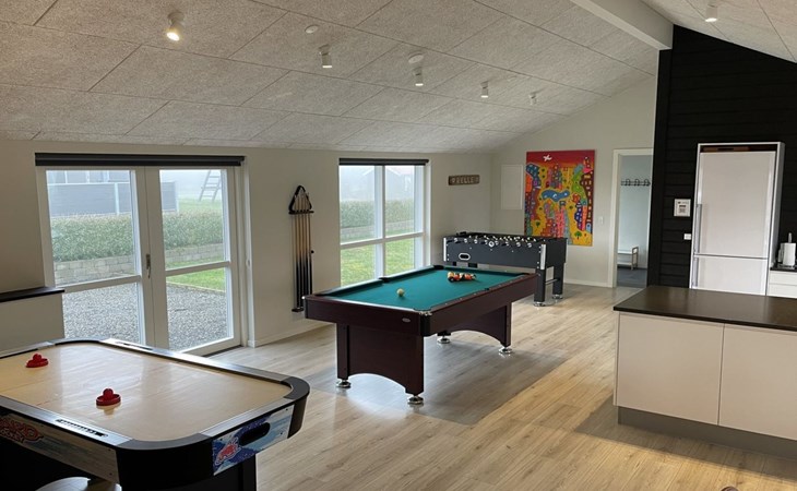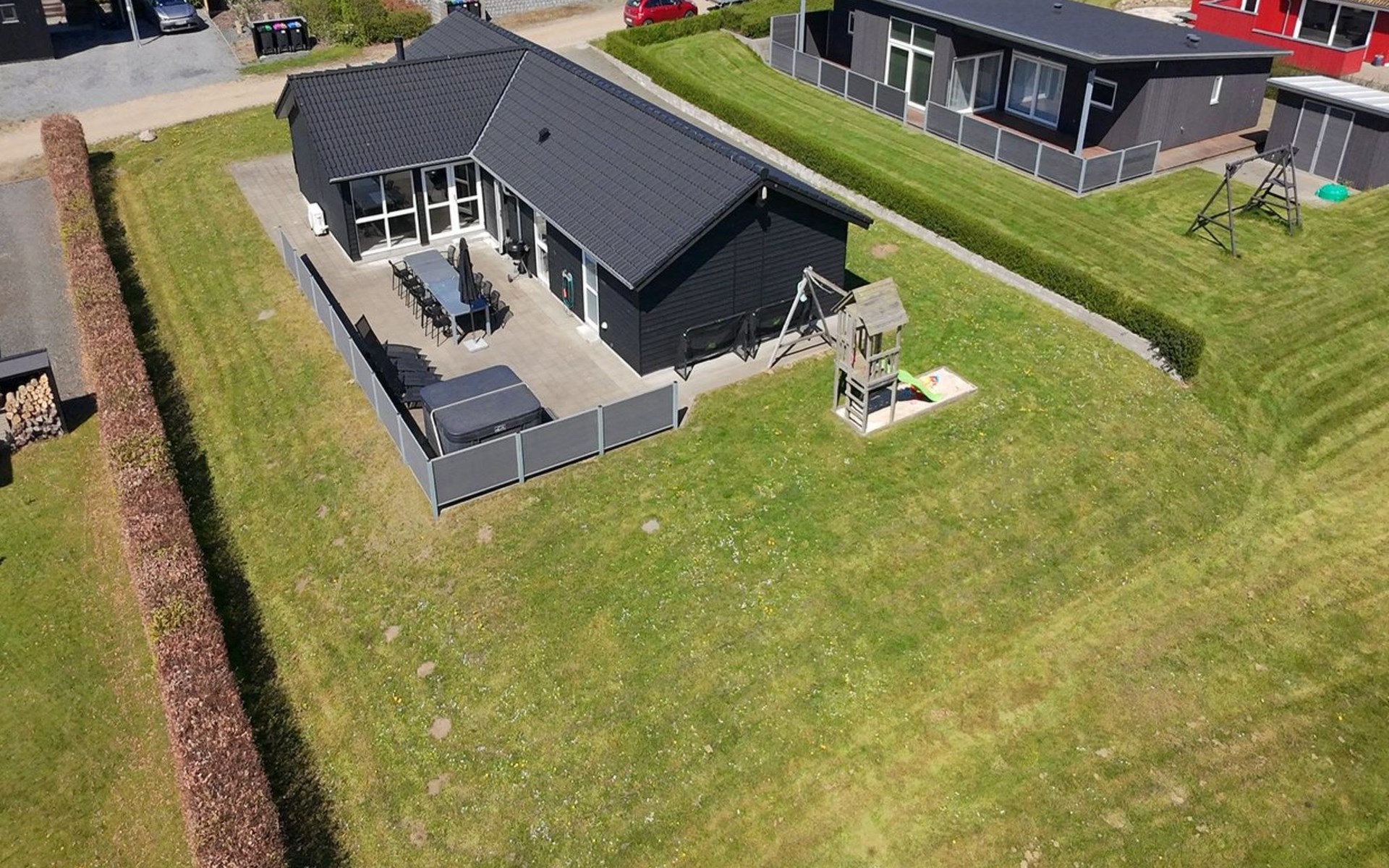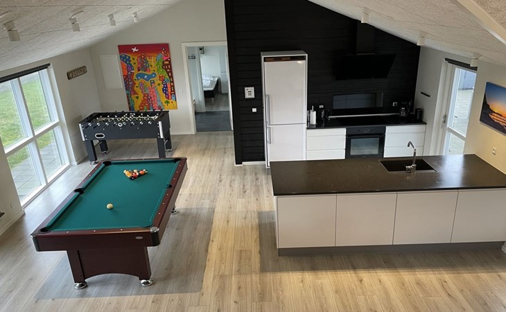 Einfamilienhaus, Baujahr 2019. 300 m vom Meer. Zur Alleinbenutzung: Grundstück 783 m2, gepflegter Garten. Terrasse (75 m2), Grill, Kinderspielplatz (Rutschbahn, Schaukel). Im Hause: Sauna, Tischfussball, Waschmaschine, Wäschetrockner. Parkplatz beim Haus. Lebensmittelgeschäft 8 km. Golfplatz 12 km. Der Besitzer akzeptiert keine Jugendgruppen.