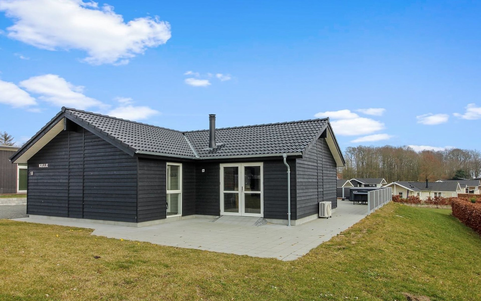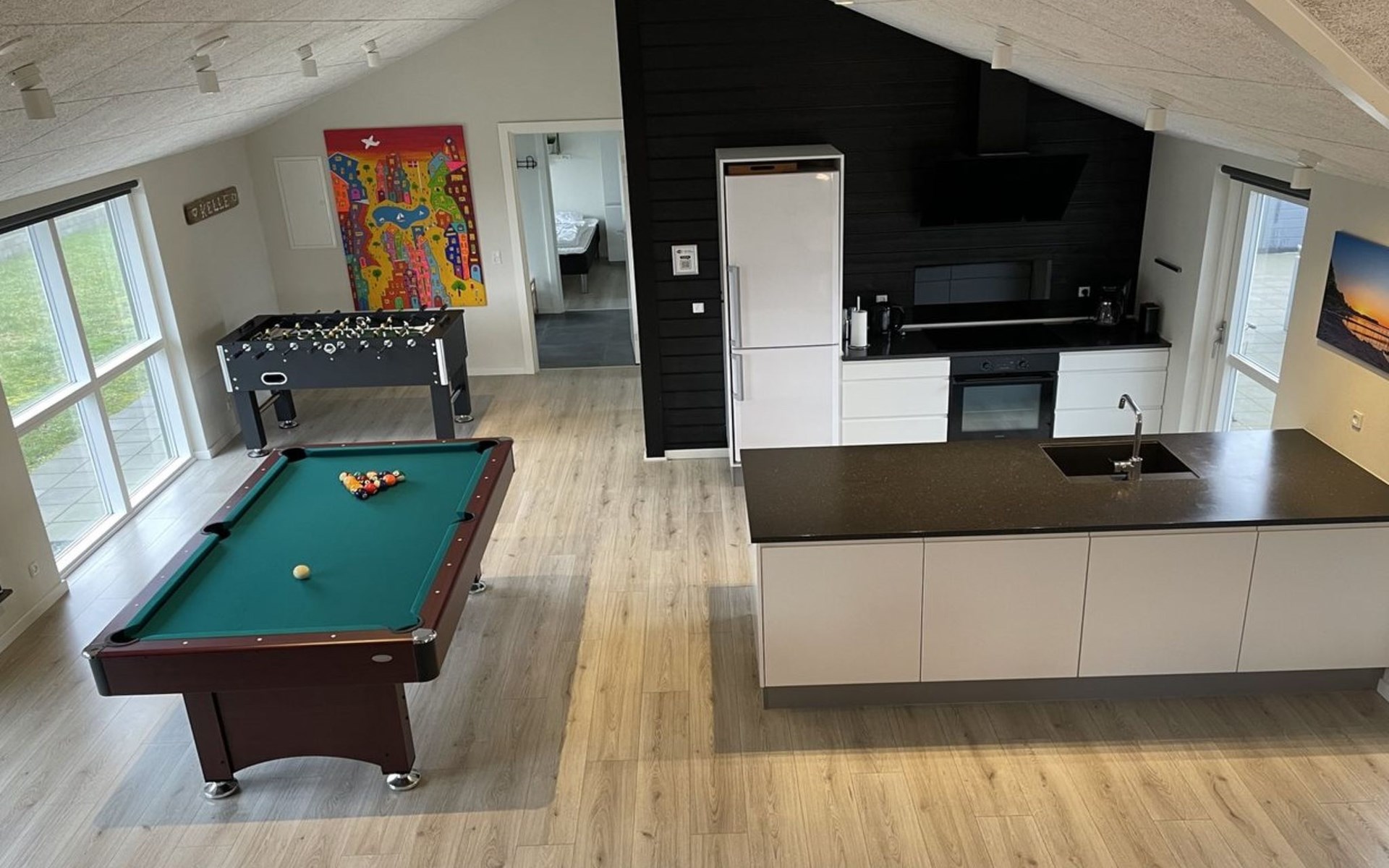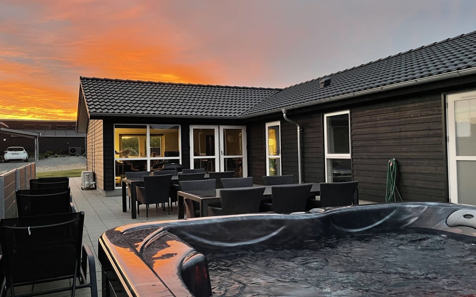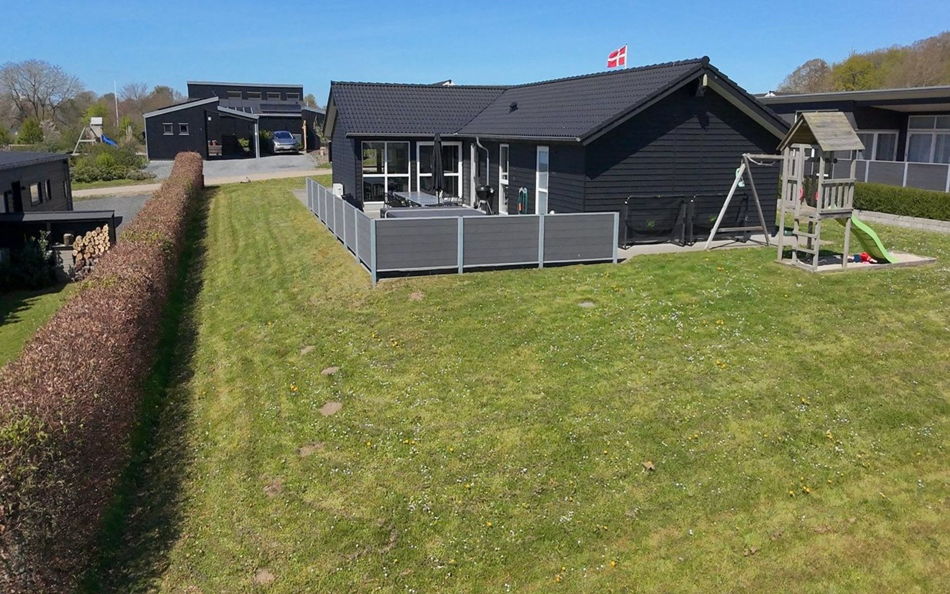 Einfamilienhaus, Baujahr 2019. 300 m vom Meer. Zur Alleinbenutzung: Grundstück 783 m2, gepflegter Garten. Terrasse (75 m2), Grill, Kinderspielplatz (Rutschbahn, Schaukel). Im Hause: Sauna, Tischfussball, Waschmaschine, Wäschetrockner. Parkplatz beim Haus. Lebensmittelgeschäft 8 km. Golfplatz 12 km. Der Besitzer akzeptiert keine Jugendgruppen.