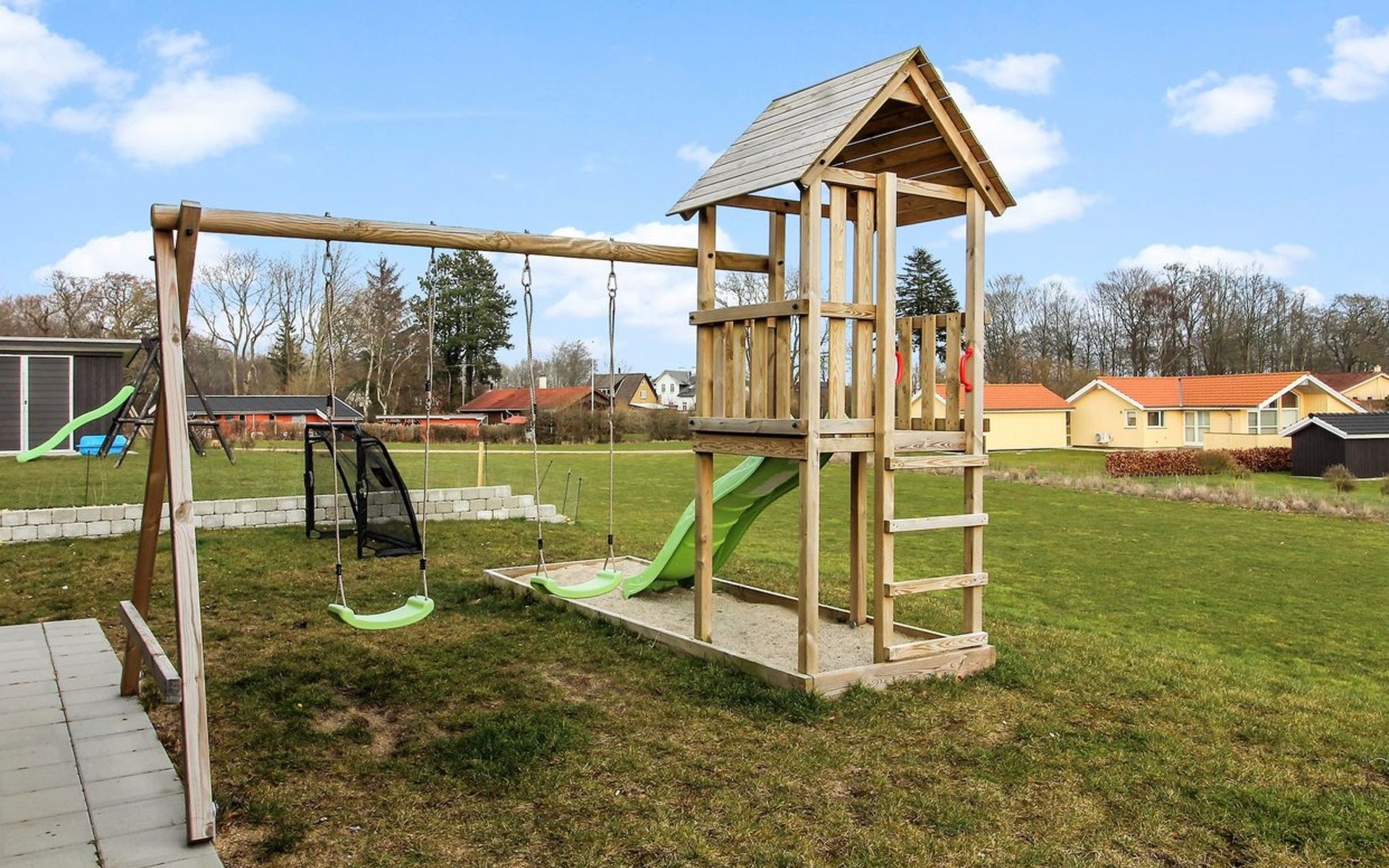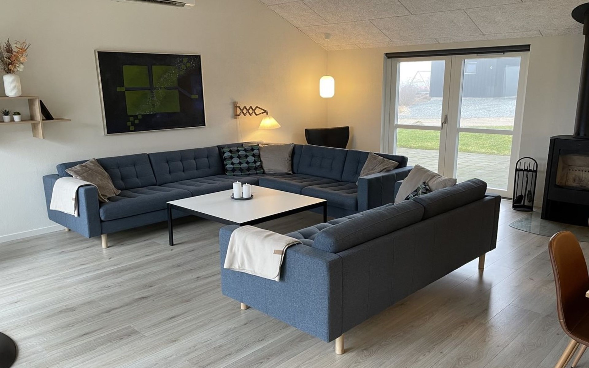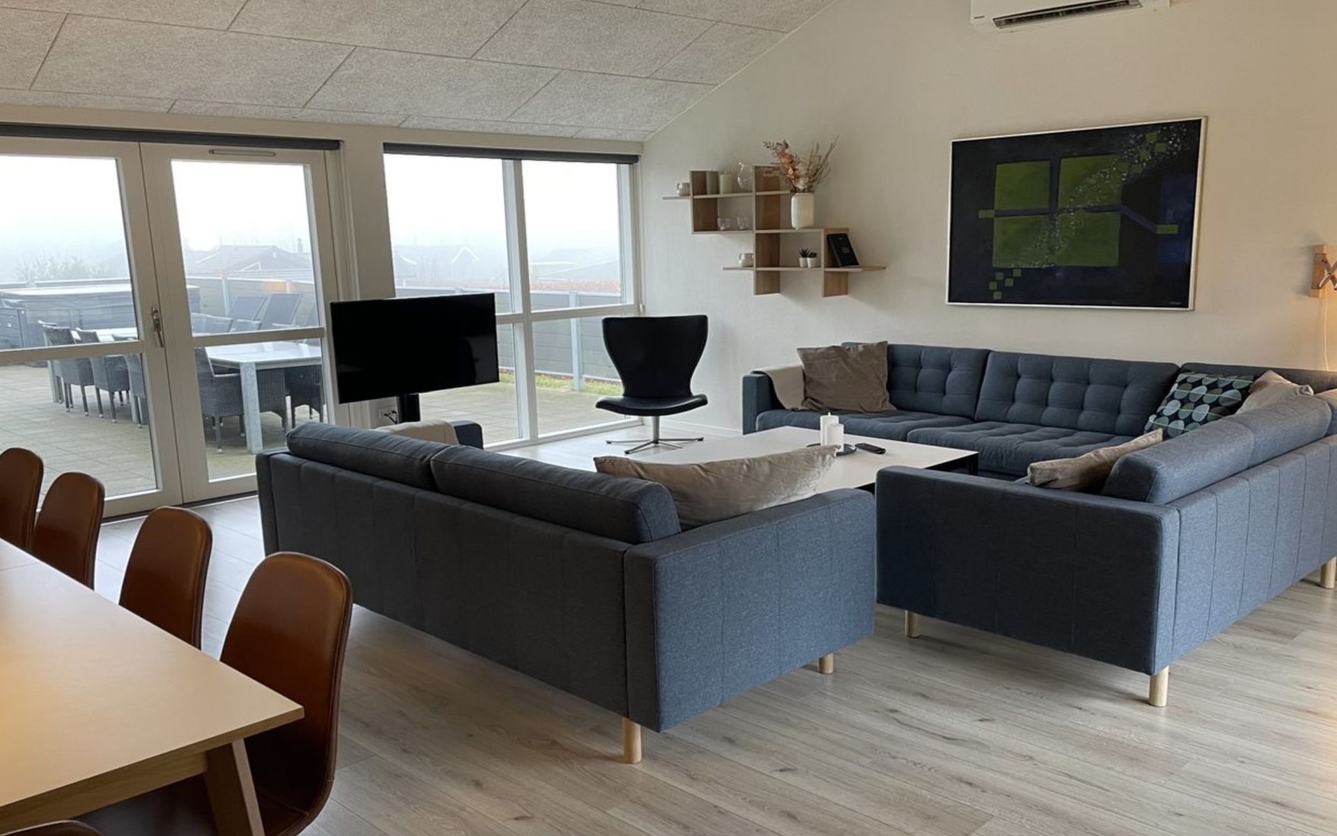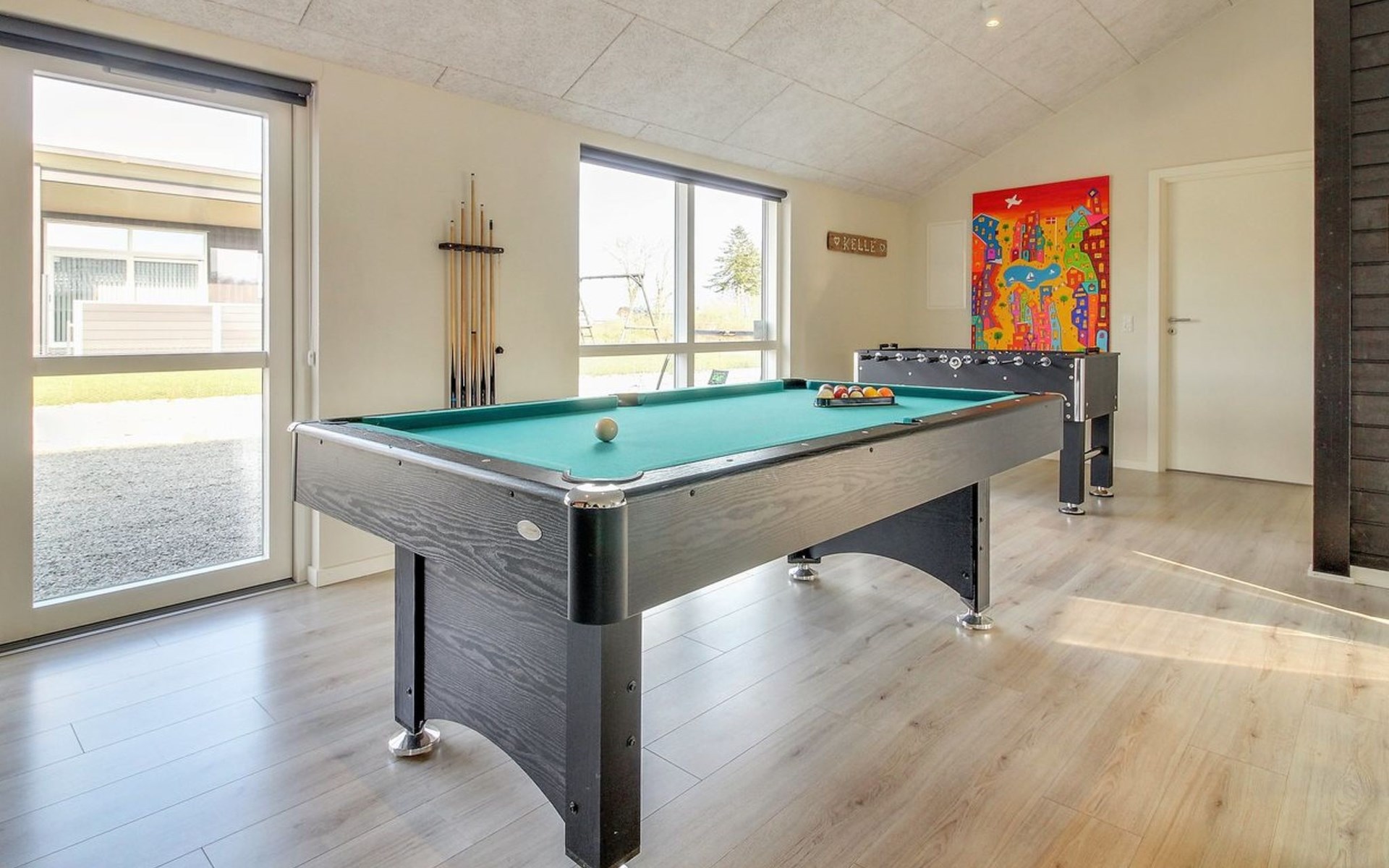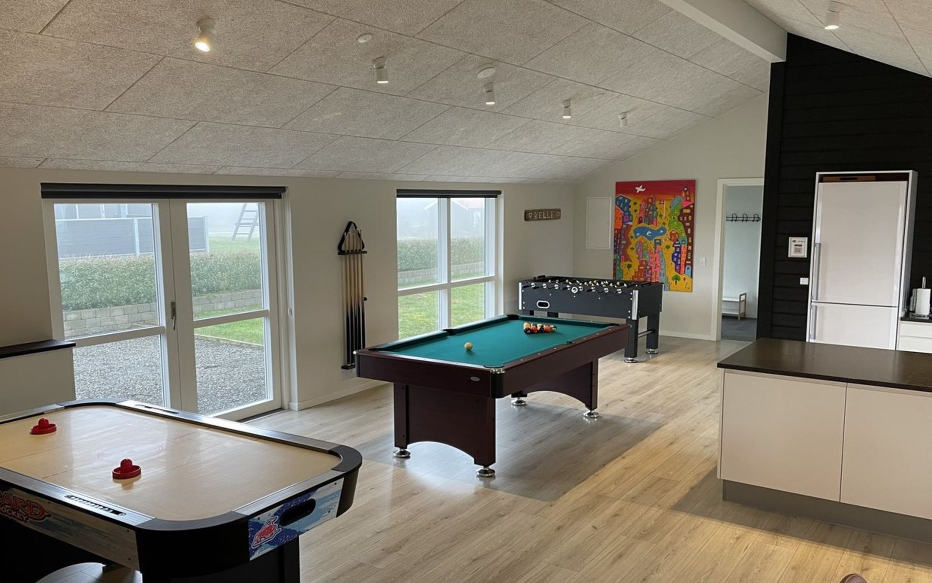 Einfamilienhaus, Baujahr 2019. 300 m vom Meer. Zur Alleinbenutzung: Grundstück 783 m2, gepflegter Garten. Terrasse (75 m2), Grill, Kinderspielplatz (Rutschbahn, Schaukel). Im Hause: Sauna, Tischfussball, Waschmaschine, Wäschetrockner. Parkplatz beim Haus. Lebensmittelgeschäft 8 km. Golfplatz 12 km. Der Besitzer akzeptiert keine Jugendgruppen.