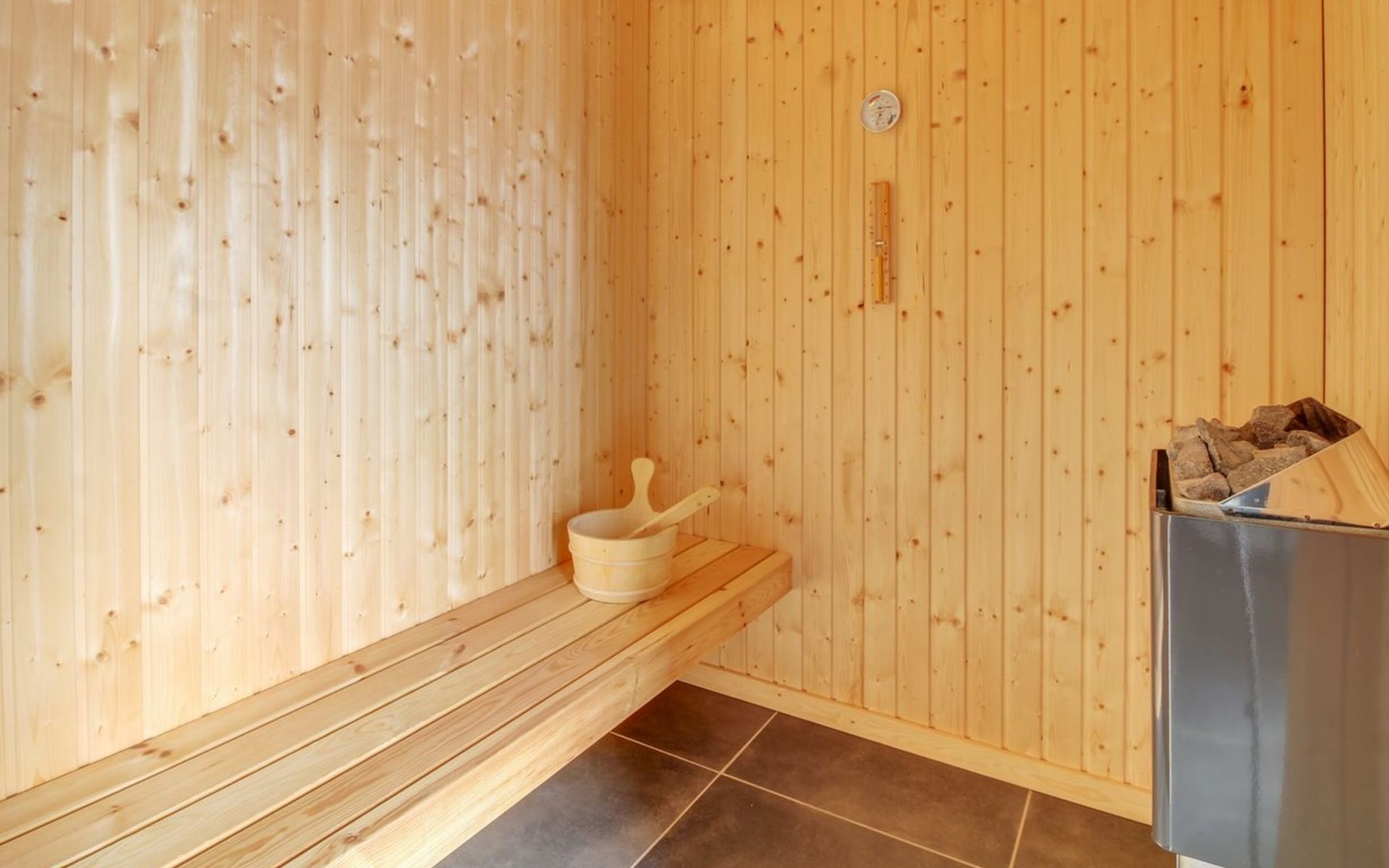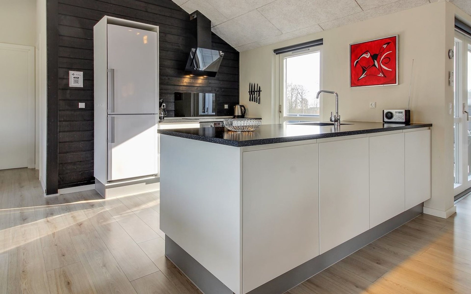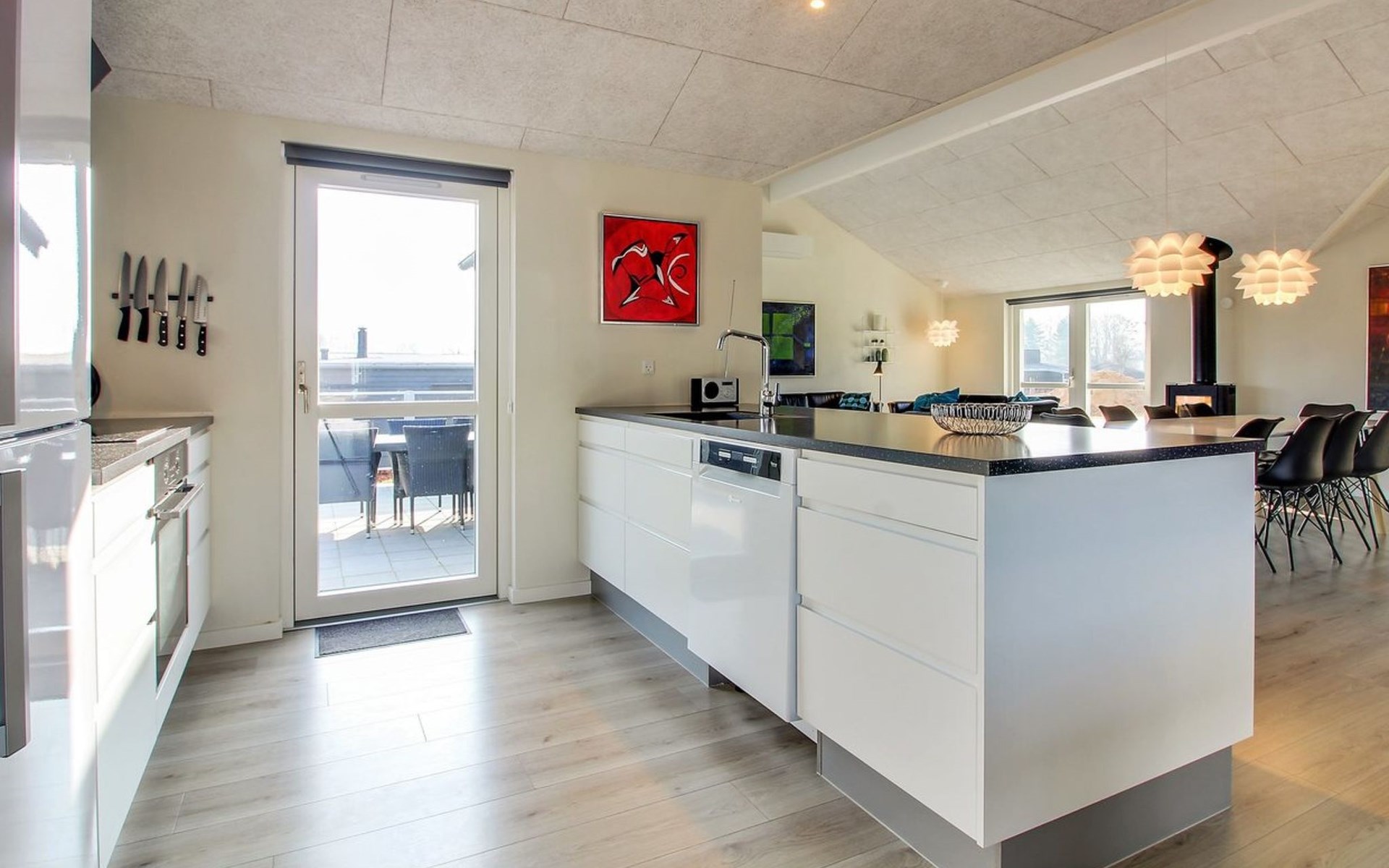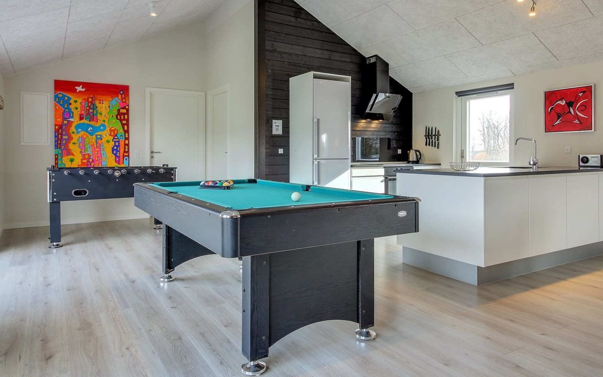 Einfamilienhaus, Baujahr 2019. 300 m vom Meer. Zur Alleinbenutzung: Grundstück 783 m2, gepflegter Garten. Terrasse (75 m2), Grill, Kinderspielplatz (Rutschbahn, Schaukel). Im Hause: Sauna, Tischfussball, Waschmaschine, Wäschetrockner. Parkplatz beim Haus. Lebensmittelgeschäft 8 km. Golfplatz 12 km. Der Besitzer akzeptiert keine Jugendgruppen.