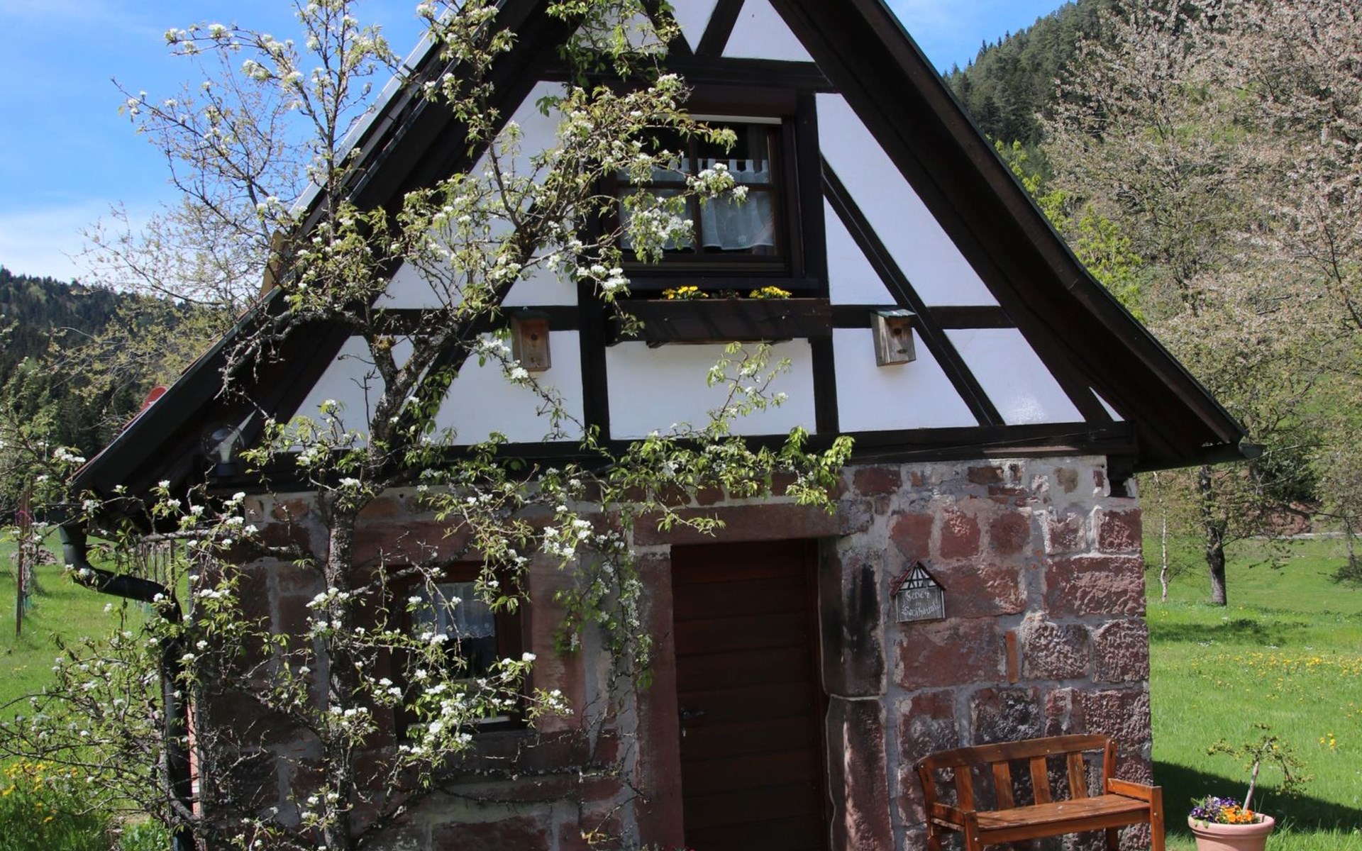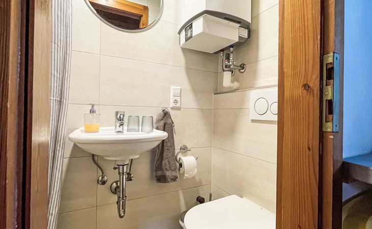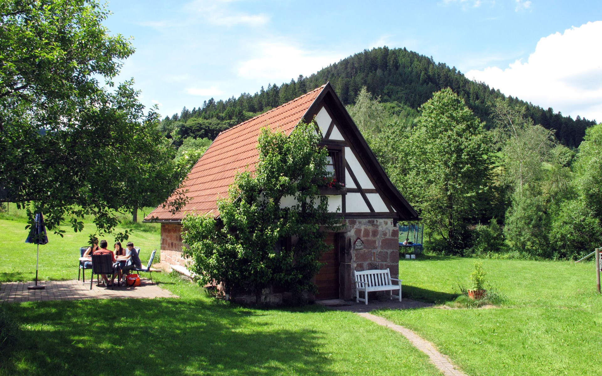 Historischer Bauernhof "Jockelsbauernhof und Backhäusle", 440 m.ü.M.. Im Ortsteil Ehlenbogen, 3.5 km vom Zentrum von Alpirsbach, 10 km vom Zentrum von Schiltach, 19 km vom Zentrum von Freudenstadt, alleinstehende, sonnige Lage. Zur Mitbenutzung: Grundstück mit Wiese, Obstgarten. Kinderspielplatz (Schaukel, Sandkasten), Parkplatz auf dem Grundstück. Einkaufsgeschäft 3.5 km, Bushaltestelle "Unterehlenbogen" 400 m, Bahnstation "Alpirsbach" 3.5 km, Freibad 4 km, Hallenbad 4 km. Golfplatz (9 Loch) 8.5 km. Bitte beachten: Der Besitzer wohnt auf dem gleichen Grundstück. Das auf demselben Grundstück befindliche BACKHÄUSLE (DE7297.608.1), der Name sagt es, das ehemalige Backhaus, wurde vollständig restauriert. Die alte Bausubstanz, Bruchsandstein im Erdgeschoss und Fachwerkaufsatz im Dachgeschoss, sowie der alte Holzbackofen blieben erhalten und verleihen dem Haus seinen einzigartigen Charme. Wanderungen vom Haus möglich, der Kinzigtaler Radwanderweg führt am Haus vorbei. Der Kindererlebnispfad 'Felix und sein Hut' endet am Hof. 3 Gasthöfe (ca. 350-1500 m) sind ebenfalls zu Fuß erreichbar.