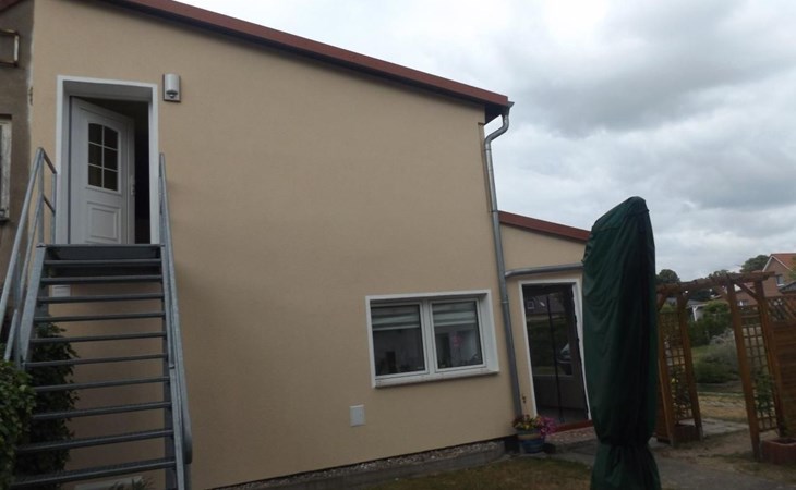Der Außenbereich lädt mit einer idyllischen Sitzecke im Garten dazu ein, vollkommen zu entspannen oder bei einem Glas Wein die Schönheit des Sonnenuntergangs zu genießen. Der separate Eingang sorgt dabei stets für Ihre Unabhängigkeit und Privatsphäre.