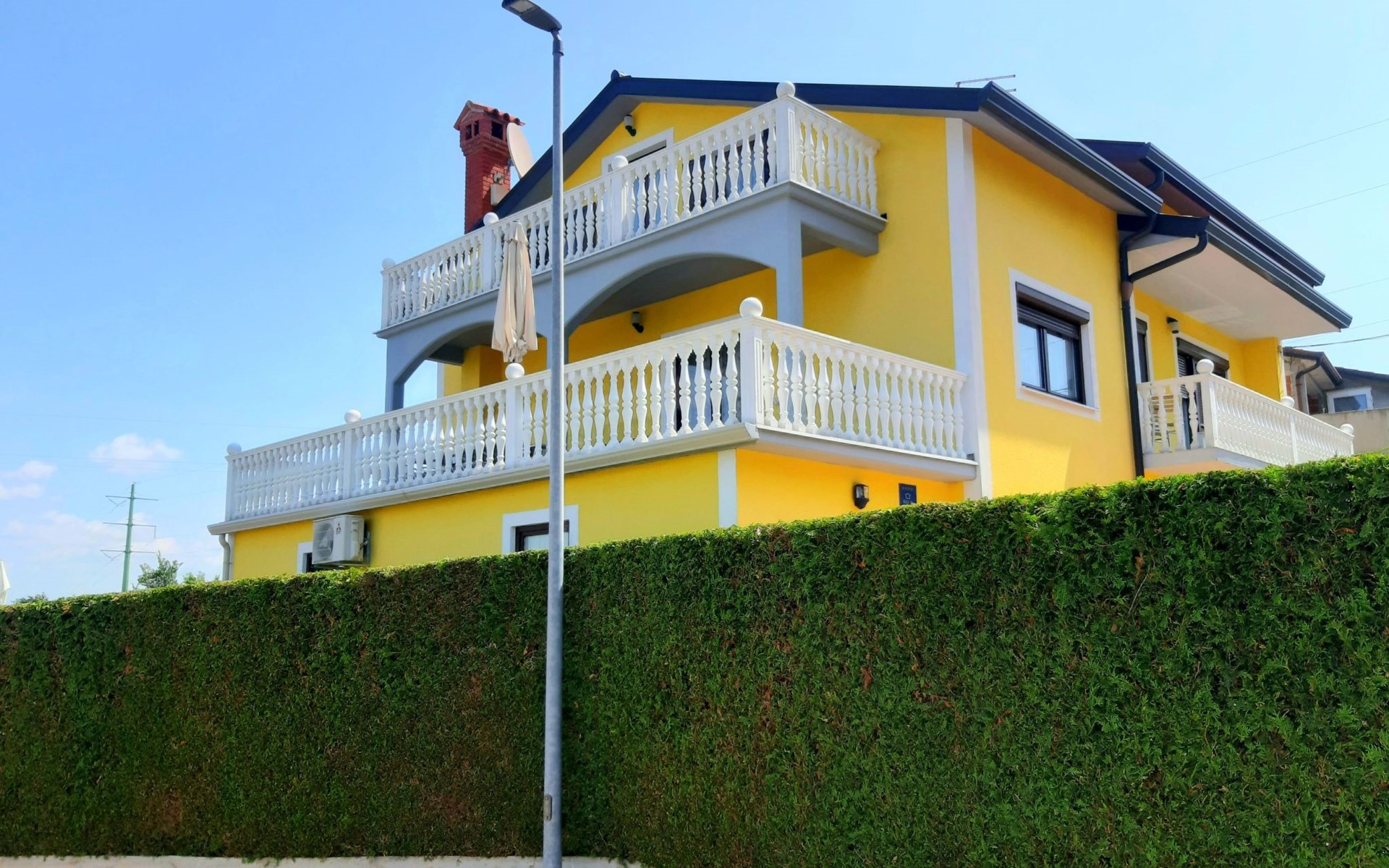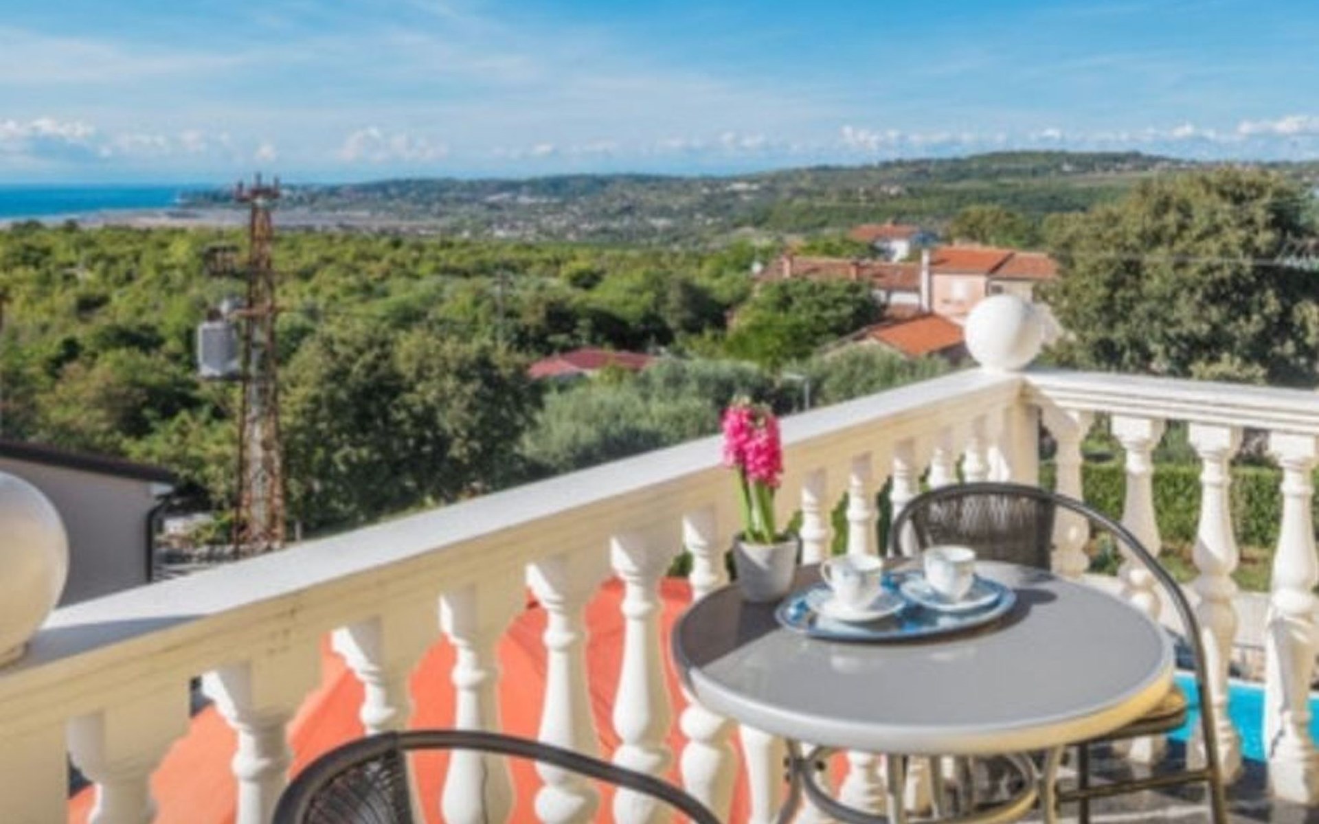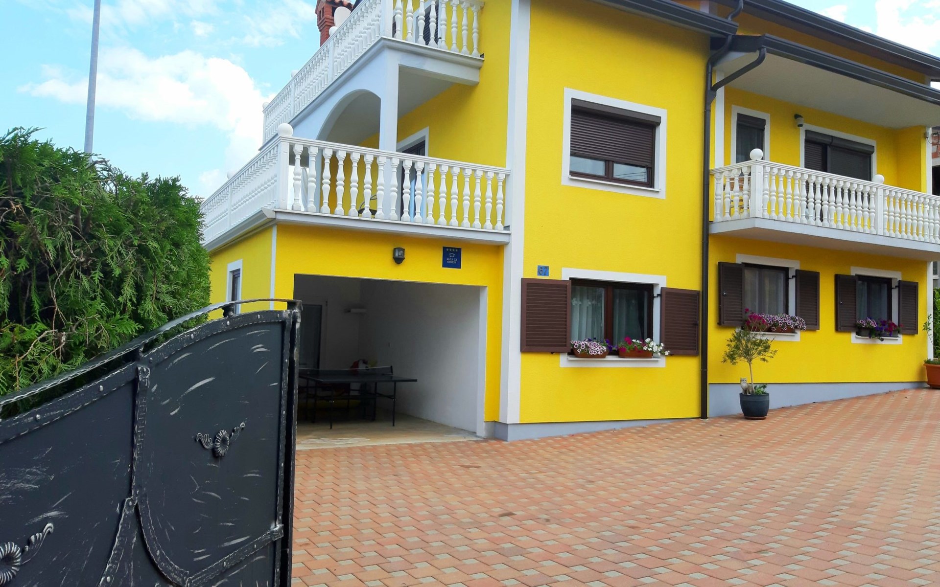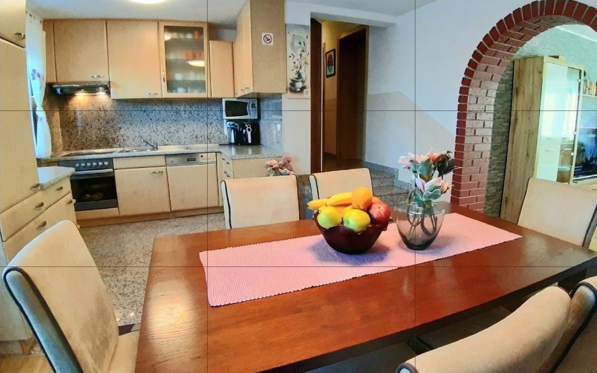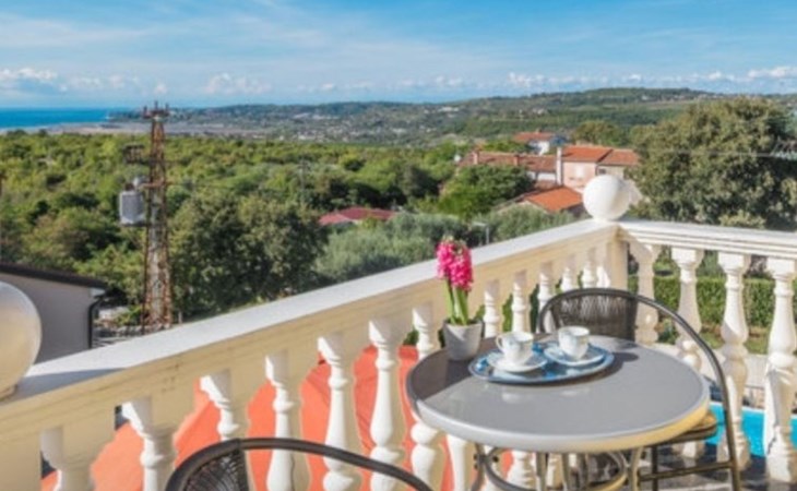 Drei Wohnzimmer, drei Esszimmer und drei Küchen und drei Badezimmer, eines mit Dusche zwei mit Badewanne mit Waschbecken. Jede Etage ist ca. 100 m² groß . Die Möbel sind neu und harmonisch aufeinander abgestimmt. Während die Badezimmer, der Flur und das Esszimmer sowie die Küche gefliest sind, sind die Schlafzimmer und das Wohnzimmer mit Parkettböden ausgekleidet. Erdgeschoss. Schlafzimmer hat ein Doppelbett von 200 cm x 180 cm. mit Kleiderschrank und Spiegel, Nachttischen und Beleuchtung neben dem Zweites Schlafzimmer im Erdgeschoss Ein Bett. 180×100 Schlafzimmer im Kleiderschrank, Schreibtisch, Kleiderschrank und Beleuchtung neben dem Bett. Kaffeemaschine (Filter) Wasserkocher, Salami-Schneidemaschine, Toaster, Eierkocher, zum Spazierengehen, Mixer, Geschirr, alle Arten von Klassen, Küchentücher usw. Großes Baguette mit Tisch und Stühlen. Wohnzimmer mit TV und allem Programme. Erste Stock zwei Schlafzimmer .Eine mit Doppelbetten 180×200 und auch Nachttische mit Beleuchtung über dem Bett. Kommode. Zweites Dchlafzimmer ist verfügt über zwei Betten von 180×100. Küche, die auch ein Set wie im Erdgeschoss mit Essbereich zum Essen ausgestattet ist. Und Wohnzimmer mit Ecksofa, Kommode. Balkontür mit Zugang zu einer großen Terrasse mit großem Tisch, Stühlen und Sonnenschirm, wo Sie eine angenehme Zeit mit herrlichem Blick auf das Meer, Slowenien, Italien und die Alpen verbringen können. Auf dem Dachboden (mit Hanglage) gibt es eine kleine Küche mit einem Esszimmer und einem Wohnzimmer. Zwei Schlafzimmer. Eines mit einem Doppelbett 180x200 und das andere mit einem bett und einem Kinderbett. Schränke, Nachttische. Es gibt 3-4 Parkplätze auf dem Grundstück.