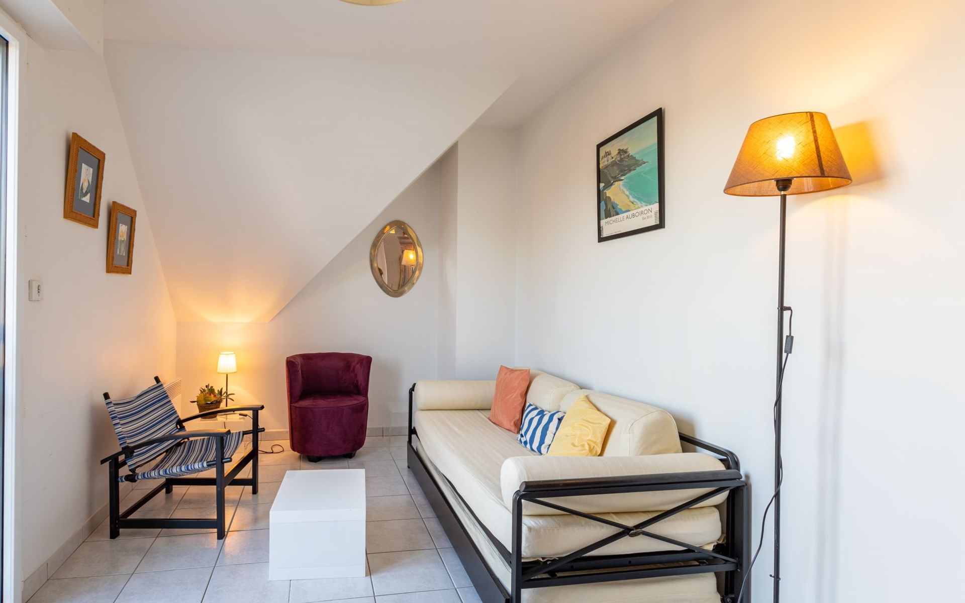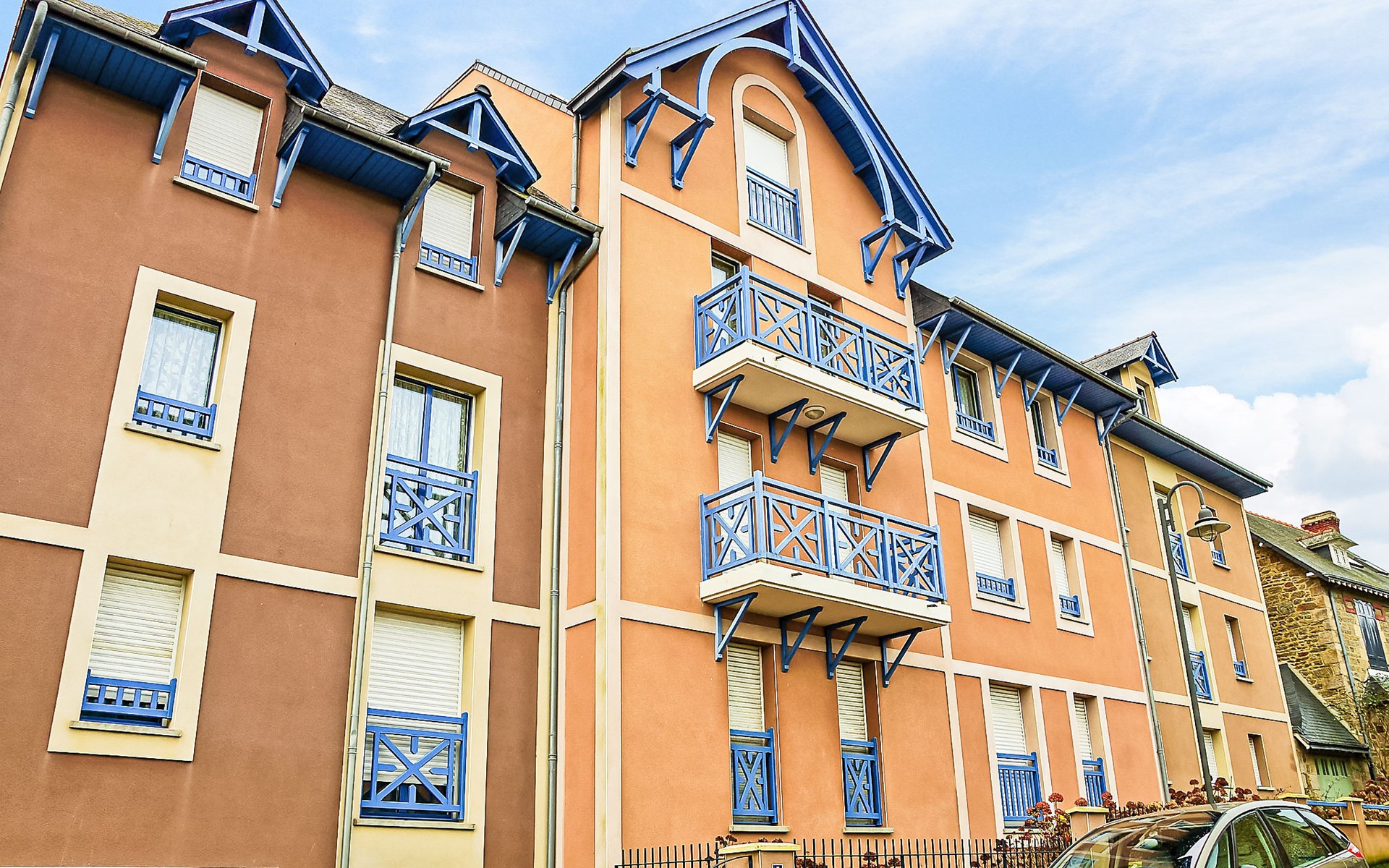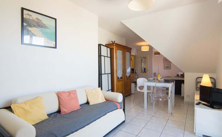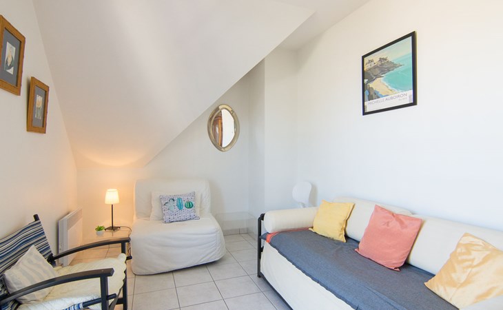 Residenz "Aillerie", auf 4 Stockwerken. 700 m vom Meer. In der Anlage: Fahrstuhl. Einkaufsgeschäft 300 m, Lebensmittelgeschäft 50 m, Supermarkt 500 m, Restaurant, Bar, Bäckerei 50 m, Bushaltestelle "Office du Tourisme" 450 m, Bahnstation "Saint Malo" 12 km, Fähre "Saint Malo" 12 km, Sandstrand "L'éculse", Hallenbad 700 m, Thermalbad "Thalasso Dinard" 2 km. Sporthafen 11 km, Golfplatz (18 Loch) 7 km, Reitstall 1.3 km. Nahe gelegene Sehenswürdigkeiten: St Briac sur Mer 7 km, St Malo 12 km, Dinan 22 km, Cancale 23 km, Cap Fréhel 37 km, Mont Saint Michel 60 km. Die Schlüsselübergabe findet bei der Agentur Interhome in Dinard statt, 1 km.