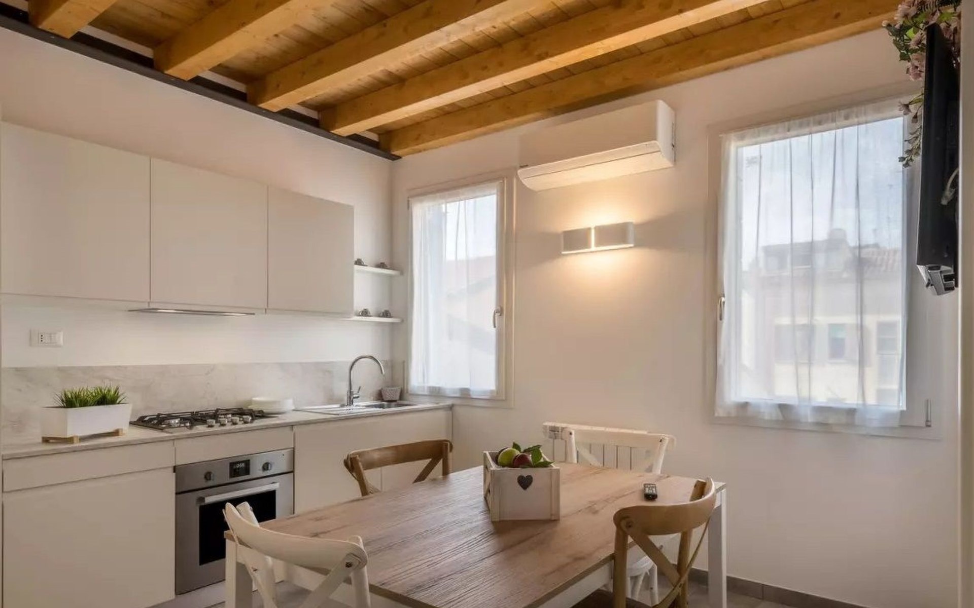 Alle'interno, Suite Laguna Sunset eccelle per le sue comodità di alto livello pensate per un'unvergleichliche Wohnerfahrung. In allen Zimmern gibt es eine Klimaanlage, die für eine Abkühlung nach einem Tag in der Sonne am Meer unerlässlich ist.'appartamento, non manca di offrire una meravigliosa esperienza marittima grazie alla sua vicinanza con la spiaggia, a soli 100 metri .Questa prossimità permette agli ospiti di trascorrere giornate indimenticabili sulle sabbie dorate di Sottomarina e di esplorare il centro locale, distante appena 150 metri, per immergersi appieno nell'Der mit Töpfen und Geschirr ausgestattete Gasherd, flankiert von Spülmaschine, Backofen, Kühl- und Gefrierschrank, verkörpert die'ideale per chi ama preparare pasti fatti in casa, mentre una lavatrice ad uso esclusivo rende ogni giorno pratico e senza pensieri.