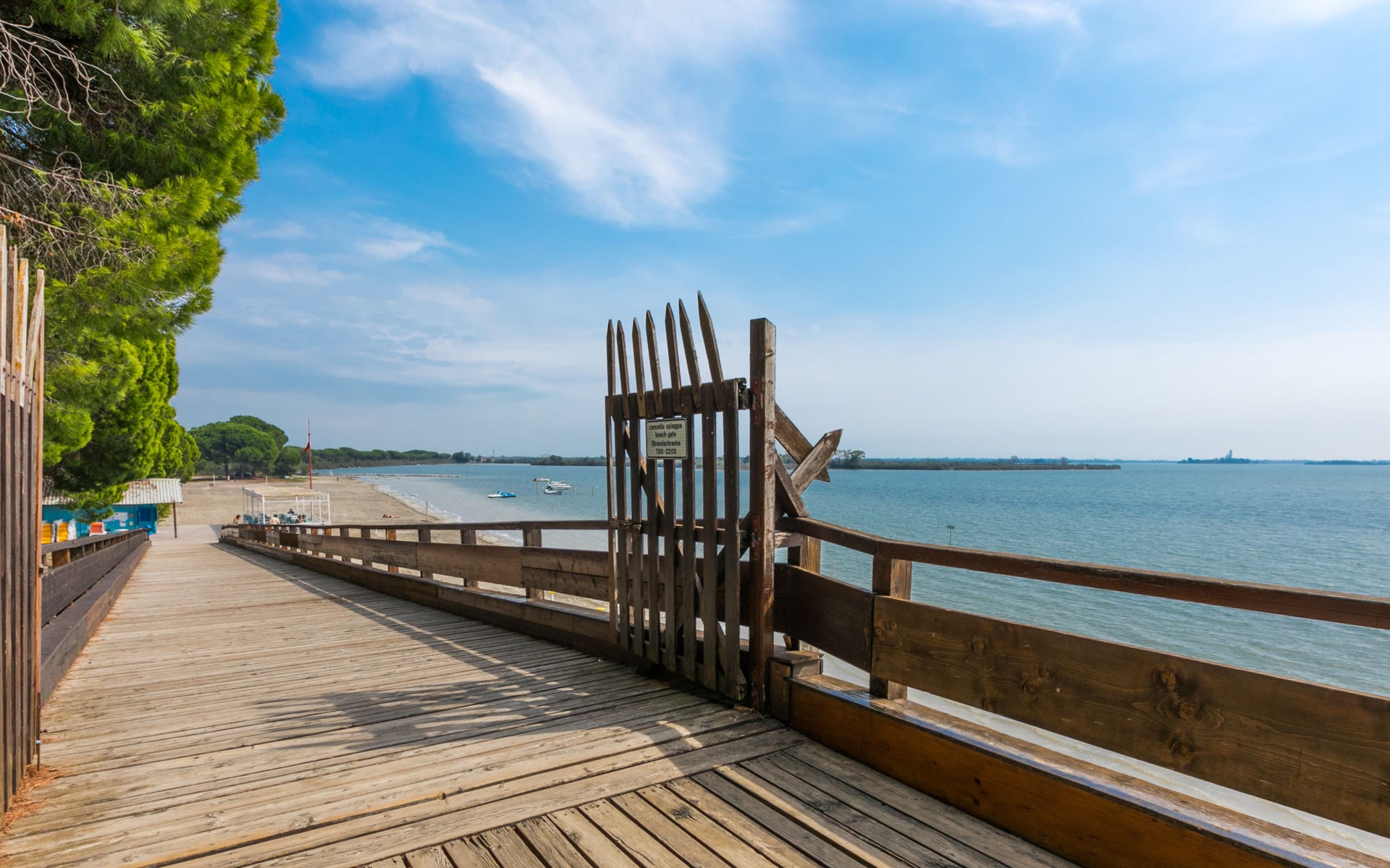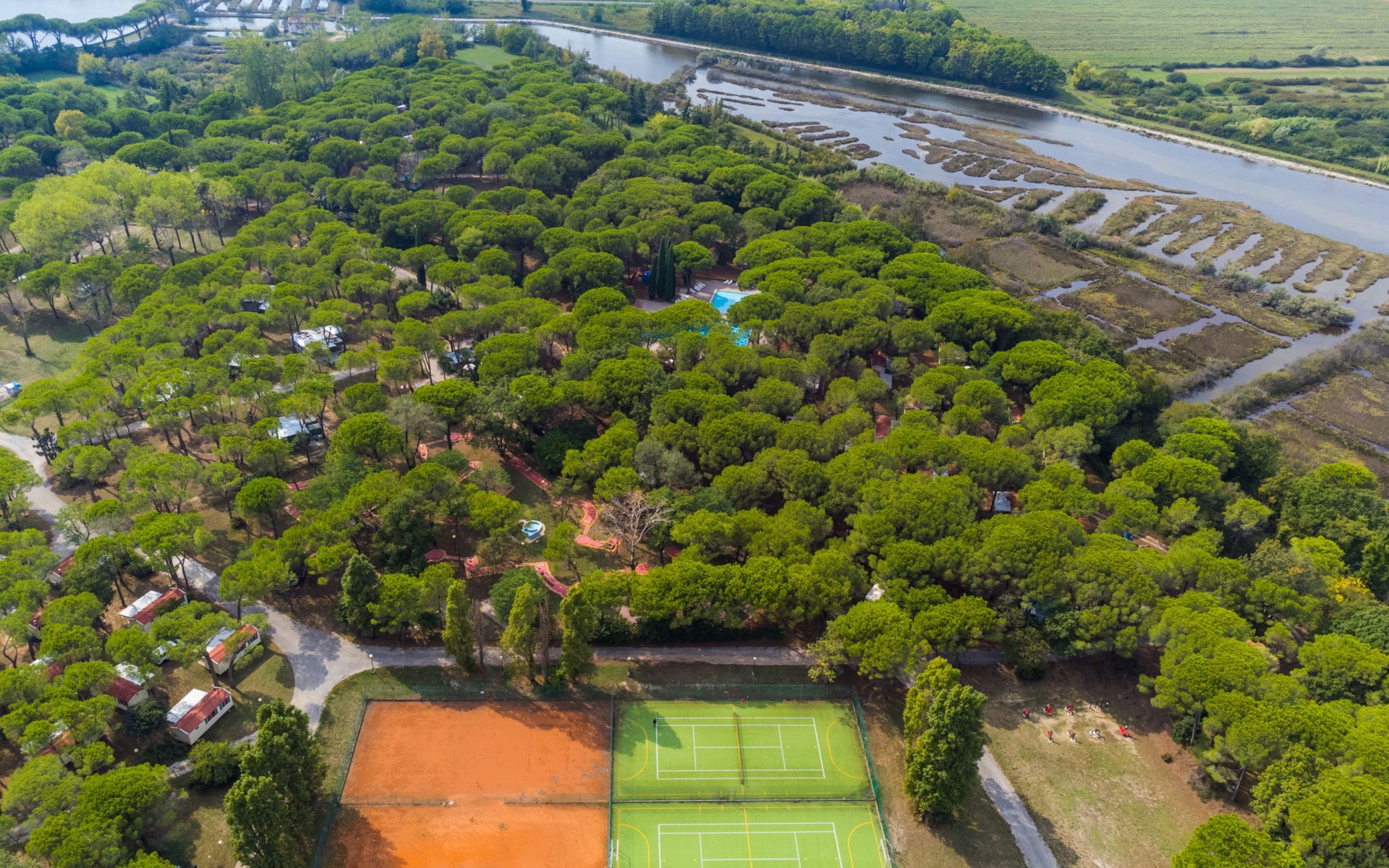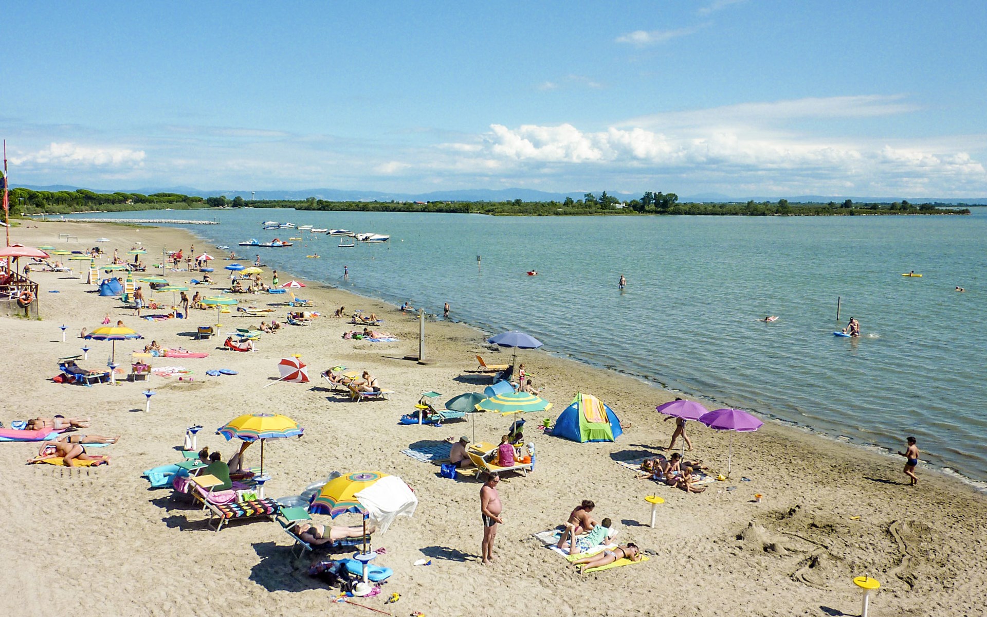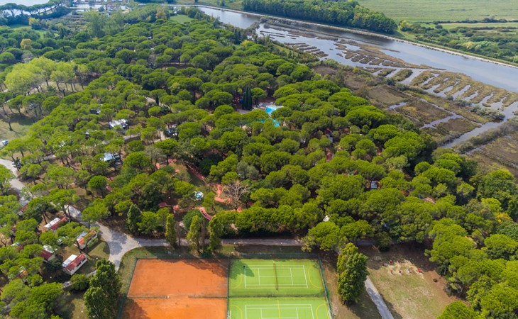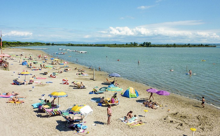 Kinderfreundliche Ferienanlage "Belvedere Pineta Camping Village 4*". 173 Häuser im Ferienresort. Im Ortsteil Belvedere, 6 km vom Zentrum von Aquileia, 7.5 km vom Zentrum von Grado, 20 m vom Meer, direkter Zugang zum Strand, direkter Zugang zur Lagune. Zur Mitbenutzung: naturbelassenes Grundstück 50 ha (eingezäunt) mit Bäumen, Schwimmbad (25 x 12 m, saisonale Verfügbarkeit: 01.Mai. - 21.Sep.). Kinderbecken, Tennis (extra), Tischtennis, Volleyball, Beachvolleyball, Kinderspielplatz. In der Anlage: Restaurant, Bar, Bistro, Wireless LAN (extra). Einkaufsmöglichkeit, Waschmaschine, Wäschetrockner (zur Mitbenutzung, extra), Fahrradverleih. Frühstück Vollpension Halbpension möglich auf Anfrage (extra). Supermarkt 6 km, Bushaltestelle 1 km, Bahnstation "Cervignano del Friuli" 14 km. Jacht-Hafen 7.5 km, Radweg 1.3 km. Nahe gelegene Sehenswürdigkeiten: Trieste 56 km, Riserva Naturale della Foce dell'Isonzo 20 km, Castello di Duino 32 km, Aquileia 6 km. Bitte beachten: Animation in der Saison. Geeignet für Familien. Badekappenpflicht.