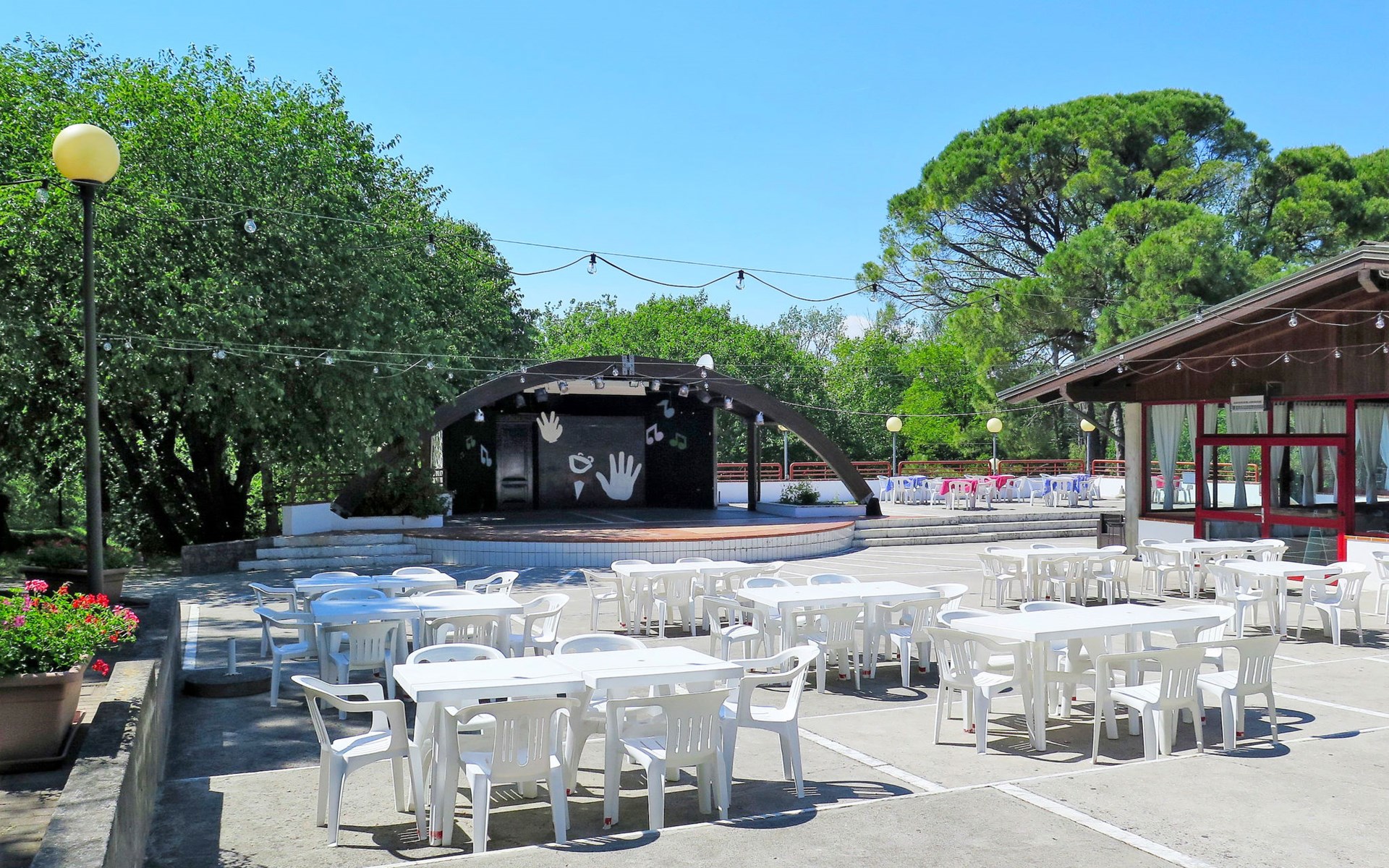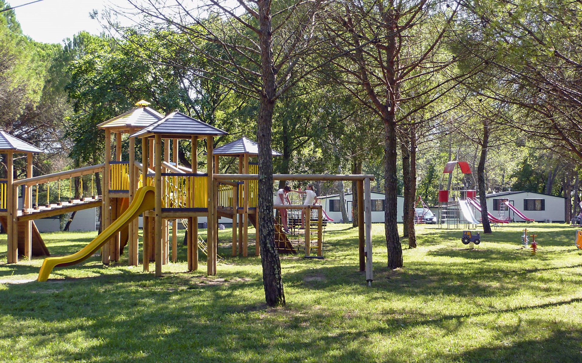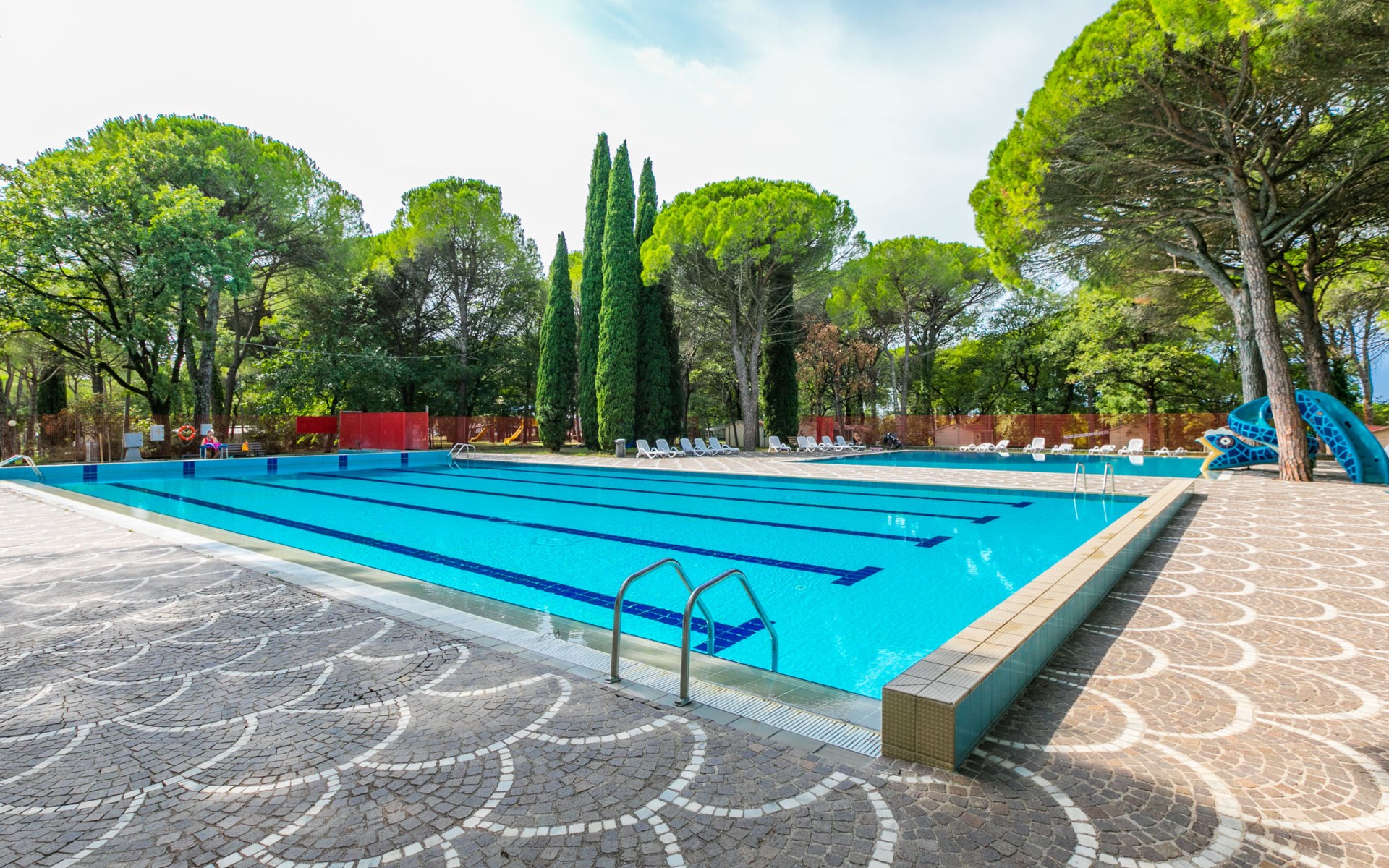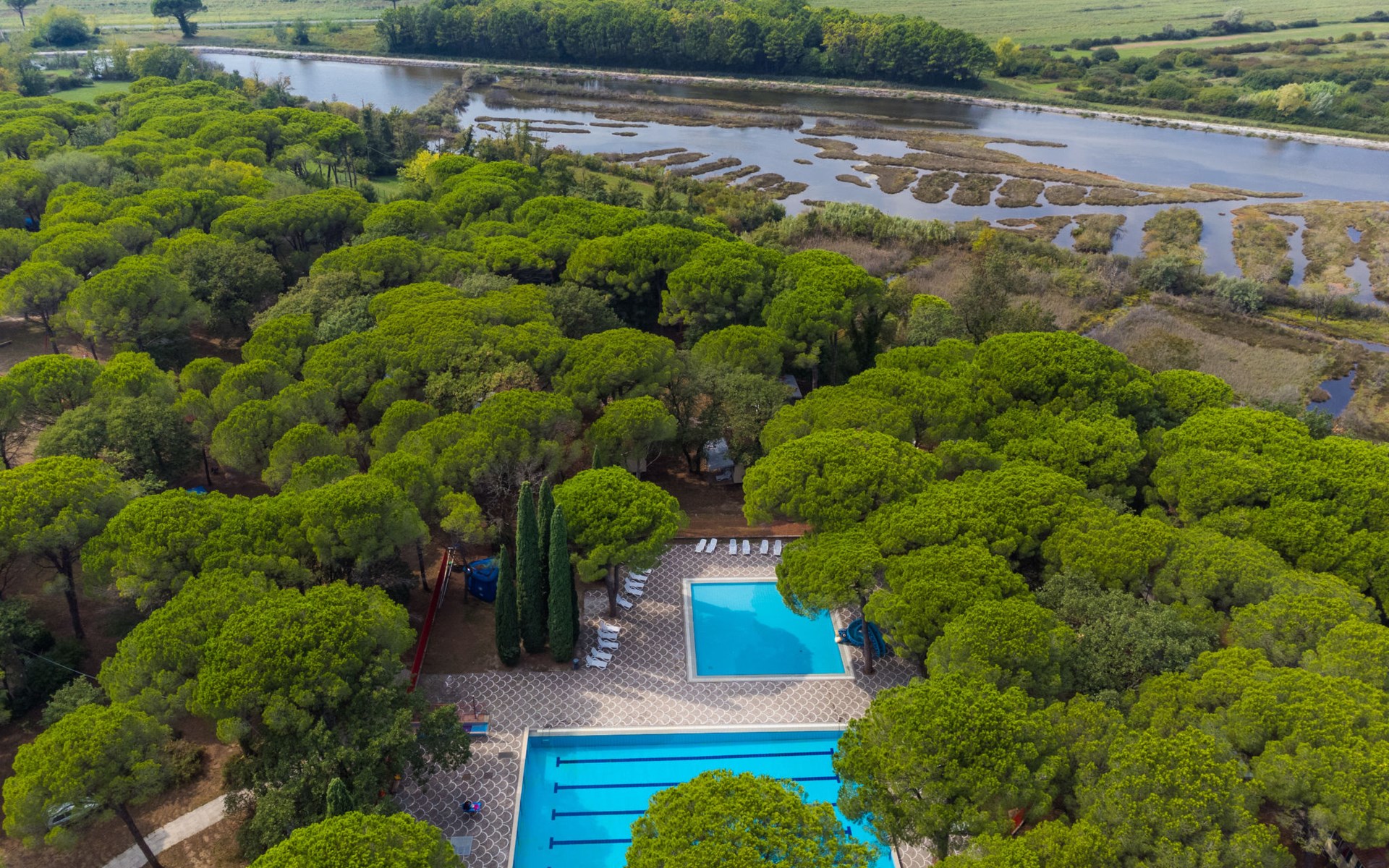 Kinderfreundliche Ferienanlage "Belvedere Pineta Camping Village 4*". 173 Häuser im Ferienresort. Im Ortsteil Belvedere, 6 km vom Zentrum von Aquileia, 7.5 km vom Zentrum von Grado, 20 m vom Meer, direkter Zugang zum Strand, direkter Zugang zur Lagune. Zur Mitbenutzung: naturbelassenes Grundstück 50 ha (eingezäunt) mit Bäumen, Schwimmbad (25 x 12 m, saisonale Verfügbarkeit: 01.Mai. - 21.Sep.). Kinderbecken, Tennis (extra), Tischtennis, Volleyball, Beachvolleyball, Kinderspielplatz. In der Anlage: Restaurant, Bar, Bistro, Wireless LAN (extra). Einkaufsmöglichkeit, Waschmaschine, Wäschetrockner (zur Mitbenutzung, extra), Fahrradverleih. Frühstück Vollpension Halbpension möglich auf Anfrage (extra). Supermarkt 6 km, Bushaltestelle 1 km, Bahnstation "Cervignano del Friuli" 14 km. Jacht-Hafen 7.5 km, Radweg 1.3 km. Nahe gelegene Sehenswürdigkeiten: Trieste 56 km, Riserva Naturale della Foce dell'Isonzo 20 km, Castello di Duino 32 km, Aquileia 6 km. Bitte beachten: Animation in der Saison. Geeignet für Familien. Badekappenpflicht.