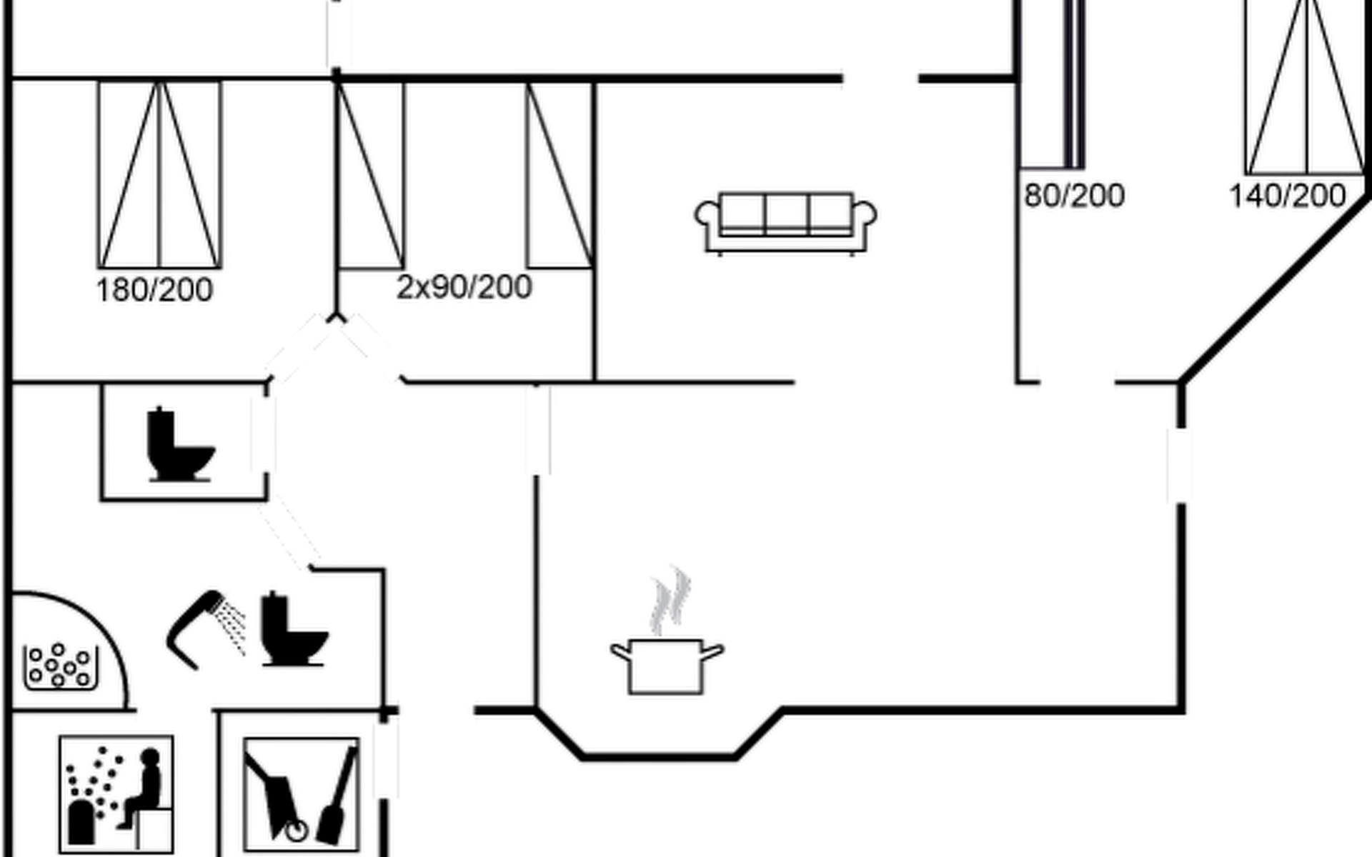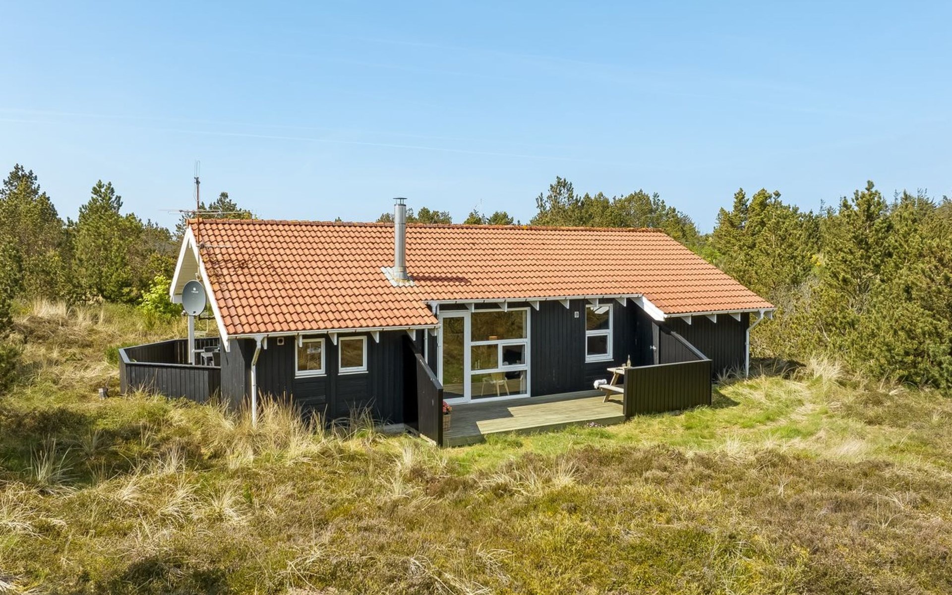 Einfamilienhaus, Baujahr 1994. 1 km vom Meer. Zur Alleinbenutzung: Grundstück 1'241 m2. Grill. Im Hause: Sauna, Waschmaschine, Wäschetrockner. Parkplatz beim Haus. Lebensmittelgeschäft 1 km. Golfplatz 6 km. Der Besitzer akzeptiert keine Jugendgruppen.