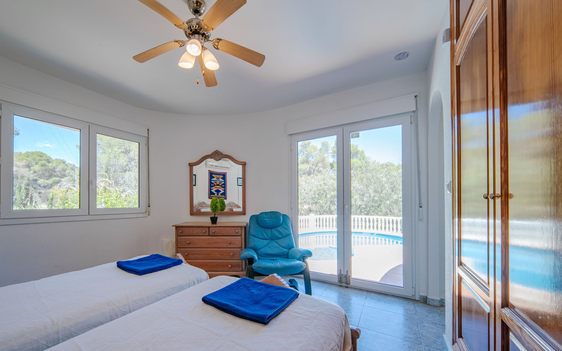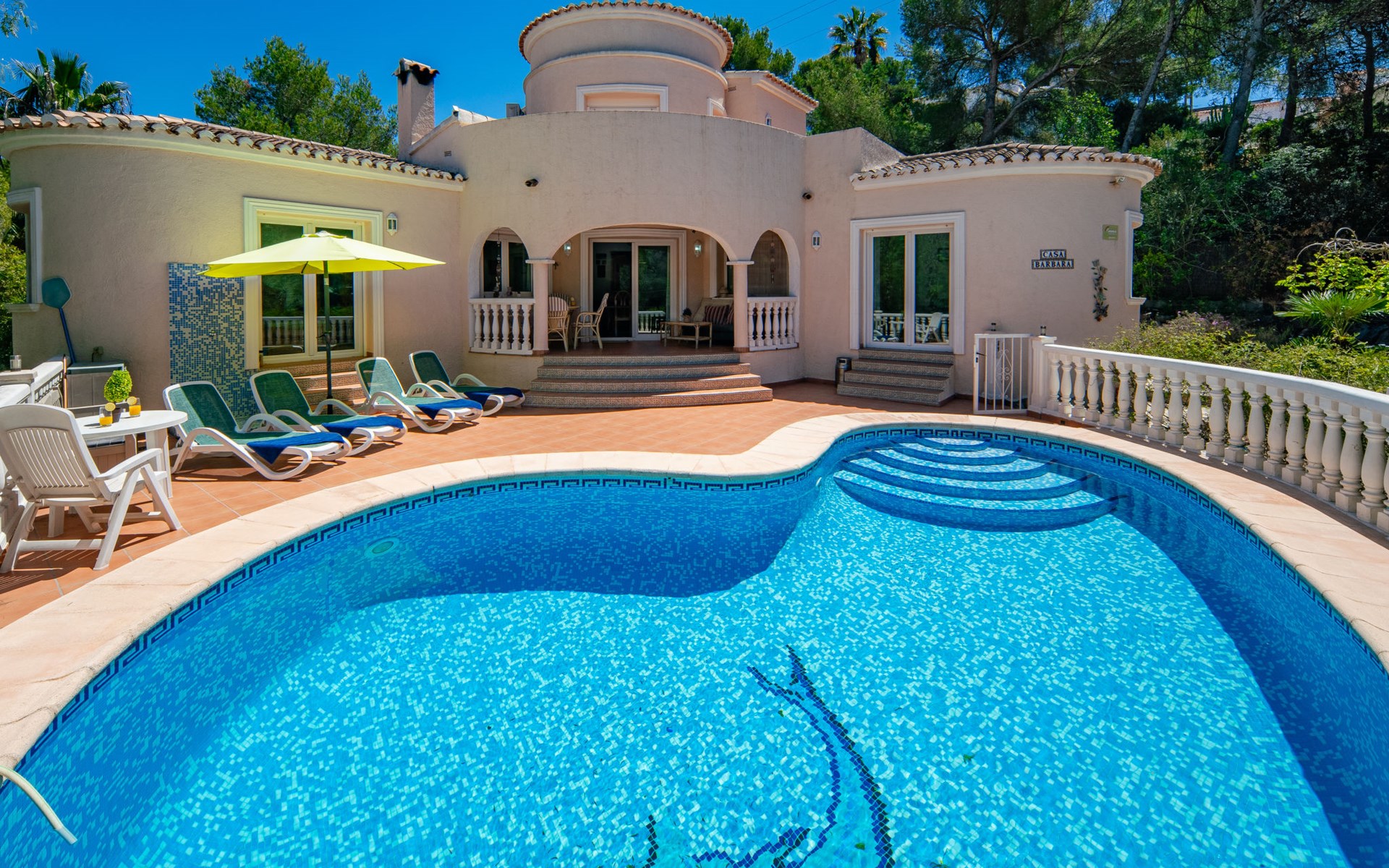 Gemütliches, komfortables Haus "Barbara", auf 2 Stockwerken. Im Ortsteil Balcon al Mar, sonnige Lage, 650 m vom Meer, 2.8 km vom Strand, an einer Strasse, an einer Hauptstrasse. Zur Alleinbenutzung: Schwimmbad nierenförmig (8 x 4 m, 40 - 190 cm tief, saisonale Verfügbarkeit: 01.Jan. - 31.Dez.) mit Innentreppe. Aussendusche, Parkplatz auf dem Grundstück. Einkaufsgeschäft 1.2 km, Supermarkt 1.9 km, Restaurant 300 m, Café 1 km, Bushaltestelle "Toscamar" 3.7 km, Sandstrand "El Arenal" 5.2 km, Steinstrand "La Granadella" 2.8 km. Sporthafen 5 km, Surfschule 2.8 km, Segelschule 2.8 km, Tennis 1.9 km. Der Besitzer akzeptiert keine Jugendgruppen.