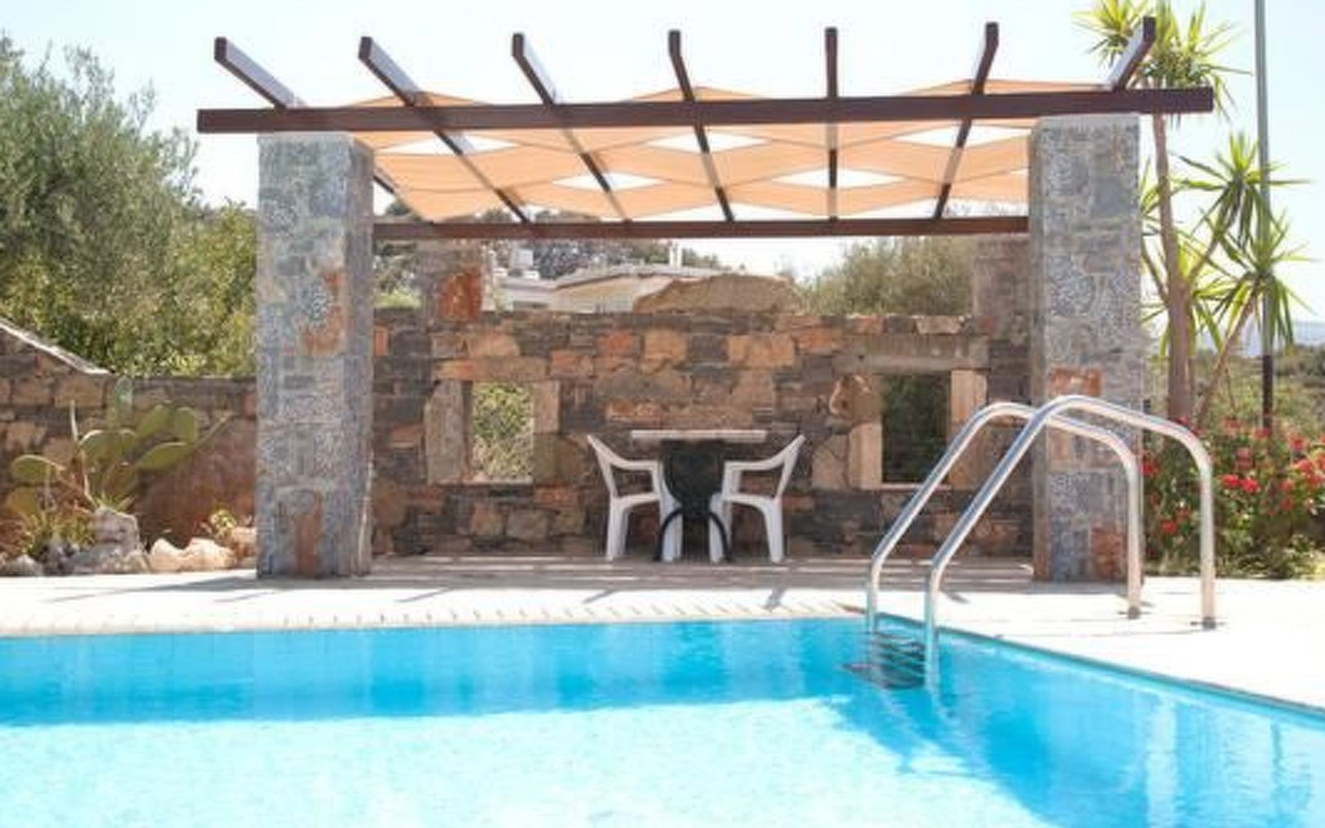 Der terrassenförmig angelegte Garten, welcher mit vielerlei bunten Blumen und einer ganzen Reihe verschiedenartiger Obstbäume (Mandarinen-, Orangen-, Aprikosen-, Zitronen-, Feigen-, Olivenbäumen, Bananenstauden und vielem mehr) bepflanzt ist, grenzt an große Felsstücke, die sich harmonisch einfügen, und somit dem Haus ein majestätisches Aussehen verleihen. Auf einer Fläche von ca. 500qm wurde der Swimming-Pool (7m x 12m) mit Kinderbecken großzügig angelegt.Die Vielfalt der Ausblicke und der Zauber der Landschaft überrascht immer wieder und zieht Sie in seinen Bann. Die Gäste dieses Anwesens werden mit einer einmaligen Panorama-Aussicht auf die unzähligen Buchten des Mirabello Golfes, bis hin nach Agios Nikolaos verwöhnt. Jede Wohnung verfügt über einen Safe, W-Lan und Klimaanlage. Auf den Terrassen bzw. Balkonen (inzwischen sind alle mit Pergolen überdacht) stehen Tische und Stühle zur Verfügung. Das Mobiliar des Hauses ist aus massivem Holz, die Bäder und Küchen gefliest und die Böden aus schönem, weißem Marmor. Jede Wohnung verfügt über einen Fernseher. Im Garten dieses guten Hauses wurde ein nach kretischer Tradition gemauerter Backofen mit Grillstelle gebaut, in dem man neben Brot auch verschiedene griechische Gerichte zubereiten kann. Daneben hat es einen Marmortisch mit Bänken, auf welchen man das soeben Zubereitete, unter dem Schatten der Bäume und der duftenden Luft, kosten kann. Ein weiterer Genuss ist die, von hier oben aus, herrliche Aussicht auf das Meer. Das ist ein Bild das noch lange in Erinnerung bleibt.Sie können ohne weiteres Ihre Kinder auf diesem sehr großen Anwesen, sich austoben lassen (ein Sandkasten ist auch vorhanden), da es abgegrenzt ist. Unterschiedlich große und kleine Buchten wechseln sich ab, mal aus goldgelben Sand oder Kiesel. Nach etwa 650 m gelangen Sie bereits zu der ersten Bucht mit einem langen Strand (die eine Hälfte mit feinem Sand, die andere mit Kiesel).In diesen, von der Beschaffenheit her, so unterschiedlichen Buchten, hat man jeden Tag die Möglichkeit etwas anderes zu unternehmen. Von hier aus besteht eine gute Busverbindung in alle Richtungen der Insel. Einkaufsmöglichkeiten und Tavernen mit griechischen Spezialitäten sind am Ort.Apartment Villa Michalis für 4-5 Personen:Mit 2 Schlafzimmern, eines mit Doppelbett, das andere mit 2 Einzelbetten, Nachttischen, Kleiderschrank und Spiegel. Das Wohnzimmer ist ausgestattet mit einem Kanapee, das als fünfte Schlafmöglichkeit dient, Tisch, Stühlen und TV. Vom Wohnzimmer aus hat man Zugang zur großen Balkon-Terrasse, von der aus man einen wunderschönen Ausblick zum Meer und die Landschaft hat. Die im Wohnzimmer integrierte Küche mit Ober- und Unterschränken, einem Herd mit E-Platten, Kühlschrank, Kaffeemaschine, sowie genügend Geschirr und Besteck. Badezimmer mit Waschbecken, Toilette und Dusche.Kurzbeschreibung 1Anzahl Küchen : 1UmgebungLeihmöglichkeiten : Autovermietung, FahrradverleihSportmöglichkeiten in der Umgebung : Angeln, Kanu, Mountainbiking, Radtouren, Rudern, Segeln, Surfen, Tauchen, WasserskiGarten und AussenanlagenFreizeiteinrichtungen am Objekt : Spielplatz, SwimmingpoolGartenausstattung : Gartenmöbel vorhanden, Grill