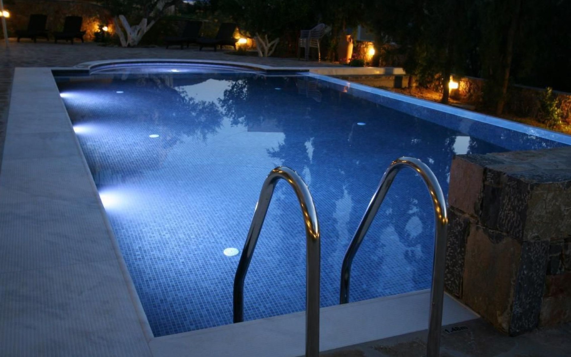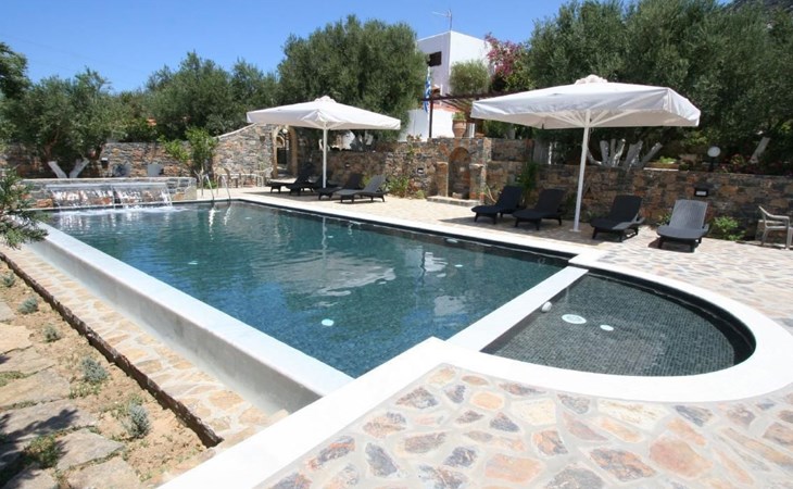 Weiche Sandstrände, umrahmt von felsigen Buchten geben der Küste einen bizarren Reiz. An den Hängen der sich anmutig erhebenden Hügelkuppen bildet eine üppige Vegetation grüne Kontraste zur graubraunen Farbe der Berge und den weißen Häusern der kleinen, ringsum verstreuten Dörfer.Villa Castello befindet sich auf einem 1.900 qm großen Grundstück auf welchem Oliven-, Feigen-, Orangen-, Mandarinenbäume, Bananenstauden und einige andere, im terrassenartig angelegten Garten, um das Haus gedeihen, ca. 450 m vom Meer entfernt. Jede Wohnung ist individuell mit Original-Gemälden und alten griechischen Elementen reizvoll eingerichtet. Alle Terrassen bzw. Balkone sind mit schatten spendenden Pergolen überdacht. Jede Wohnung verfügt über einen Safe, W-Lan, Fernseher und eine Klimaanlage.Die Plattenwege und Terrassen des Hauses zieren Blumenrabatte und duftende Sträucher. Im Einklang mit der Natur können Sie hier ein bescheidenes Stück Glück erleben und die Betriebsamkeit der heute oft so hektischen Welt vergessen, um wieder einmal zu träumen, im Wechselspiel von Licht und Schatten, Wasser und azurblauem Himmel; denn auf dieser Insel ist das noch möglich.Im Garten wurde zwischen den Bäumen ein gemauerter Backofen errichtet. Nebenan stehen gemauerte Bänke und ein Marmortisch. Aber auch für die kleinen Gäste steht ein Sandkasten zur Verfügung. In Istron, etwa 300 m vom Haus, erreichen Sie Einkaufsmöglichkeiten und gute Tavernen mit griechischen Spezialitäten. Das ursprüngliche Dorf Kalo Chorio liegt ca. 2 km von Istron entfernt im Landesinneren.Villa Castello für 4-5 Personen:Im Erdgeschoss mit 2 Schlafzimmern, das eine mit 2 Einzel-, das andere mit einem Doppelbett, Nachttischen, Kleiderschrank, Spiegel mit Ablage und Hocker. Wohnzimmer mit Tisch, Stühlen und einem Kanapee (dient auch als Schlafgelegenheit für die 5. Person) mit Zugang zu der großzügigen Terrasse, auf der Tisch und Stühle zur Verfügung stehen. Optisch durch eine halbhohe Mauer vom Wohnraum getrennt, ist die Küche eingerichtet mit Ober- und Unterschränken, Spüle, Kühlschrank, Kaffeemaschine einem Herd mit Platten, sowie genügend Besteck und Geschirr. Das Badezimmer ist mit Dusche, Toilette und Waschbecken. Eine zweite Terrasse ist auf der Rückseite des Hauses, unmittelbar vor einem farbenprächtigen Blumenparadies.Kurzbeschreibung 1Anzahl Küchen : 1UmgebungLeihmöglichkeiten : Autovermietung, FahrradverleihSportmöglichkeiten in der Umgebung : Angeln, Kanu, Mountainbiking, Radtouren, Rudern, Segeln, Surfen, Tauchen, WasserskiGarten und AussenanlagenFreizeiteinrichtungen am Objekt : Außenpool gemeinschaftliche Nutzung, SwimmingpoolGartenausstattung : Grill