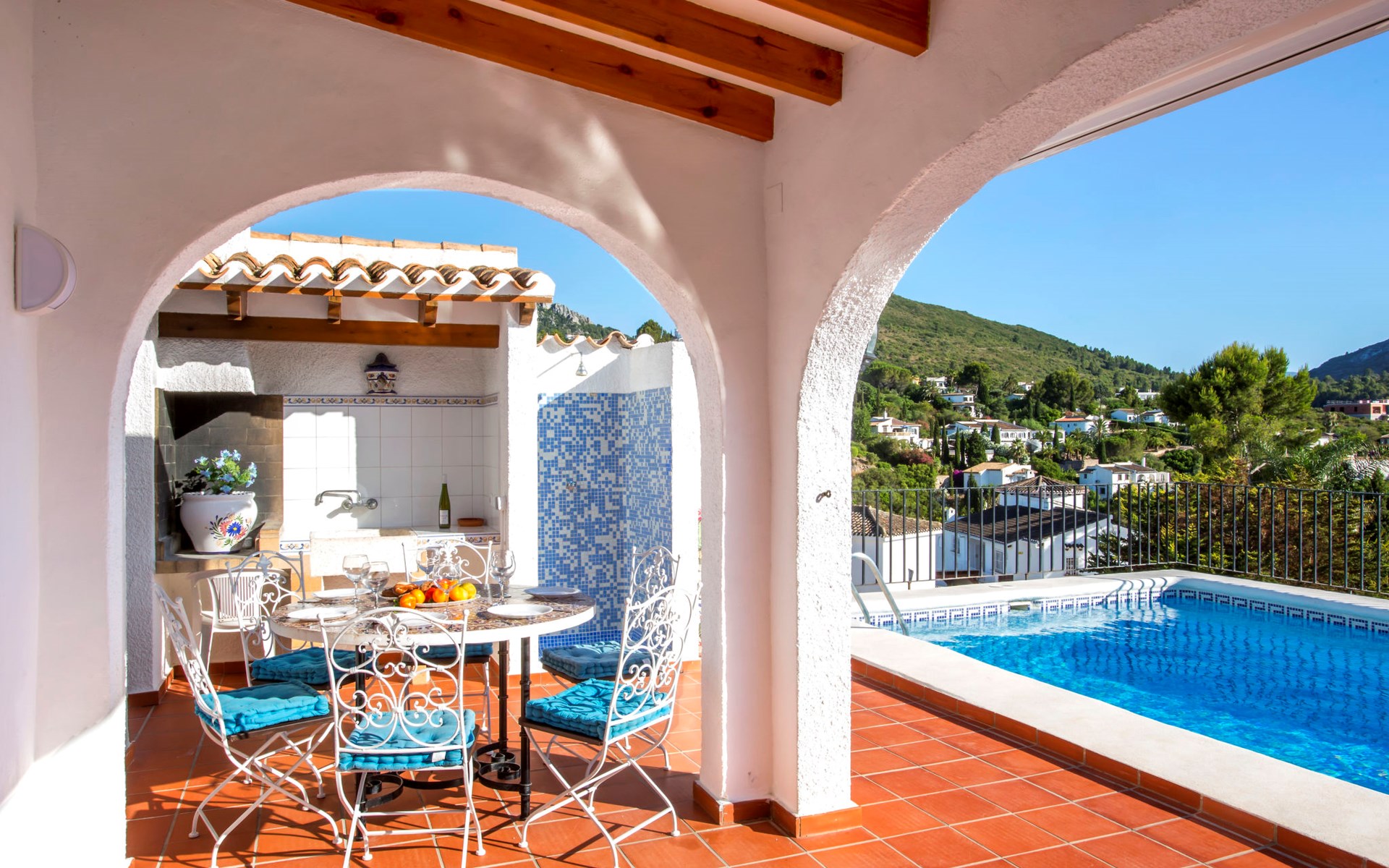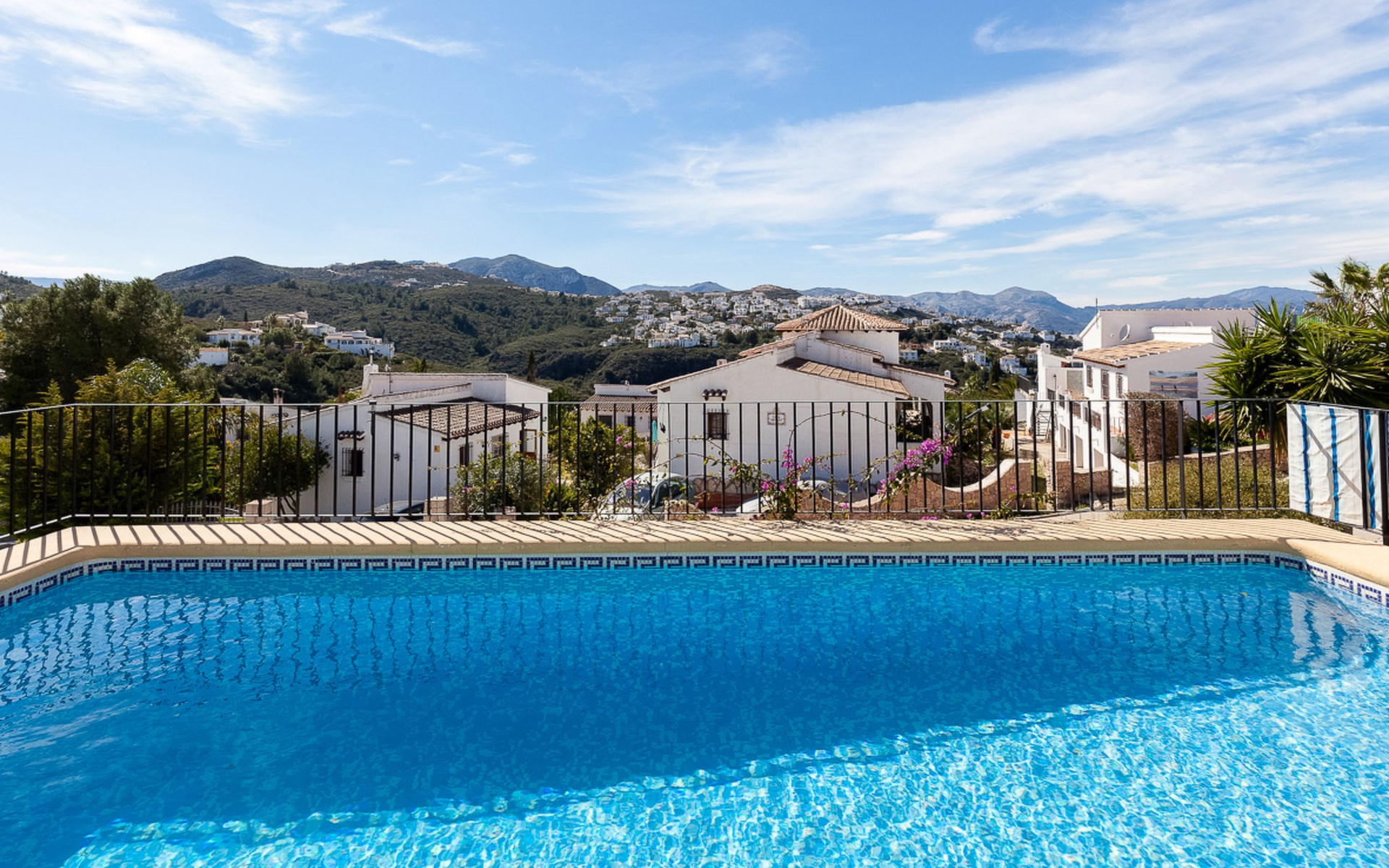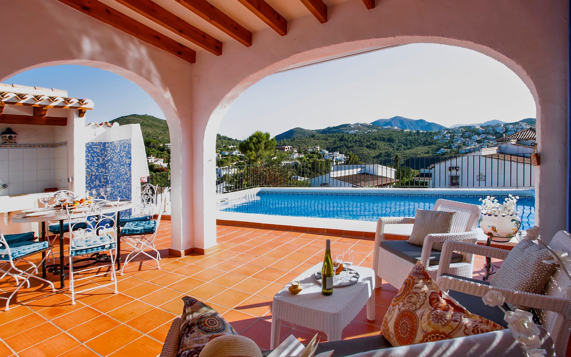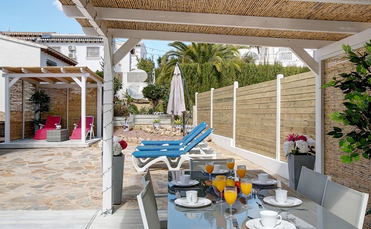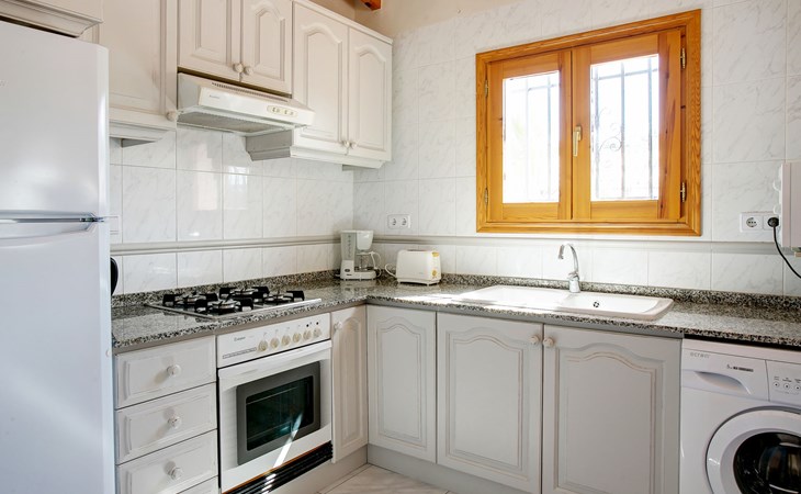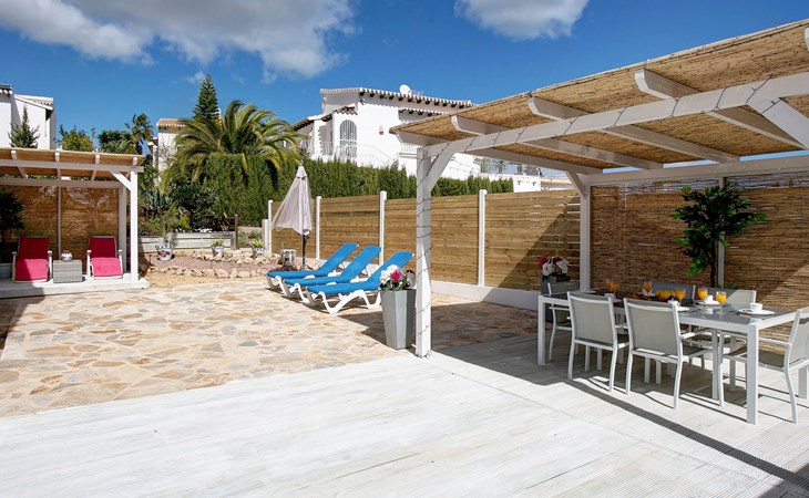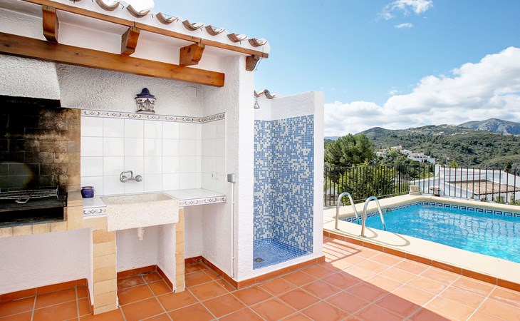 Monte Pego: Gemütliche, sehr komfortable Villa "Moreana". Ruhige Lage auf einem Hügel, im Villenviertel, verkehrsberuhigte Zone, 7 km vom Meer. Zur Alleinbenutzung: Naturgarten 600 m2, Schwimmbad (4 x 8 m, 90 - 200 cm tief, saisonale Verfügbarkeit: 01.Jan. - 31.Dez.). Terrasse (25 m2), Gartenmöbel, Grillhaus, Parkplatz (für 2 Autos). Bushaltestelle 7.4 km. Bitte beachten: Fahrzeug empfohlen. Der Besitzer akzeptiert keine Jugendgruppen.