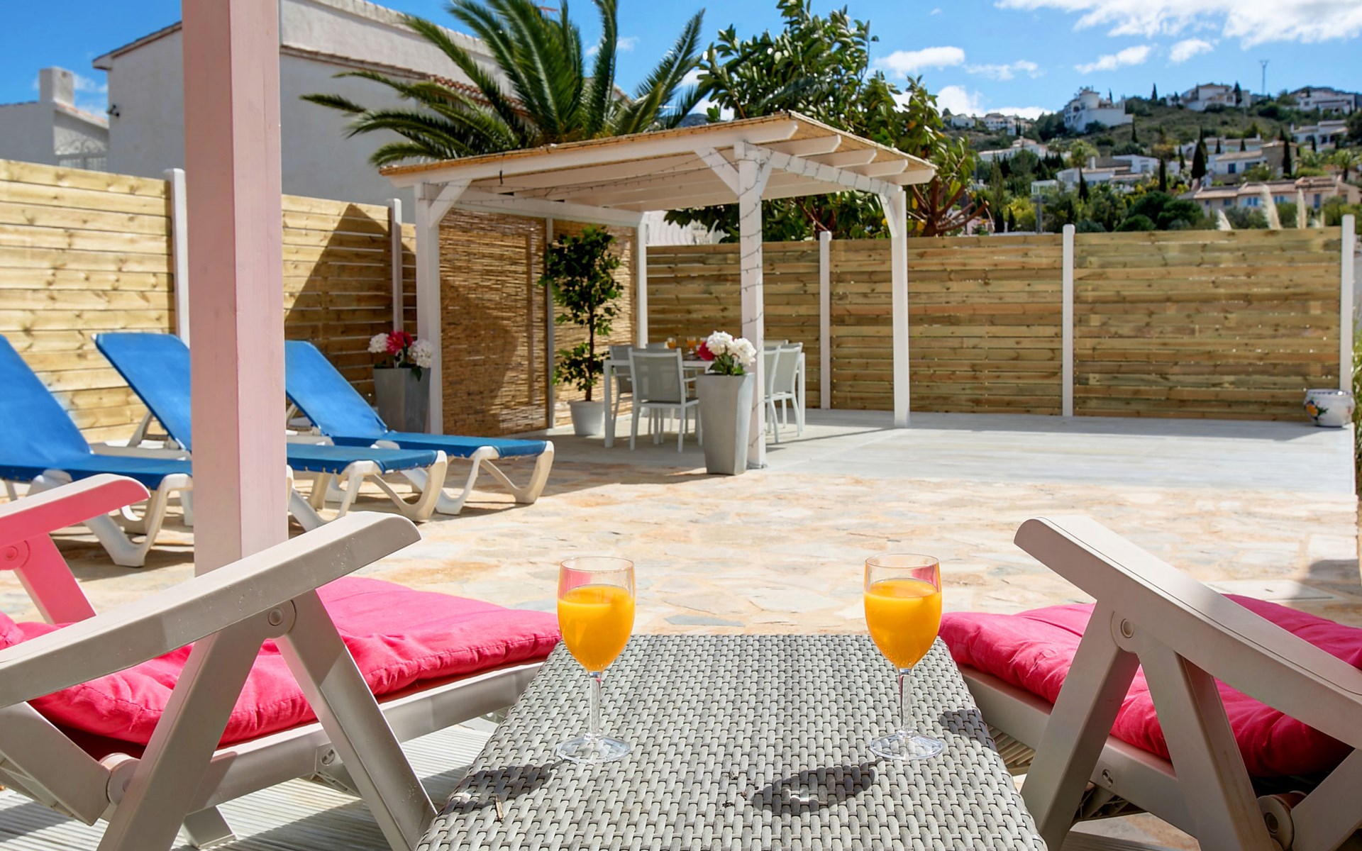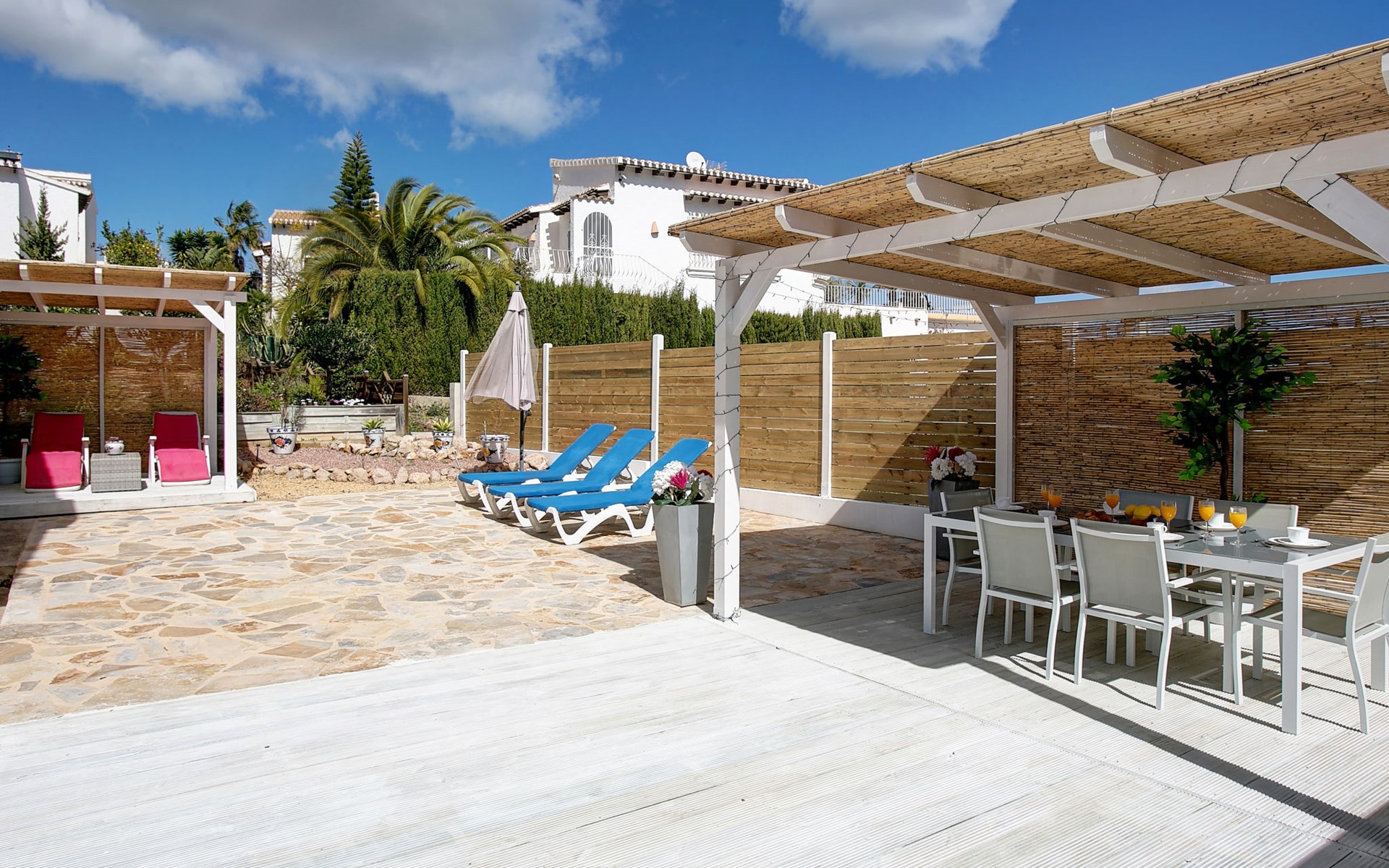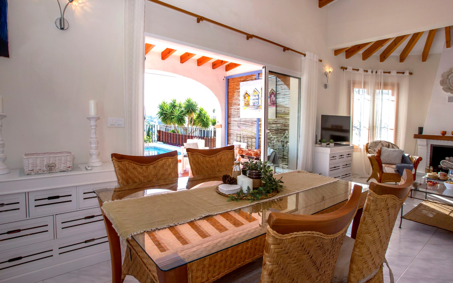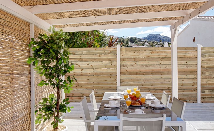 Monte Pego: Gemütliche, sehr komfortable Villa "Moreana". Ruhige Lage auf einem Hügel, im Villenviertel, verkehrsberuhigte Zone, 7 km vom Meer. Zur Alleinbenutzung: Naturgarten 600 m2, Schwimmbad (4 x 8 m, 90 - 200 cm tief, saisonale Verfügbarkeit: 01.Jan. - 31.Dez.). Terrasse (25 m2), Gartenmöbel, Grillhaus, Parkplatz (für 2 Autos). Bushaltestelle 7.4 km. Bitte beachten: Fahrzeug empfohlen. Der Besitzer akzeptiert keine Jugendgruppen.