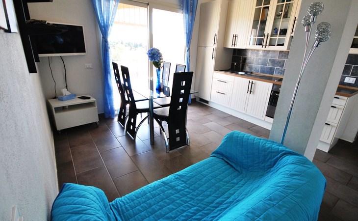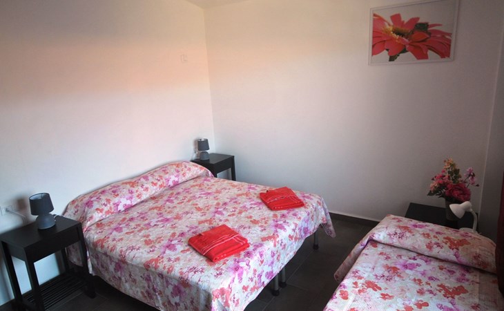 3-Zimmer-Wohnung 70 m2, für 3 – 5 Personen, 2. Stock inkl. 14m2 Veranda 1 Schlafzimmer mit Doppelbett, 1 Schlafzimmer mit Doppelbett und Einzelbett (auch 3 Einzelbetten), 2 Duschen/WC, Wohnküche mit Sofa, Veranda mit herrlichem Blick auf exotischen Garten. Klimaanlage/Heizung, komplett eingerichtete Küche, Kühlschrank, Gefrierfach, Gasherd, Backofen, 2 Waschmaschinen in Gemeinschaftsraum, geschmackvoll eingerichtete Zimmer (siehe Fotos, Änderungen vorbehalten), Grill. IM PREIS INBEGRIFFEN: Klimaanlage/Heizung, Parkplatz im Innenhof, WIFI, TV und Handtücher.