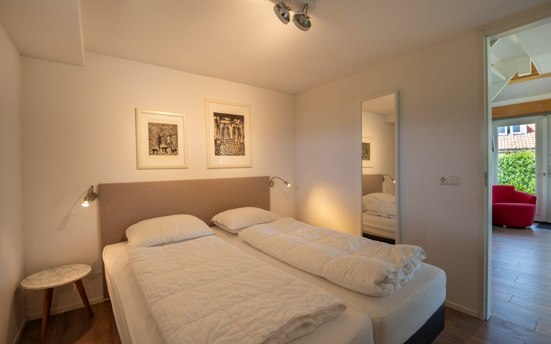 Als je meer dan 190 cm lang bent, is het bed in de slaapkamer beneden te kort.