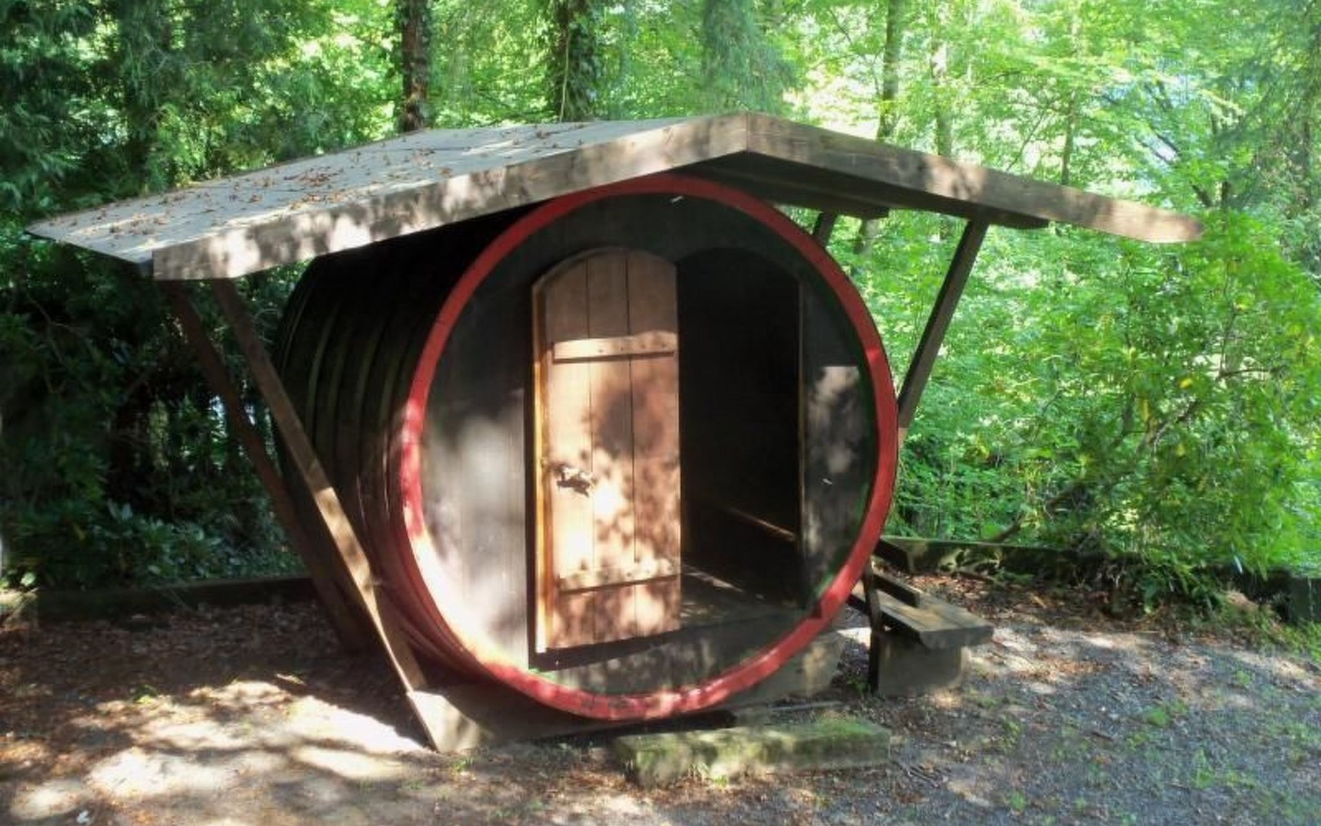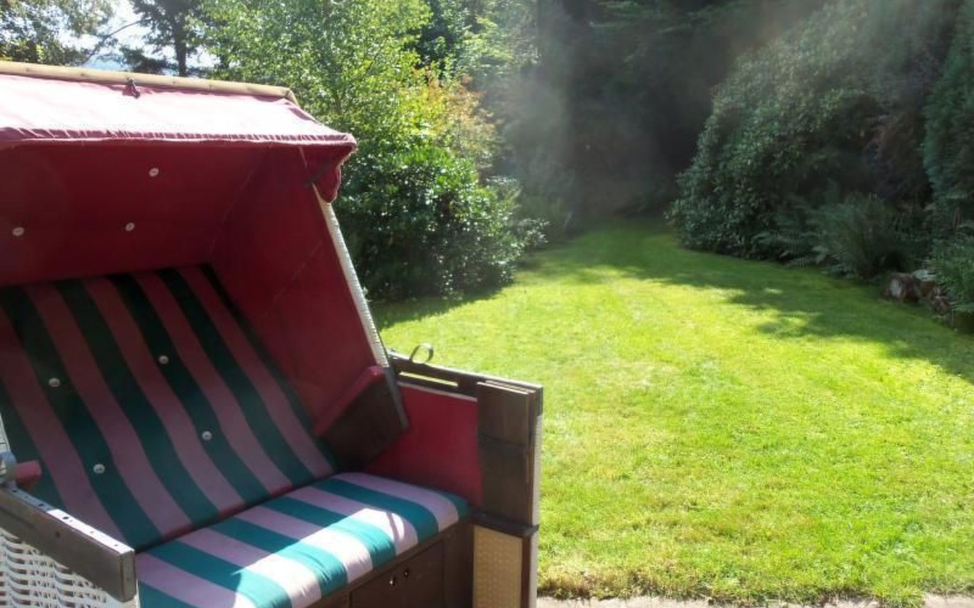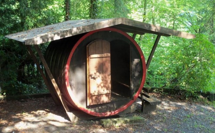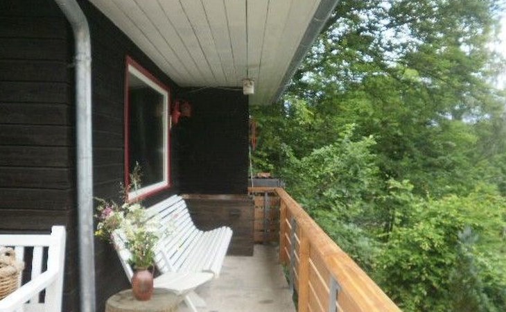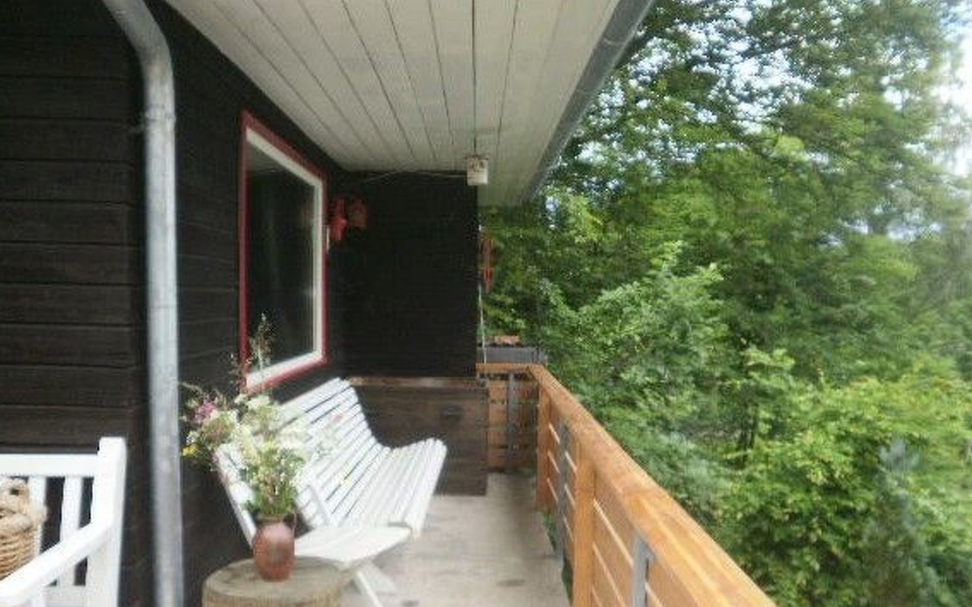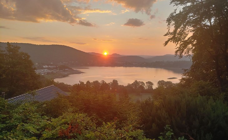 Im Außenbereich können Sie Platz nehmen auf der überdachten Veranda oder der Terrasse, wo Sie natürlich ebenfalls einen wunderschönen Seeblick genießen können. Das naturbelassene Grundstück mit alten Eichen und Buchen umfasst 1250 m². Weiterhin finden Sie ein großes begehbares Weinfass auf dem Gelände.