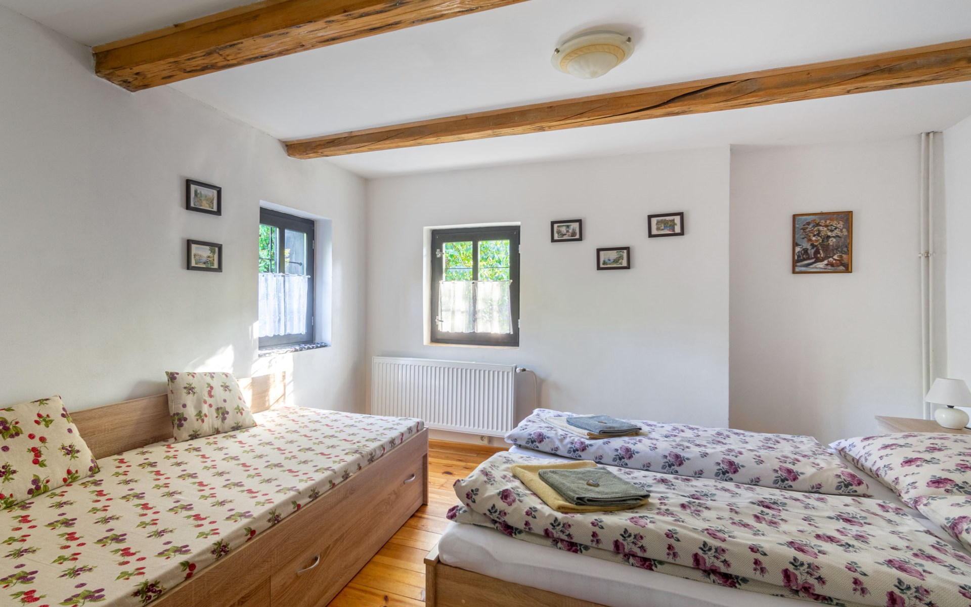 Schöner, freistehender Landsitz "Horní Prysk", 450 m.ü.M., auf 2 Stockwerken, renoviert im Jahre 2018. Im Ort Prysk, 3 km vom Zentrum von Kamenický Šenov, 8 km vom Zentrum von Nový Bor, sonnige Lage, 5 km vom Skigebiet, 500 m vom Bach. Zur Alleinbenutzung: Grundstück 500 m2, Rasen, Obstgarten. Pergola, Gartenmöbel, Grill, Parkplatz (für 2 Autos) auf dem Grundstück. Einkaufsgeschäft 500 m, Supermarkt 8 km, Restaurant 500 m, Bushaltestelle "Ruprechtice náměstí" 300 m, Freibad 400 m, Hallenbad 17 km. Nahe gelegene Sehenswürdigkeiten: Panská skála 3 km, Sloup 13 km, Česká Lípa 17 km, Pravčická brána 27 km, Hřensko 36 km, Liberec 55 km. Bekannte Skigebiete sind gut erreichbar: Ještěd 57 km, Polevsko 6 km, Prácheň 5 km.