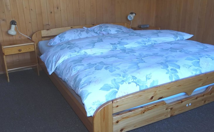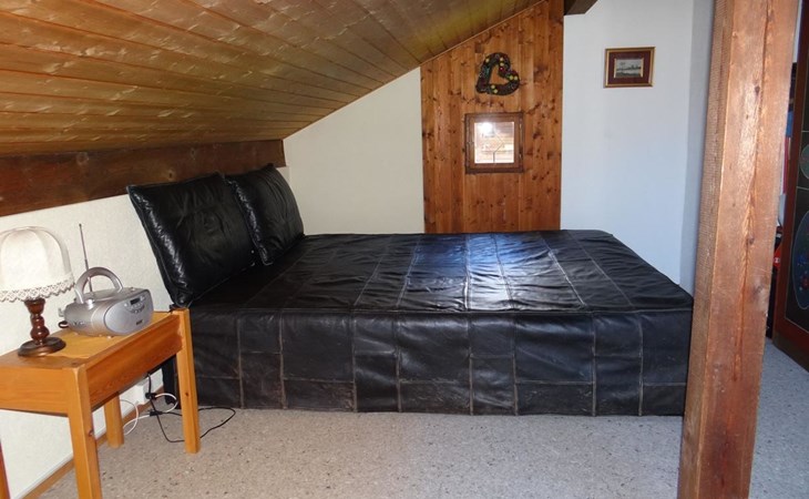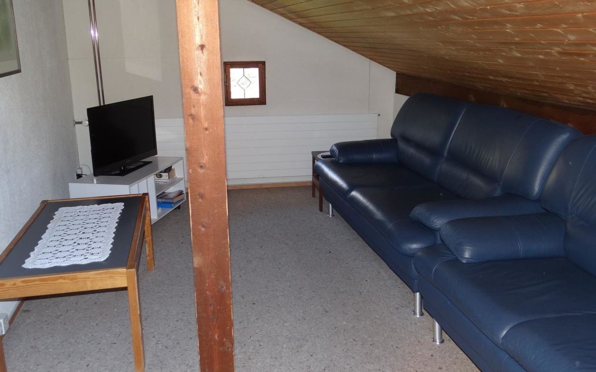 3 Zimmerwohnung, Dachstock: Doppelzimmer, Zweibettzimmer, Essküche, Wohnraum, Dusche-WC.
