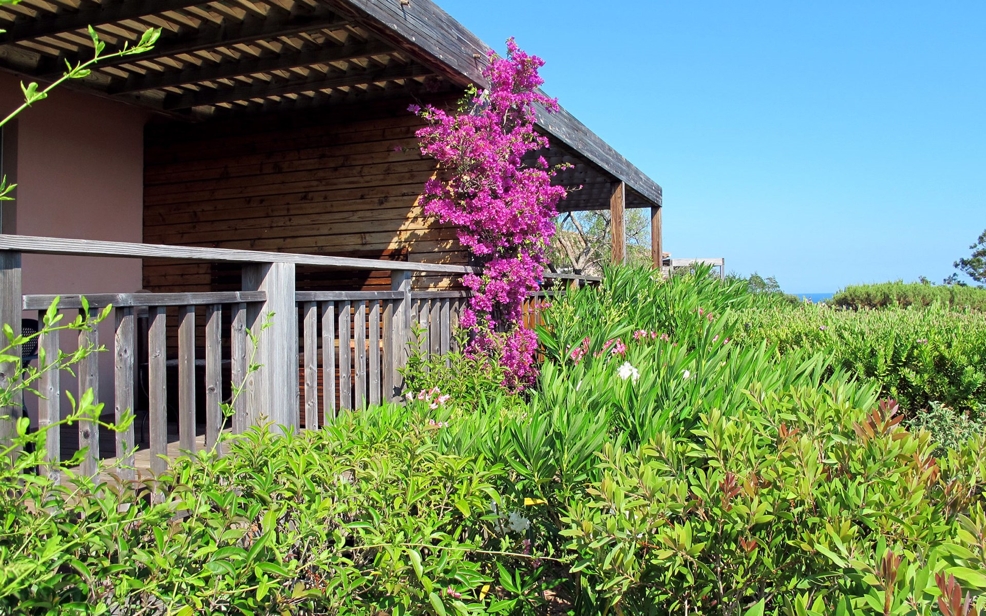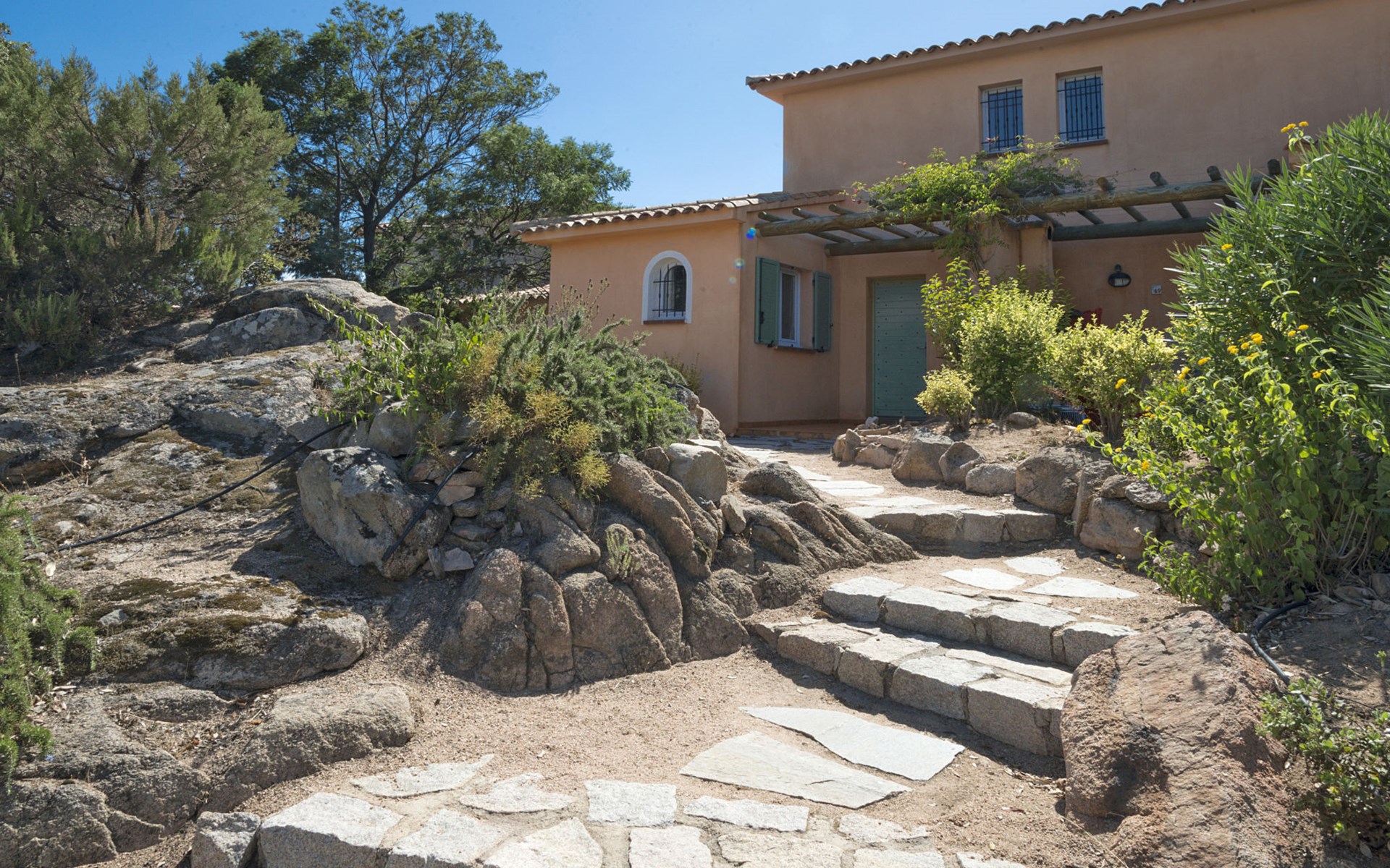 Santa Giulia 8 km von Porto Vecchio: Schöne, gemütliche Ferienanlage "Les Hameaux de Santa Giulia", umgeben von Bäumen. 59 Häuser in der Residenz. Im Ortsteil Santa Giulia, 8 km vom Zentrum von Porto Vecchio, 30 km vom Zentrum von Bonifacio, 143 km vom Zentrum von Bastia, sonnige, erhöhte Lage am Hang, 500 m vom Meer, direkter Zugang zum Strand. Zur Mitbenutzung: terrassierter Garten, 4 ha mit Pflanzen und Bäumen, Naturgarten, Schwimmbad beheizt, eingezäunt (15 x 8 m, saisonale Verfügbarkeit: 01.Apr. - 30.Sep.). Aussendusche, Tennis, Terrasse. In der Anlage: Empfang, Wireless LAN. Parkplatz beim Haus auf dem Grundstück. Einkaufsgeschäft 400 m, Supermarkt 8 km, Restaurant, Bar 400 m, Bushaltestelle 3 km, Sandstrand "Santa Giulia" 500 m. Bitte beachten: Fahrzeug empfohlen. Die Residenz wird durch elektrische Tore geschlossen. Am Strand Santa Giulia findet jährlich Ende August ein Musikfestival statt. WLAN nur bei der Rezeption.