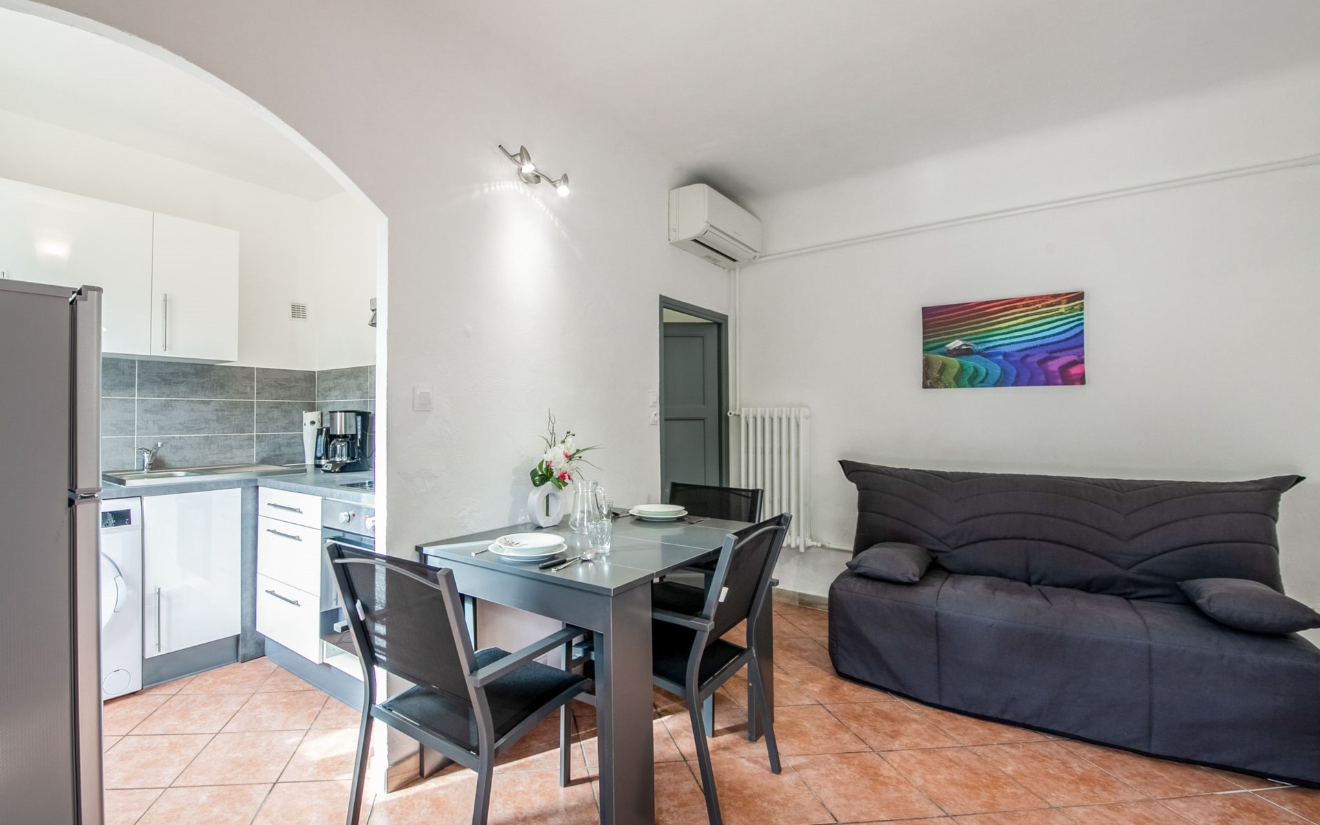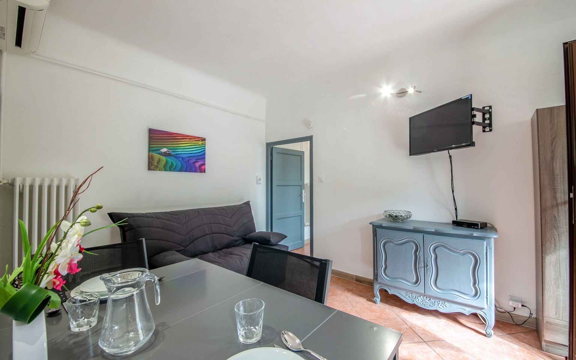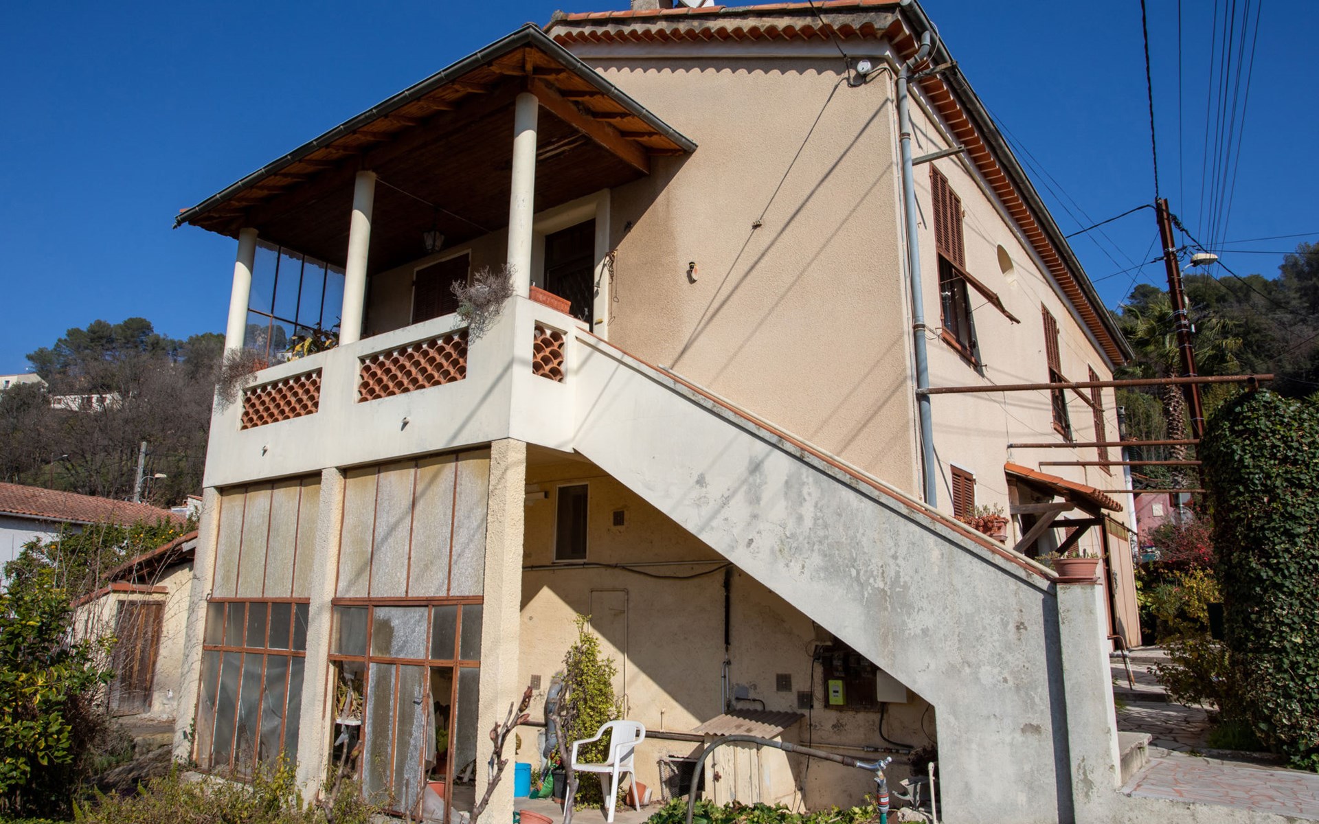Zweifamilienhaus "Le Narcisse", auf 2 Stockwerken. Im Ortsteil Les Canebiers, 1.5 km vom Zentrum von Cagnes sur Mer, ruhige Lage, 2.5 km vom Meer, 2.5 km vom Strand, in einer Sackgasse. Parkplatz beim Haus. Einkaufsgeschäft 1.3 km, Lebensmittelgeschäft 1.3 km, Supermarkt 1.3 km, Restaurant 1 km, Bäckerei 900 m, Café 1.5 km, Bushaltestelle 450 m, Bahnstation "Cagnes sur Mer" 2.2 km, Steinstrand "publique" 2.5 km, Freibad 650 m, Hallenbad 650 m. Sporthafen 3.2 km, Golfplatz (18 Loch) 10 km, Segelschule 3.2 km, Tennis 450 m, Minigolf 9 km, Reitstall 8 km. Nahe gelegene Sehenswürdigkeiten: Chateau Haut de Cagnes 1.4 km, Musée Renoir 1.4 km, Marineland Antibes 8 km, Saint Paul de Vence 8 km, Nice 14 km, Cannes 22 km. Wandergebiete: Col de Vence 20 km, Parc National du Mercantour 64 km. Besitzer wohnt in separatem Hausteil.