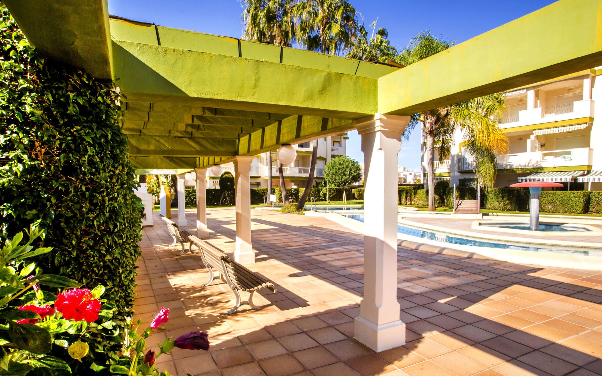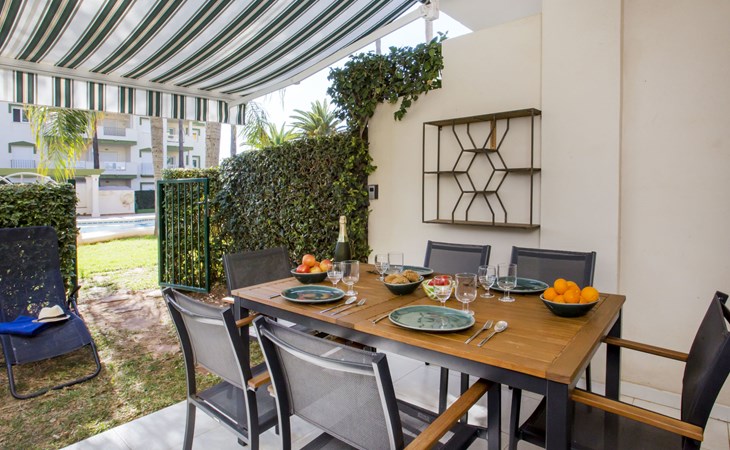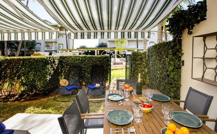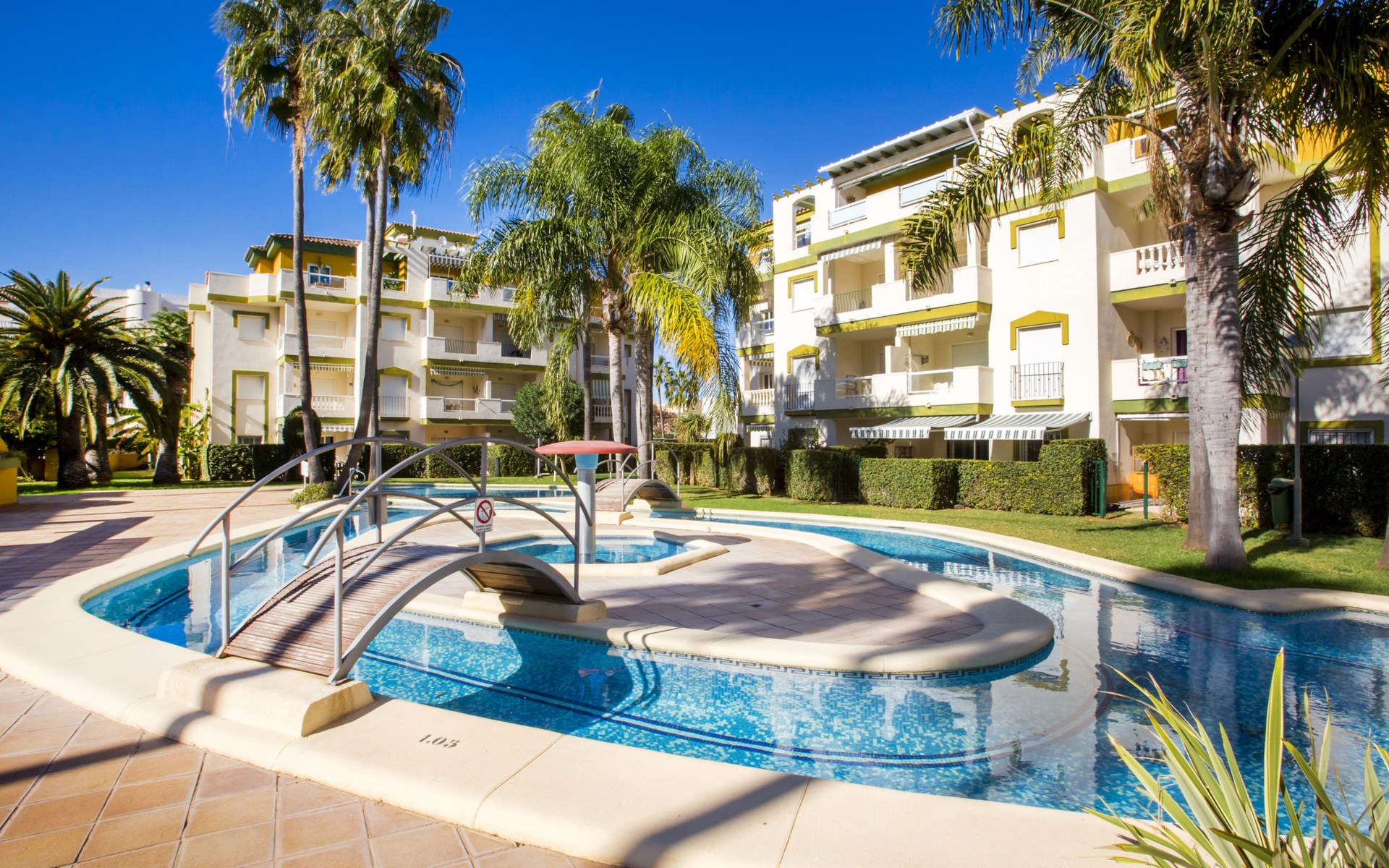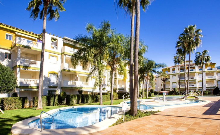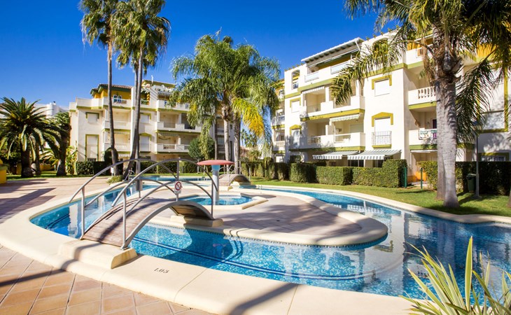 Grosses, schönes, gemütliches Appartementhaus "La Fontana". Im Ortsteil Las Marinas, Nova Dénia, 5 km vom Zentrum von Dénia, 450 m vom Meer, vom Strand. Zur Mitbenutzung: grosser, gepflegter Garten mit Rasen, Schwimmbad (10 x 20 m, 110 - 180 cm tief, saisonale Verfügbarkeit: 01.Jan. - 31.Dez.). Kinderbecken, Aussendusche. Im Hause: Fahrstuhl. Parkplatz. Supermarkt 500 m, Restaurant 300 m, Bar, Bushaltestelle 200 m, Sandstrand 450 m.