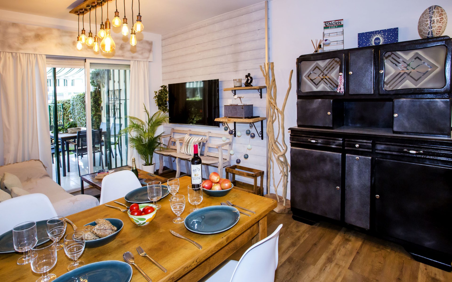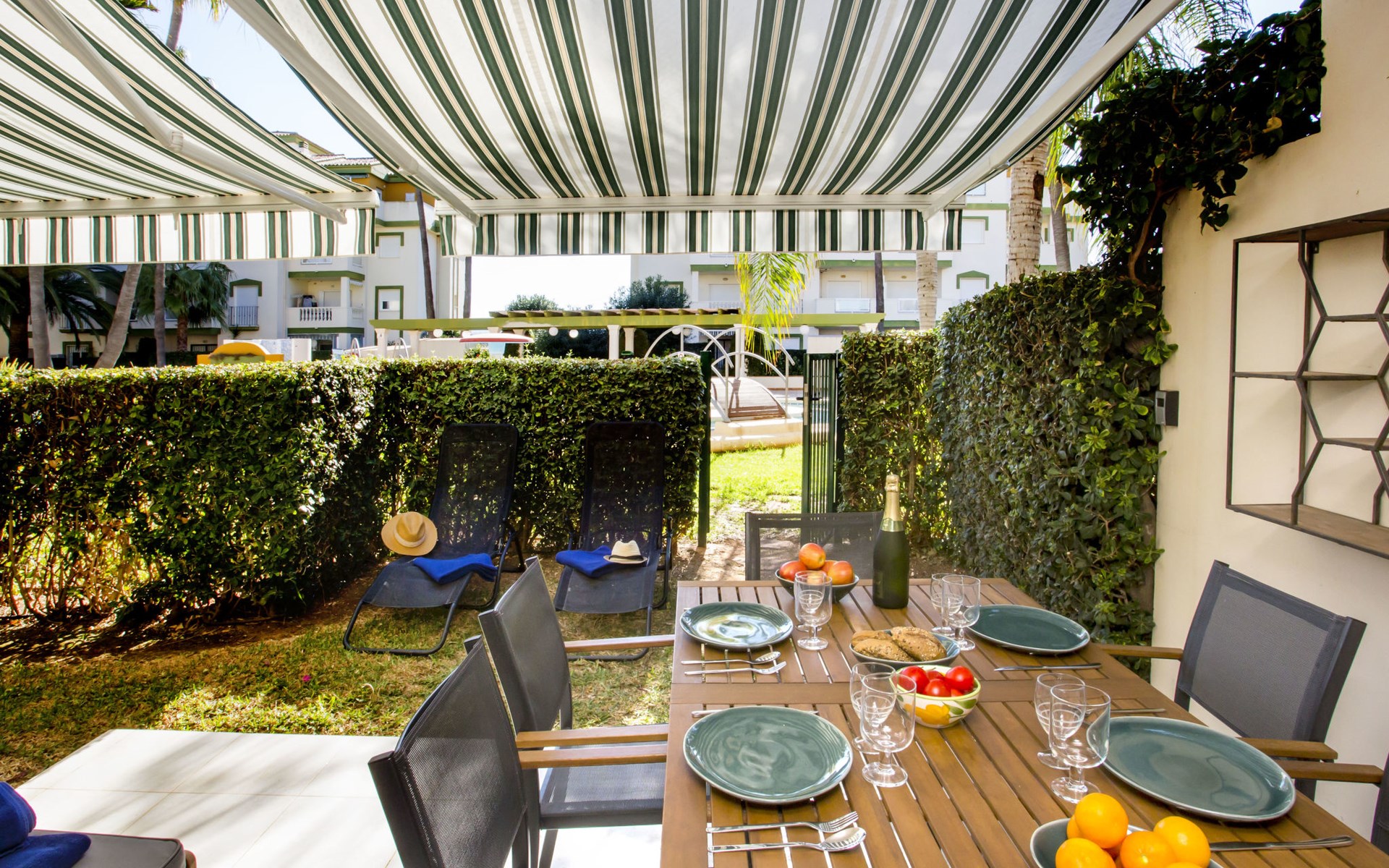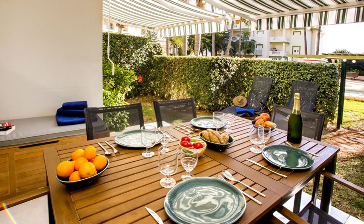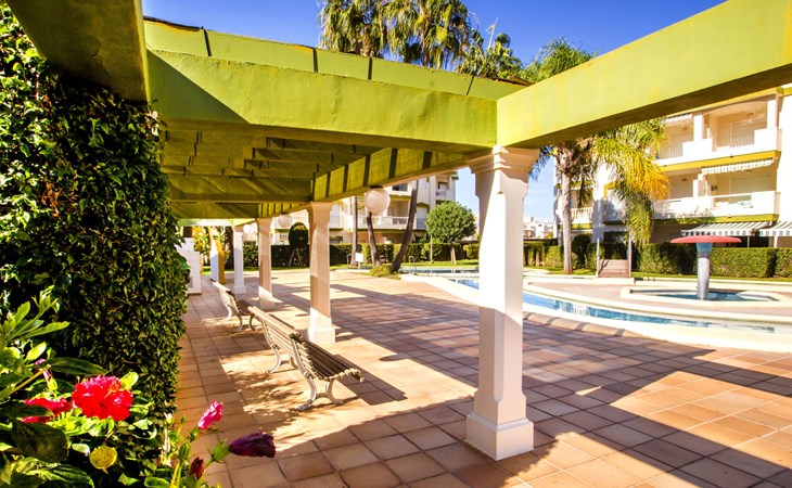 Grosses, schönes, gemütliches Appartementhaus "La Fontana". Im Ortsteil Las Marinas, Nova Dénia, 5 km vom Zentrum von Dénia, 450 m vom Meer, vom Strand. Zur Mitbenutzung: grosser, gepflegter Garten mit Rasen, Schwimmbad (10 x 20 m, 110 - 180 cm tief, saisonale Verfügbarkeit: 01.Jan. - 31.Dez.). Kinderbecken, Aussendusche. Im Hause: Fahrstuhl. Parkplatz. Supermarkt 500 m, Restaurant 300 m, Bar, Bushaltestelle 200 m, Sandstrand 450 m.