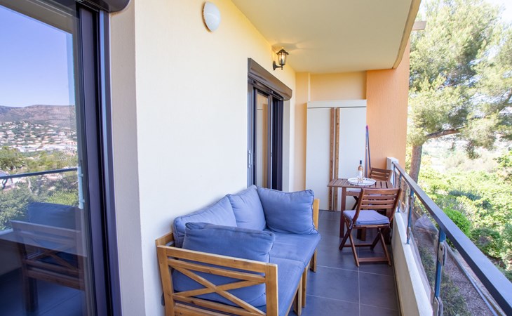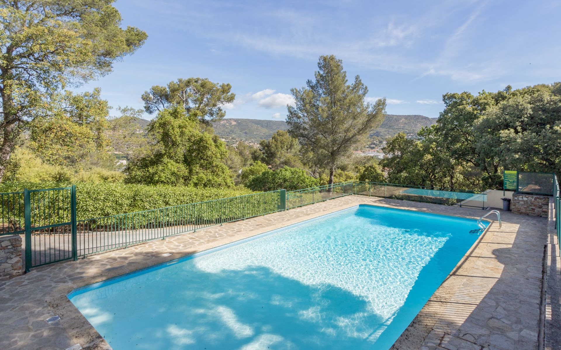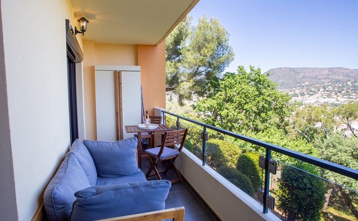 Residenz "Le Bois du Coteau", auf 2 Stockwerken. Im Ortsteil La Faviére, im Ort Bormes Les Mimosas, 1 km vom Meer, 1 km vom Strand. Zur Mitbenutzung: Schwimmbad eckig eingezäunt (15 x 7 m, 110 - 190 cm tief, saisonale Verfügbarkeit: 02.Mai. - 31.Okt.). Boccia. In der Anlage: Einstellraum für Fahrräder. Treppenweg (6 Stufen) bis zum Haus. Einkaufsgeschäft, Lebensmittelgeschäft, Supermarkt, Restaurant, Bar, Bäckerei, Café 900 m, Bushaltestelle "Saint pons" 1.8 km, Sandstrand "La Favière" 1 km. Sporthafen 1.5 km, Golfplatz (18 Loch) 15 km, Segelschule 3 km, Tennis 3 km, Minigolf 3.5 km. Die Residenz wird durch elektrische Tore geschlossen. Die Schlüsselübergabe findet bei der Agentur Interhome in Le Lavandou statt.
