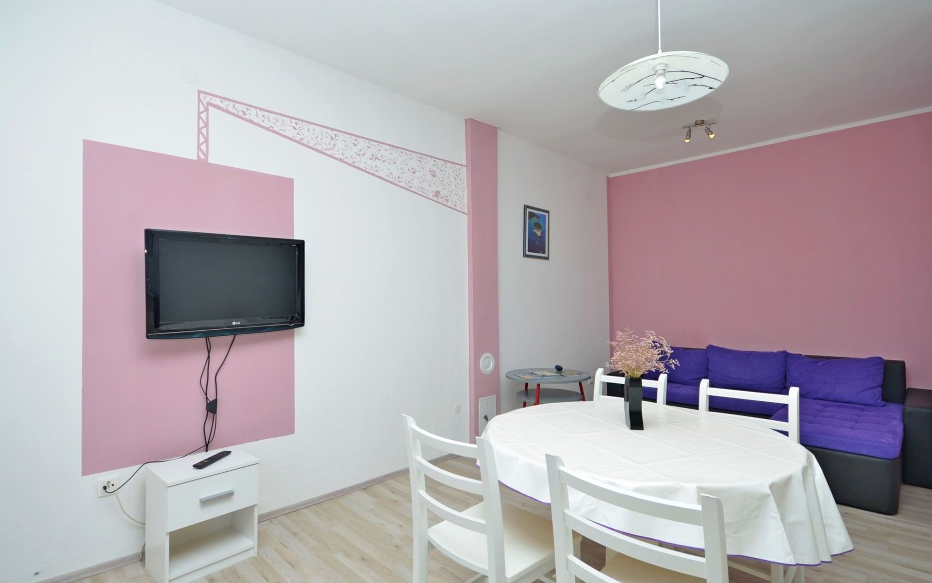Durch die günstige Lage der Wohnung sind die Gäste nur einen Katzensprung von der Essenz Dalmatiens entfernt. Für den täglichen Bedarf gibt es nur 200 Meter von der Wohnung entfernt ein Lebensmittelgeschäft, in dem man sich mühelos mit dem Nötigsten eindecken kann. Das nächstgelegene Stadtzentrum, das nur 1500 Meter entfernt ist, lädt zur Erkundung ein und bietet einen Einblick in die lokale Kultur, Küche und Geschichte.