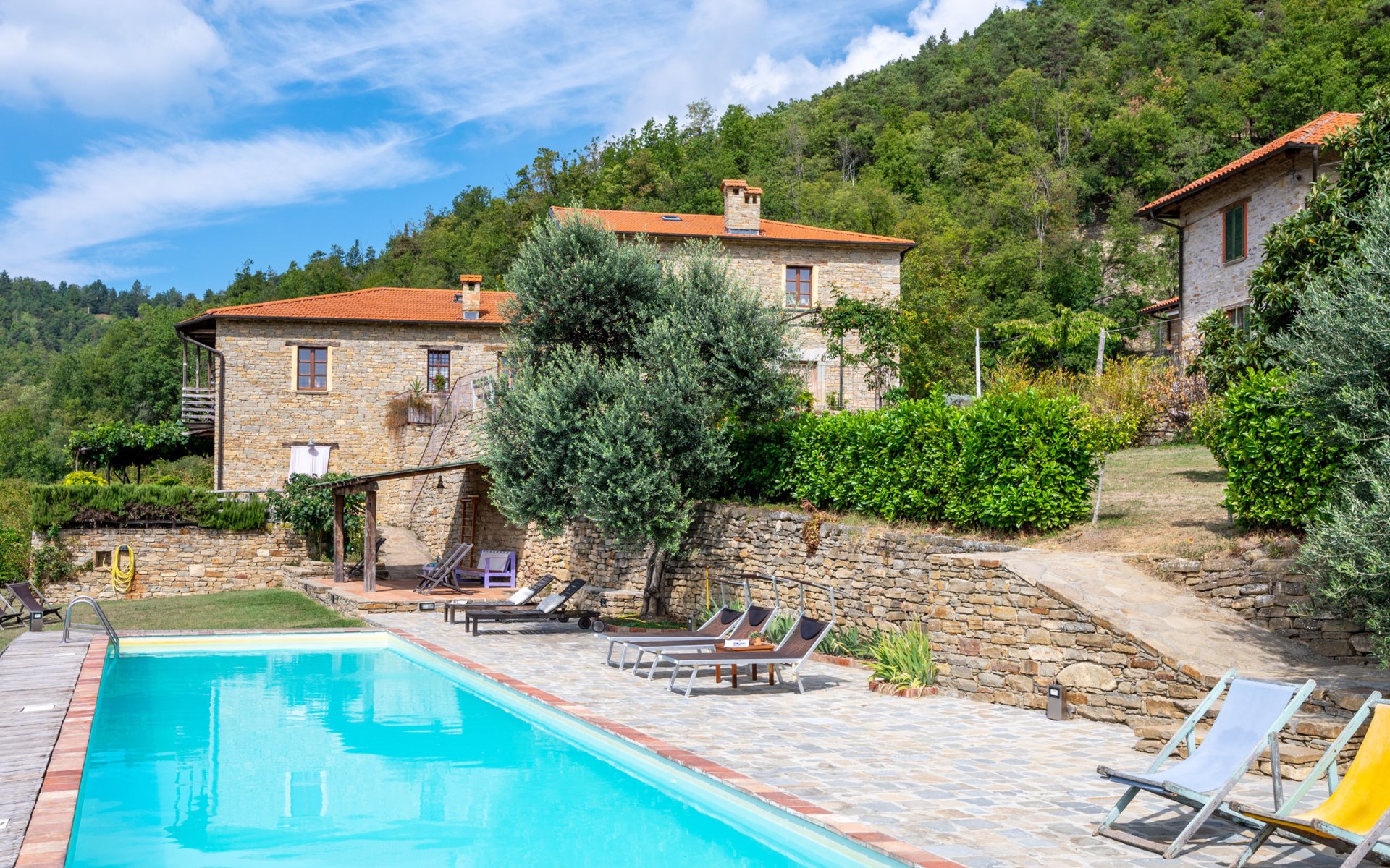 Rustikaler Landwirtschaftlicher Betrieb "Cascina Barroero", 650 m.ü.M.. 4 Wohnungen in der Residenz. 5 km vom Zentrum von Cortemilia, 30 km vom Zentrum von Alba, 35 km vom Zentrum von Acqui Terme, 55 km vom Meer, im Grünen, im Wald. Zur Mitbenutzung: Grundstück 10'000 m2 mit Rasen und Bäumen, Wiese, Liegewiese, Schwimmbad (19 x 4 m, 120 - 180 cm tief, saisonale Verfügbarkeit: 01.Mai. - 31.Okt.). Pergola, Gartenmöbel. Im Hause: Waschmaschine (extra), Wäschetrockner (zur Mitbenutzung, extra). 4 km lange sehr schmale Zufahrt. Parkplatz (für 4 Autos) beim Haus auf dem Grundstück. E-Ladestation. Einkaufsgeschäft 5 km, Supermarkt 5 km, Bushaltestelle "Cravanzana" 5 km, Bahnstation "Alba" 30 km. Ab Hof Verkauf von bäuerlichen Produkten. Bitte beachten: Der Besitzer wohnt auf dem gleichen Grundstück. Tiere in der Umgebung.