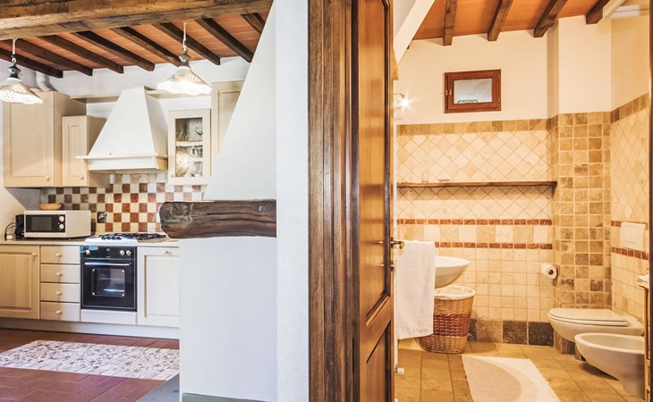 Residenz "Il Borghetto". 7 km vom Zentrum von Barberino di Mugello, 38 km vom Zentrum von Firenze, erhöhte Lage auf einem Hügel, 7 km vom See. Zur Mitbenutzung: Garten (eingezäunt), Schwimmbad (12 x 6 m, 100 - 220 cm tief, saisonale Verfügbarkeit: 05.Mai. - 28.Sep.). Aussendusche, Gartenmöbel, Grill, Kinderspielplatz (Rutschbahn, Schaukel). Im Hause: Zentralheizung, Waschmaschine (zur Mitbenutzung, extra), Heizung vor Ort zu zahlen, Heizung nur verfügbar von 01.Nov. - 15.Apr.. Parkplatz beim Haus. Lebensmittelgeschäft 500 m, Supermarkt 7 km, Bushaltestelle 500 m, Badesee "Lago di Bilancino" 7 km. Golfplatz (18 Loch) 18 km. Nahe gelegene Sehenswürdigkeiten: Outlet Barberino 14 km, Autodromo internazionale 15 km, Scarperia 20 km, Vicchio 28 km. Bitte beachten: Das Foto ist nur ein Hausbeispiel. Weitere Unterkünfte sind buchbar. Altes Landhaus, im toskanischen Stil vollständig renoviert. Mitten in der grünen Hügellandschaft von Mugello gelegen, an den Hängen des Passo della Fruta. Das Anwesen umfasst eine umgebaute Scheune mit 2 Wohnungen, einen alten Hühnerstall, ein grosses Landhaus mit 8 Wohnungen. Von diesen besitzen einige Steinmauern und alle verfügen über einen Aussenbereich oder Garten. Sorgfältige Einrichtung, wobei die rustikale Bauweise beibehalten wurde, wie etwa die Sichtbalken, die Bögen und Fensterrähmen aus Holz. Die Residenz eignet sich bestens zum Erholen und Ausspannen, Sie können sich von der toskanischen Küche und Weinen verwöhnen lassen und zugleich ist es ein idealer Ausgangspunkt für Wanderungen und Mountain-Bike-Touren. Die bedeutendsten Orte des Mugello und auch der Toskana können gut erreicht werden. Der Lago di Bilancino (7 km) eignet sich für sämtliche Wassersportarten (Kanu, Segeln, Wind-Surfen) und es gibt zahlreiche Uferbereiche zum Baden und Entspannen. Autorennbahn "Autodromo Internazionale del Mugello" 15 km, Il Barberino Designer-Outlet mit weiteren Outlets von bekannten Markenprodukten, 14 km.