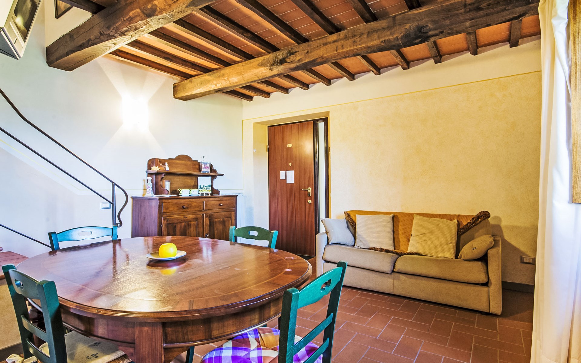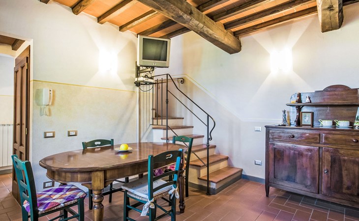 Residenz "Il Borghetto". 7 km vom Zentrum von Barberino di Mugello, 38 km vom Zentrum von Firenze, erhöhte Lage auf einem Hügel, 7 km vom See. Zur Mitbenutzung: Garten (eingezäunt), Schwimmbad (12 x 6 m, 100 - 220 cm tief, saisonale Verfügbarkeit: 05.Mai. - 28.Sep.). Aussendusche, Gartenmöbel, Grill, Kinderspielplatz (Rutschbahn, Schaukel). Im Hause: Zentralheizung, Waschmaschine (zur Mitbenutzung, extra), Heizung vor Ort zu zahlen, Heizung nur verfügbar von 01.Nov. - 15.Apr.. Parkplatz beim Haus. Lebensmittelgeschäft 500 m, Supermarkt 7 km, Bushaltestelle 500 m, Badesee "Lago di Bilancino" 7 km. Golfplatz (18 Loch) 18 km. Nahe gelegene Sehenswürdigkeiten: Outlet Barberino 14 km, Autodromo internazionale 15 km, Scarperia 20 km, Vicchio 28 km. Bitte beachten: Das Foto ist nur ein Hausbeispiel. Weitere Unterkünfte sind buchbar. Altes Landhaus, im toskanischen Stil vollständig renoviert. Mitten in der grünen Hügellandschaft von Mugello gelegen, an den Hängen des Passo della Fruta. Das Anwesen umfasst eine umgebaute Scheune mit 2 Wohnungen, einen alten Hühnerstall, ein grosses Landhaus mit 8 Wohnungen. Von diesen besitzen einige Steinmauern und alle verfügen über einen Aussenbereich oder Garten. Sorgfältige Einrichtung, wobei die rustikale Bauweise beibehalten wurde, wie etwa die Sichtbalken, die Bögen und Fensterrähmen aus Holz. Die Residenz eignet sich bestens zum Erholen und Ausspannen, Sie können sich von der toskanischen Küche und Weinen verwöhnen lassen und zugleich ist es ein idealer Ausgangspunkt für Wanderungen und Mountain-Bike-Touren. Die bedeutendsten Orte des Mugello und auch der Toskana können gut erreicht werden. Der Lago di Bilancino (7 km) eignet sich für sämtliche Wassersportarten (Kanu, Segeln, Wind-Surfen) und es gibt zahlreiche Uferbereiche zum Baden und Entspannen. Autorennbahn "Autodromo Internazionale del Mugello" 15 km, Il Barberino Designer-Outlet mit weiteren Outlets von bekannten Markenprodukten, 14 km.