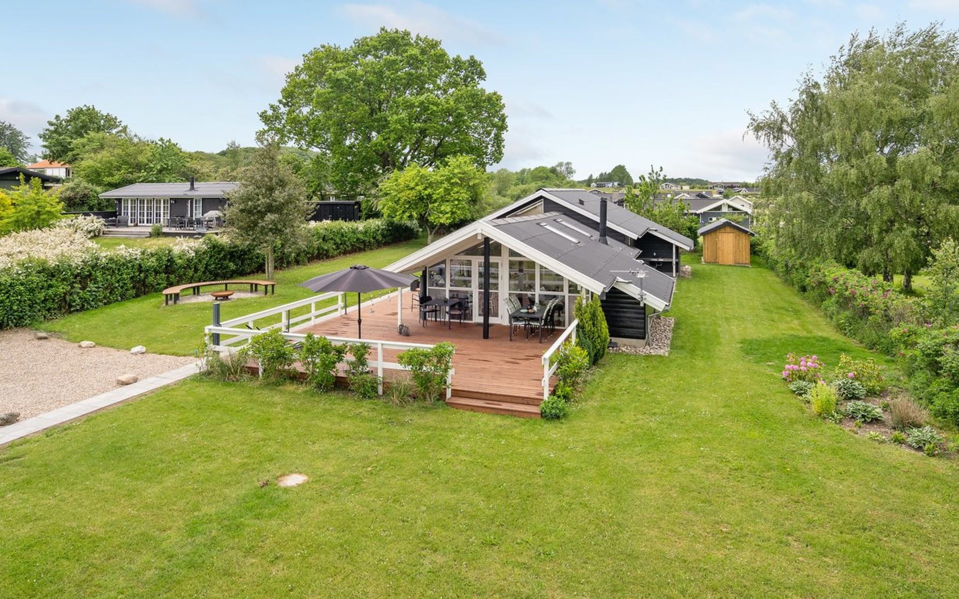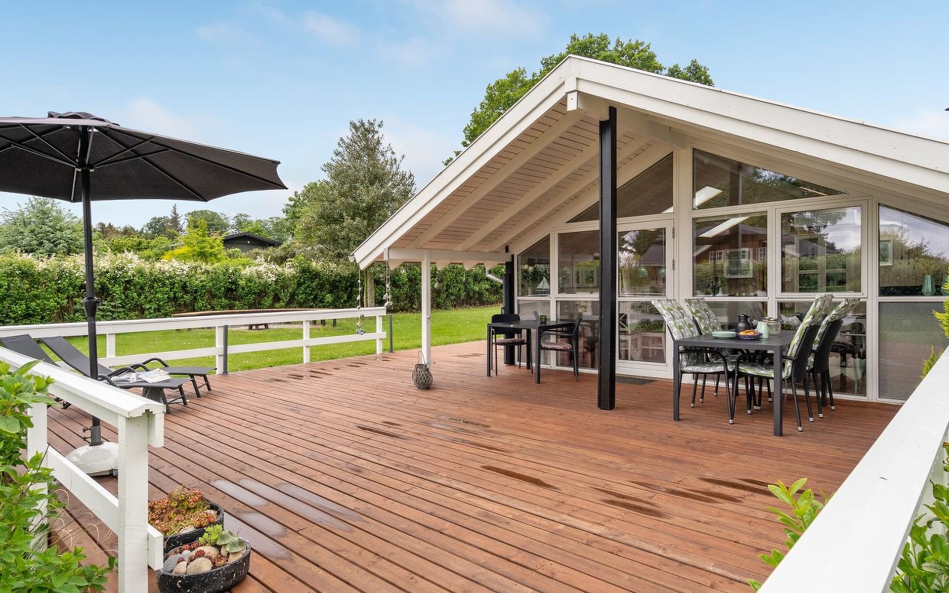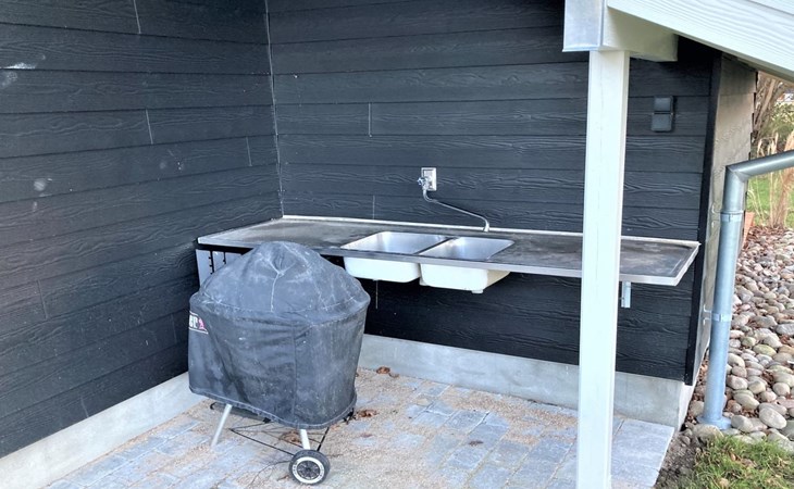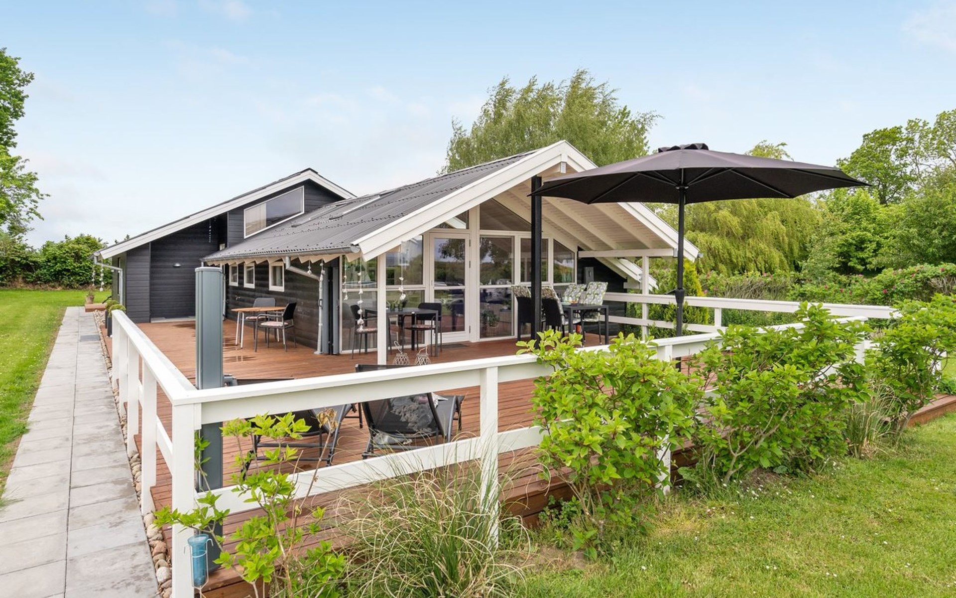 Einfamilienhaus, Baujahr 1982. 275 m vom Meer. Zur Alleinbenutzung: Grundstück 1'213 m2, gepflegter Garten. Terrasse (102 m2), Grill. Im Hause: Sauna, Waschmaschine, Wäschetrockner. Parkplatz beim Haus. Lebensmittelgeschäft 5 km. Der Besitzer akzeptiert keine Jugendgruppen.