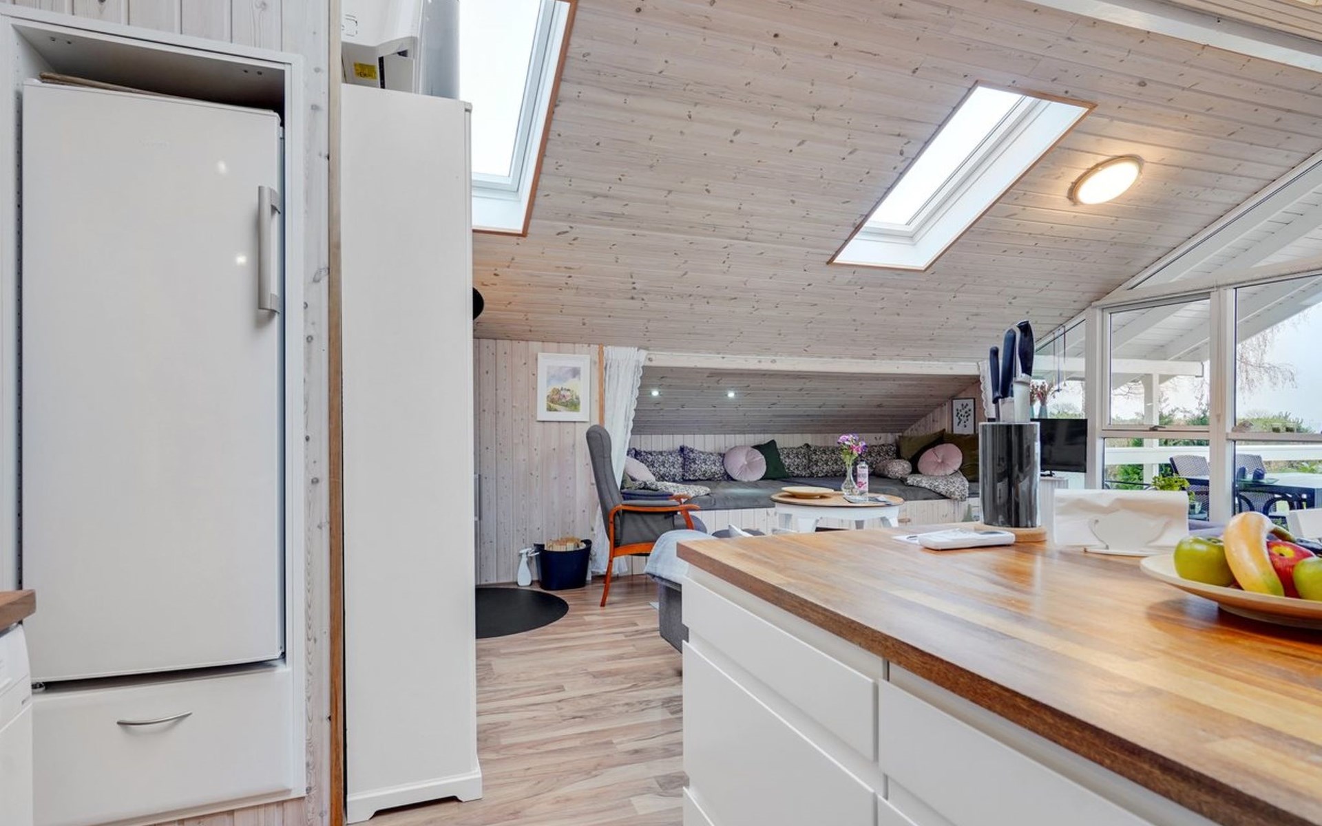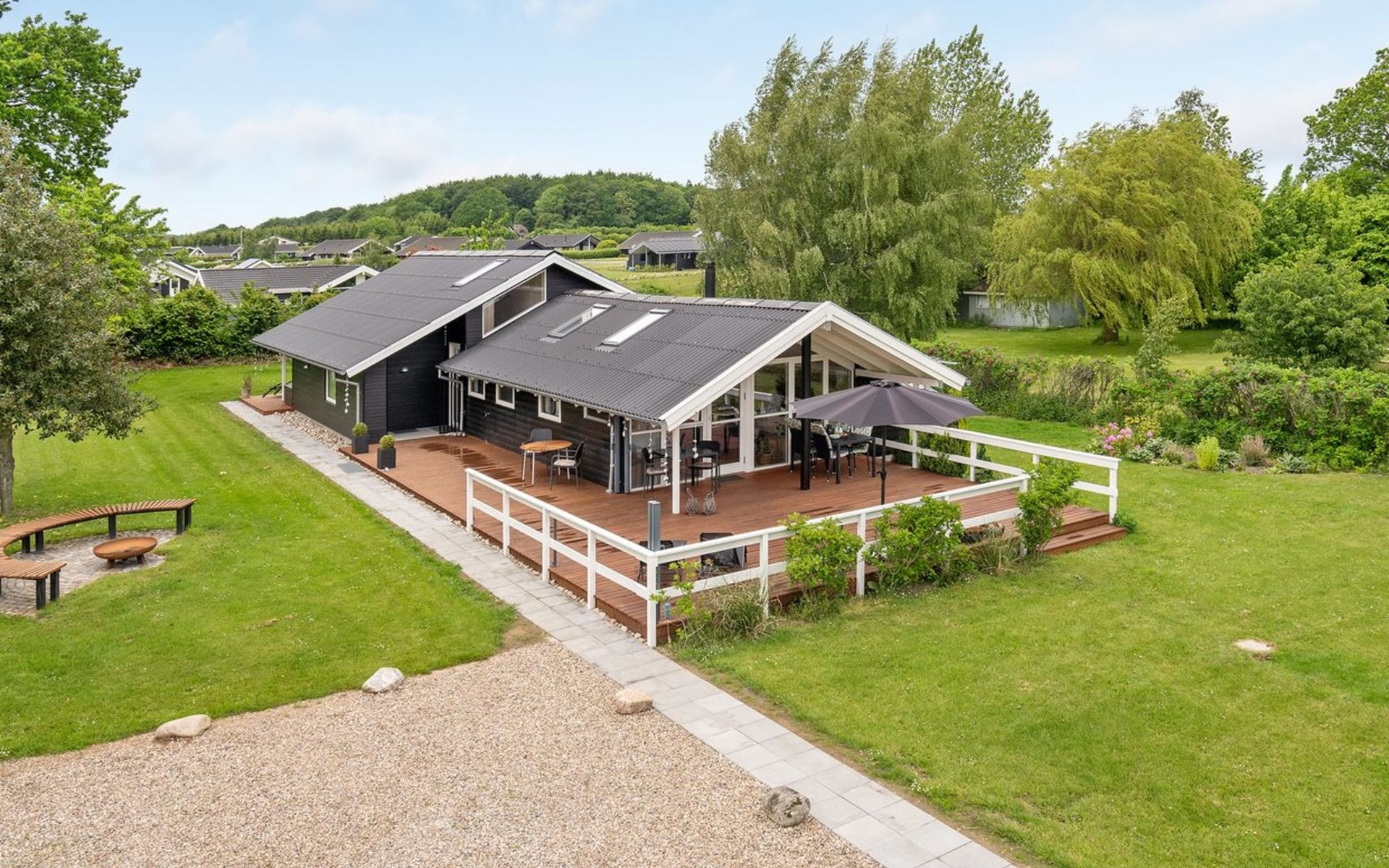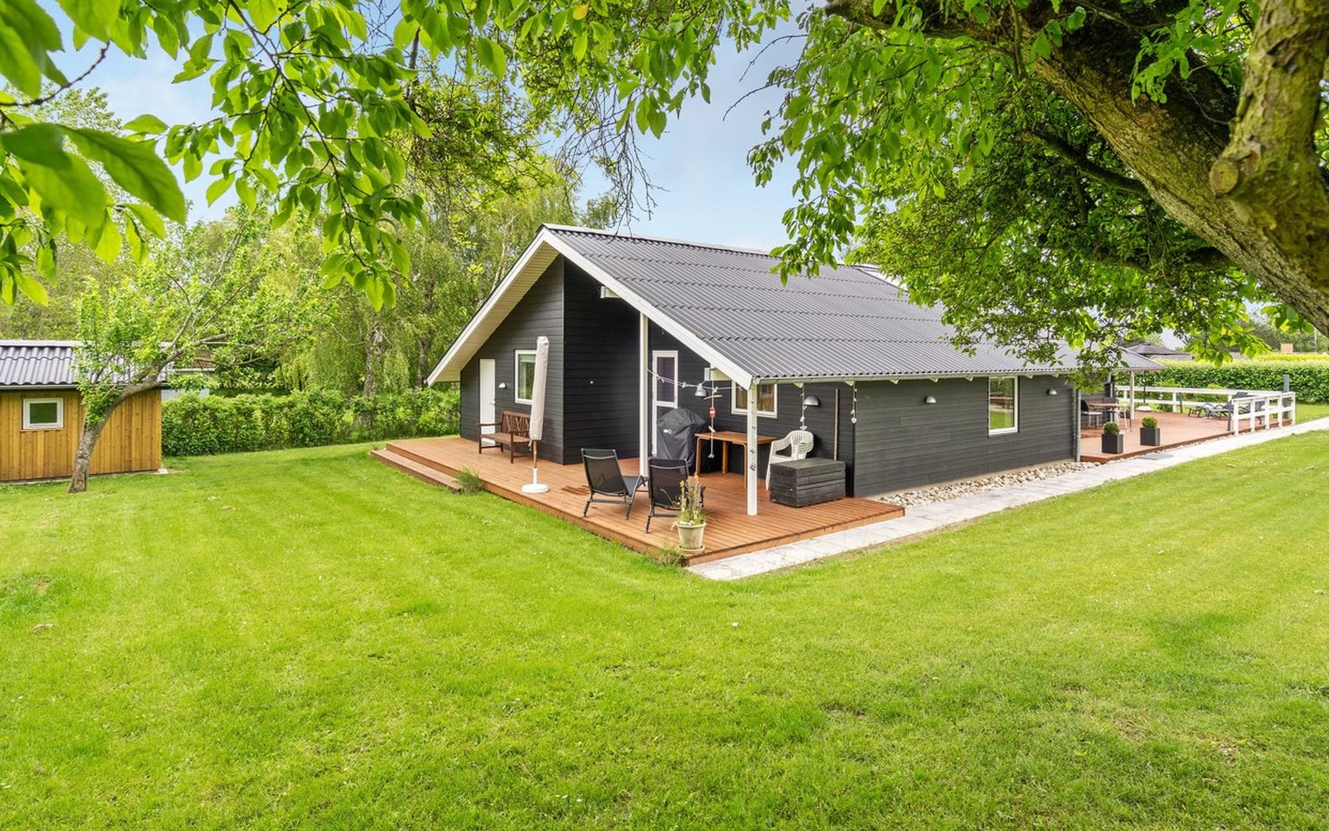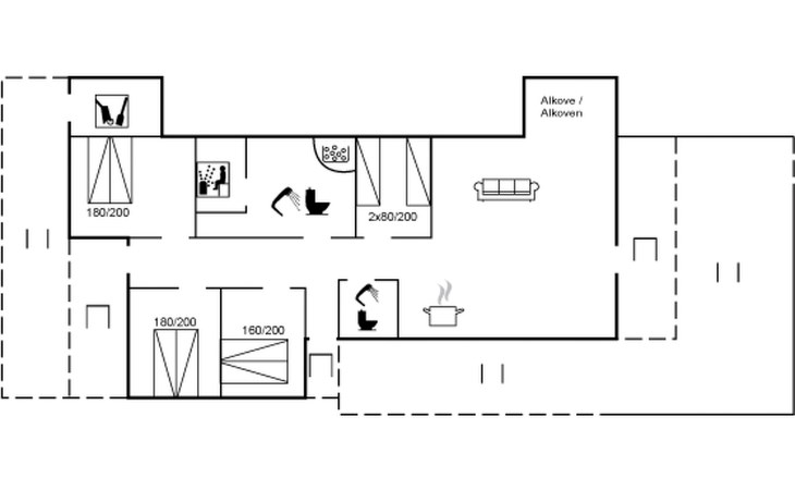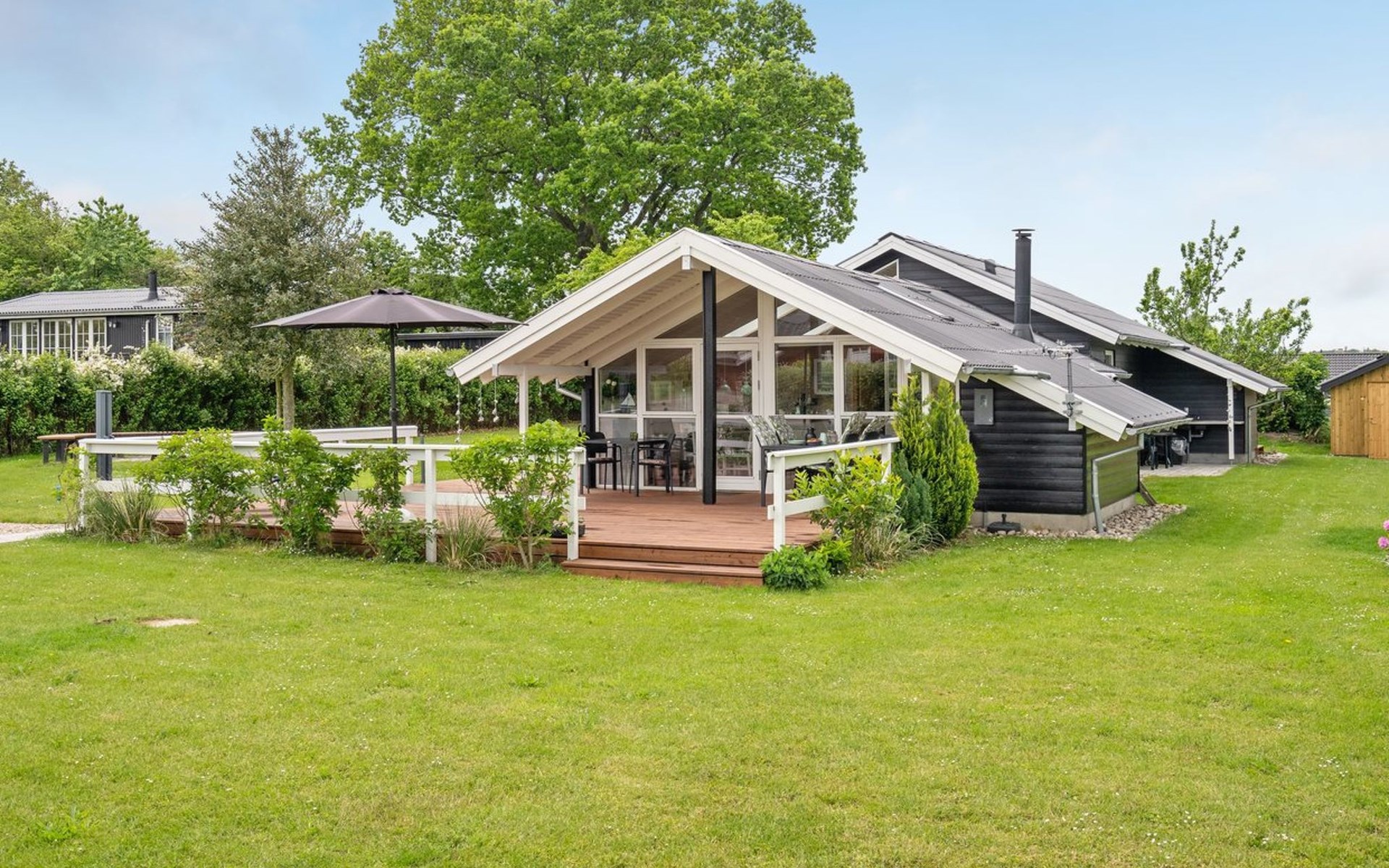 Einfamilienhaus, Baujahr 1982. 275 m vom Meer. Zur Alleinbenutzung: Grundstück 1'213 m2, gepflegter Garten. Terrasse (102 m2), Grill. Im Hause: Sauna, Waschmaschine, Wäschetrockner. Parkplatz beim Haus. Lebensmittelgeschäft 5 km. Der Besitzer akzeptiert keine Jugendgruppen.