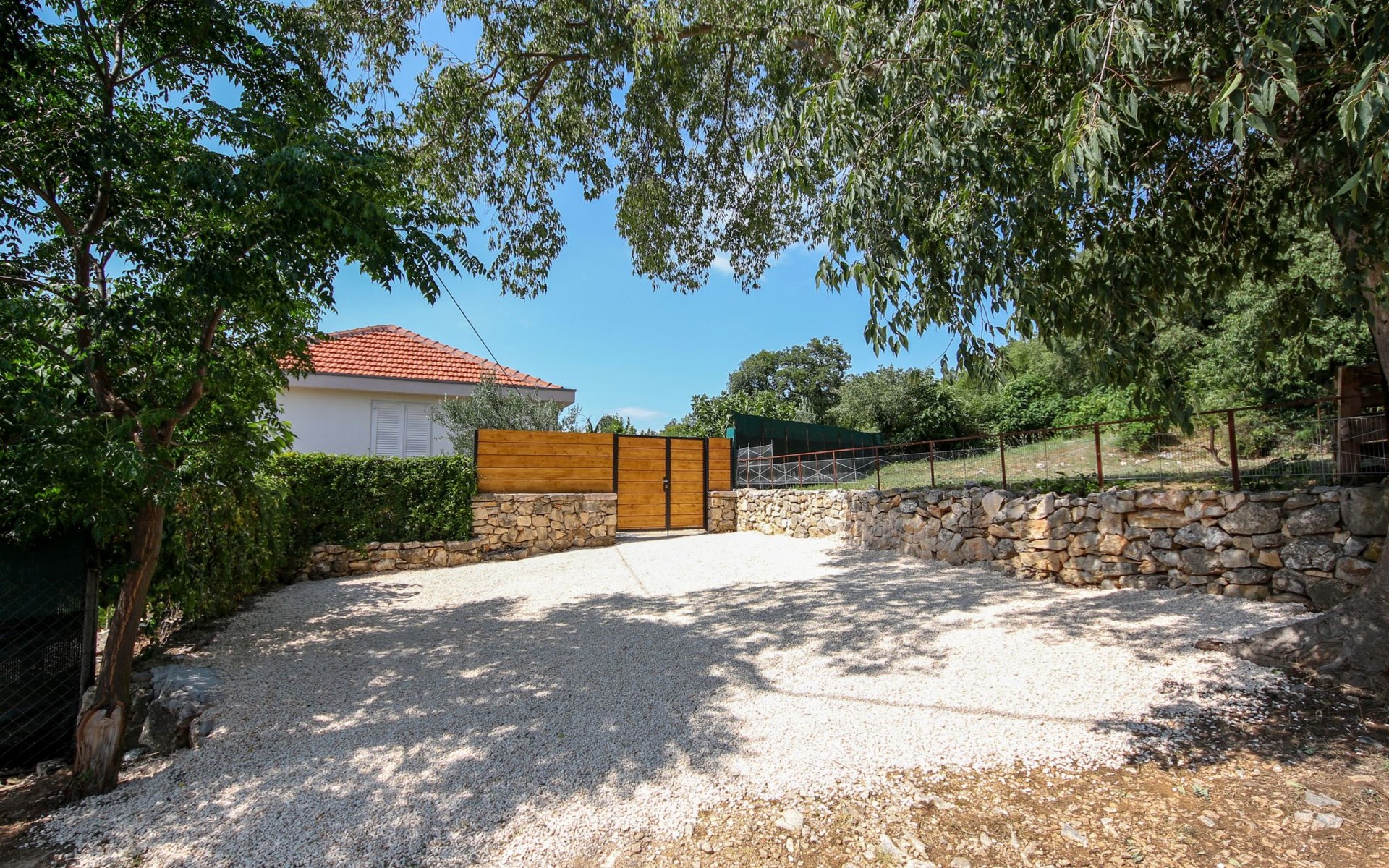 - komplett eingefriedet (mit Mauer, Zaun oder Hecke)