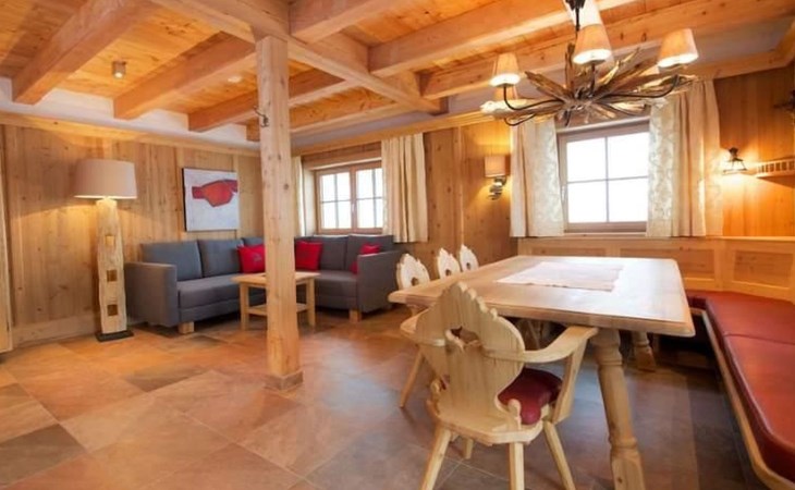 Das 200m² große Chalet bietet bis zu zehn Personen Platz und besitzt zwei Hauptebenen, Erdgeschoss und Obergeschoss, und einen kleinen Keller (10m²). Das gesamtes Chalet ist mit einer automatischen Wärmepumpe und einer kontrollierten Wohnraumlüftung ausgestattet. Zudem bietet es Fußbodenheizung. Sie schlafen in vier Doppelzimmern aus Zirbenholz, die alle mit eigenem Smart-TV ausgestattet sind. Zu jedem Zimmer gehört ein Badezimmer mit Dusche, getrenntem WC und Haarföhn. Bettwäsche und Hand-/Badetücher sowie Bademäntel und -schuhe sind inklusive. Die komplett ausgestattete Küche besitzt Ceranfeld, Geschirrspüler, Mikrowelle, Backrohr, Dampfgarer, NoFrost-BioFresh Kühl und Gefrierkombi mit Eiswürfler und viele weitere Elektrogeräte. Im Haus gibt es auch eine Waschmaschine mit integrierter Trockenfunktion und ein Bügeleisen mit Bügelbrett. In der traditionell eingerichteten Altholzstube mit Wohn- und Essbereich steht ein ausziehbares Sofa für zwei Personen. Zu den weiteren Besonderheiten zählen zwei optimal temperierte Weinkühlschränke für erlesene Weiß- und Rotweine, ein 60” Smart-TV inkl. 5.1 Dolby Surround® Heimkino, Internetzugang, BluRay Player und iPhone®-Dockingstation sowie kostenloses 50 MBit-WLAN. Im Vorraum mit automatischem Skischuhtrockner gibt es eine großzügige Garderobe. Der Keller bietet sich für eine kühle Lagerung von Produkten an.