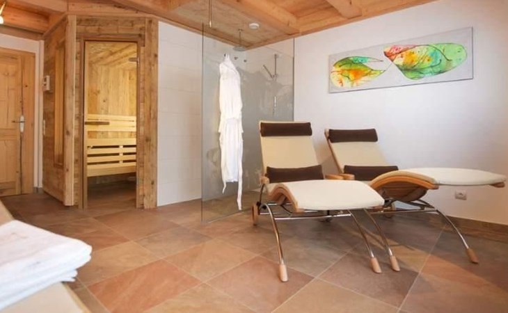 Besonders hervorzuheben ist die Altholz Sauna mit Relaxbereich und Smart-TV. Ein Kinderbett ist vorhanden. Ein absperrbares Skidepot befindet sich neben dem Haupteingang (Erdgeschossniveau).