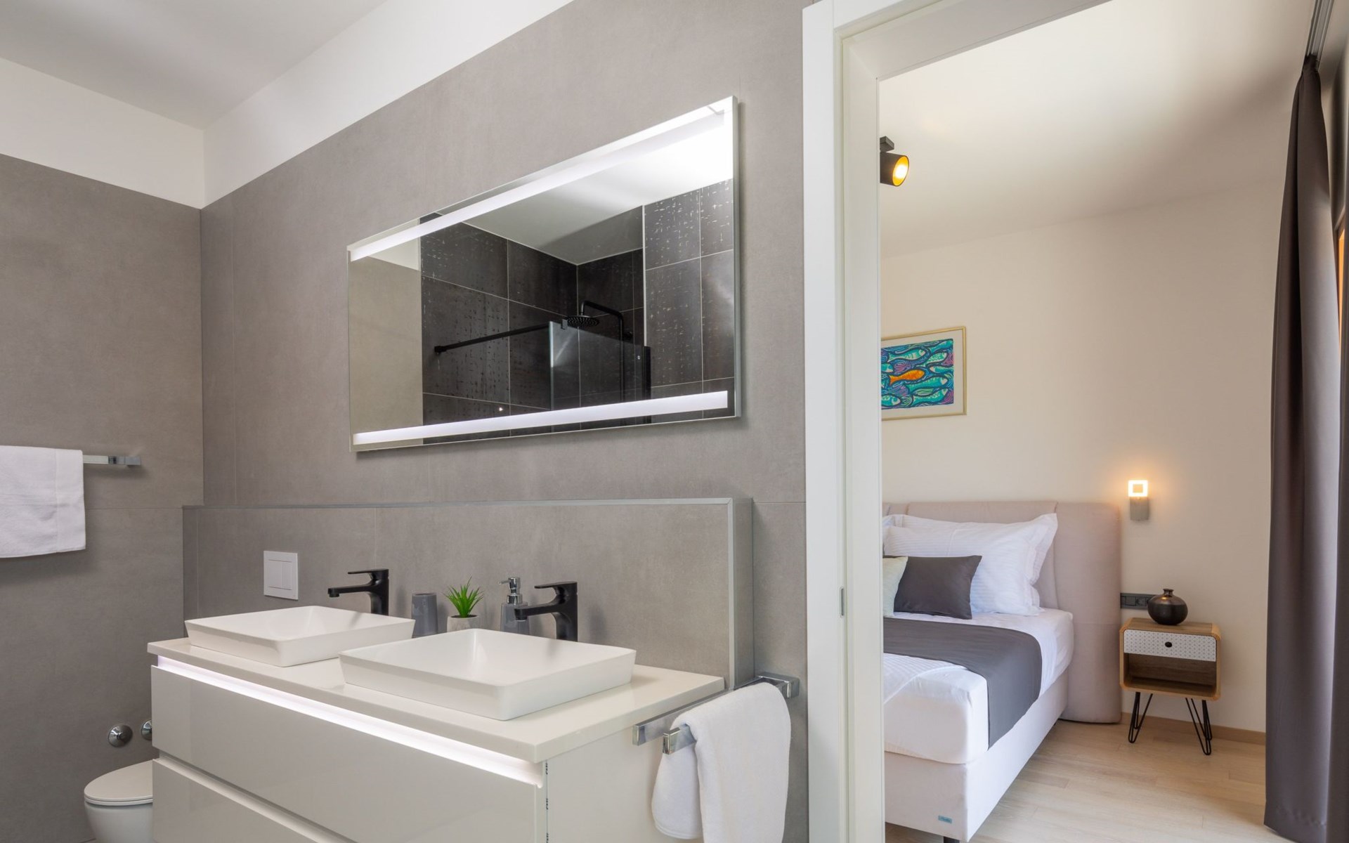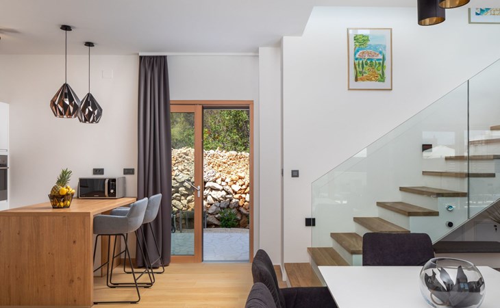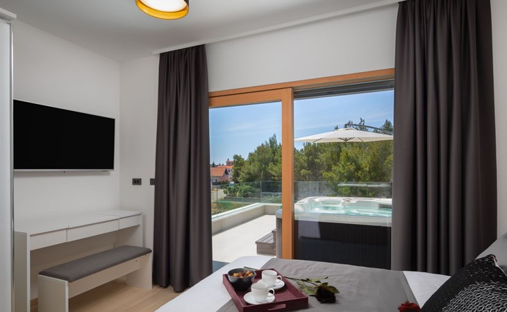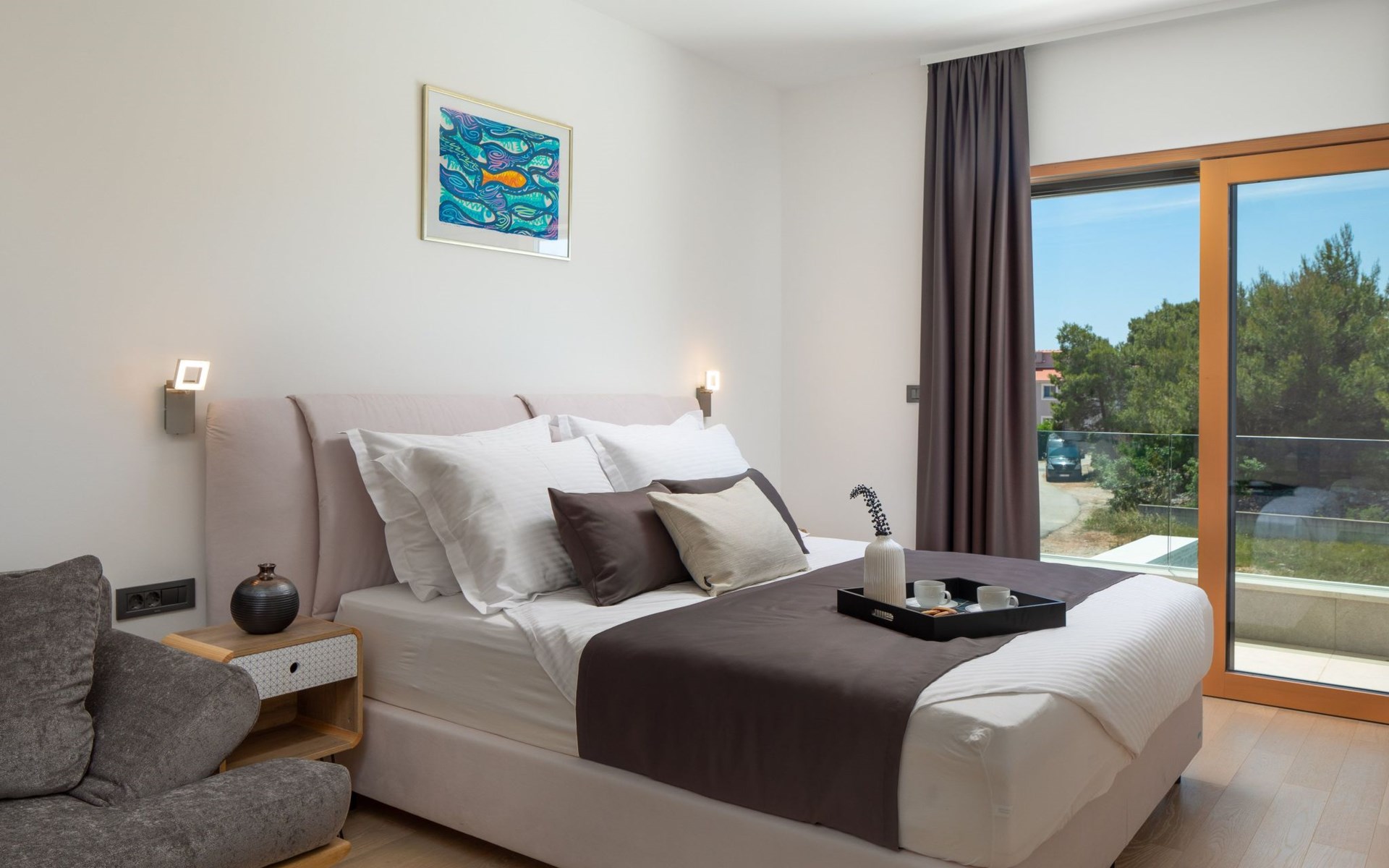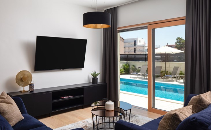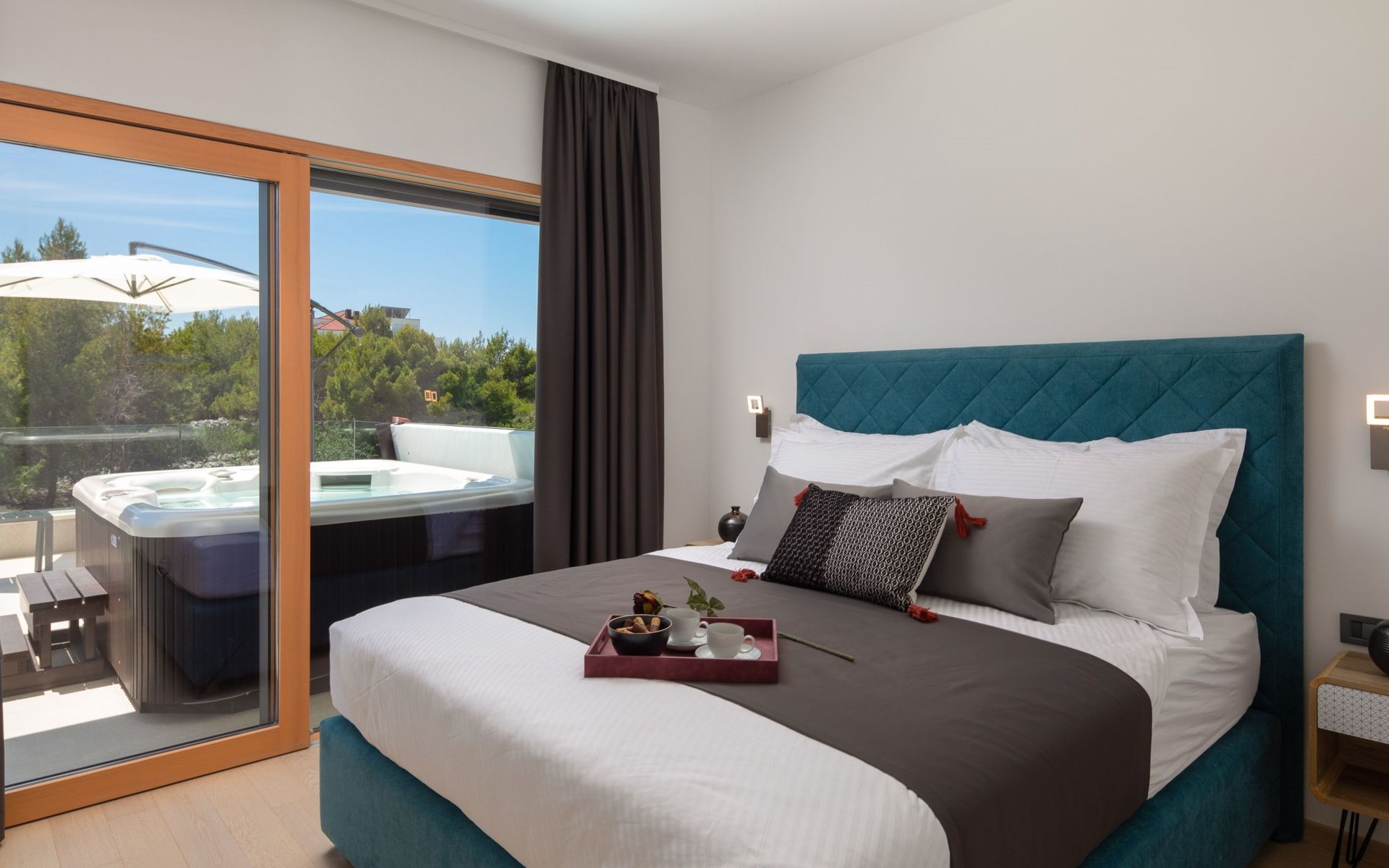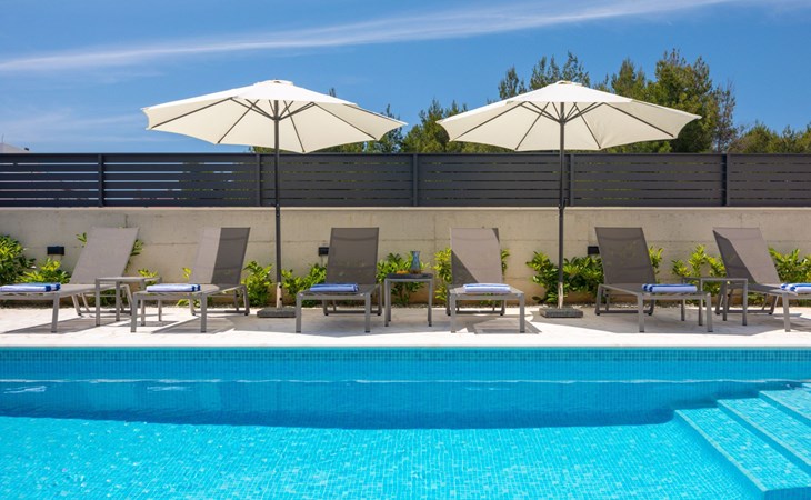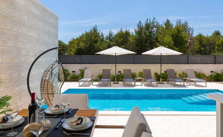 Treten Sie nach draußen und entdecken Sie Ihr privates Paradies mit einem 40 m2 großen, beheizten Swimmingpool, der mit stimmungsvollen Lichtern am Boden für ein bezauberndes Bad in der Nacht ausgestattet ist. Der wunderschön gepflegte Garten bietet eine friedliche Umgebung zum Entspannen im Freien, während die mit Sonnenliegen und einem Grill ausgestattete Terrasse zum Essen im Freien oder einfach zum Sonnenbaden in der dalmatinischen Sonne einlädt. Für die ultimative Entspannung können Sie sich im einladenden Whirlpool entspannen oder Ihre Sinne in der Sauna beruhigen.
