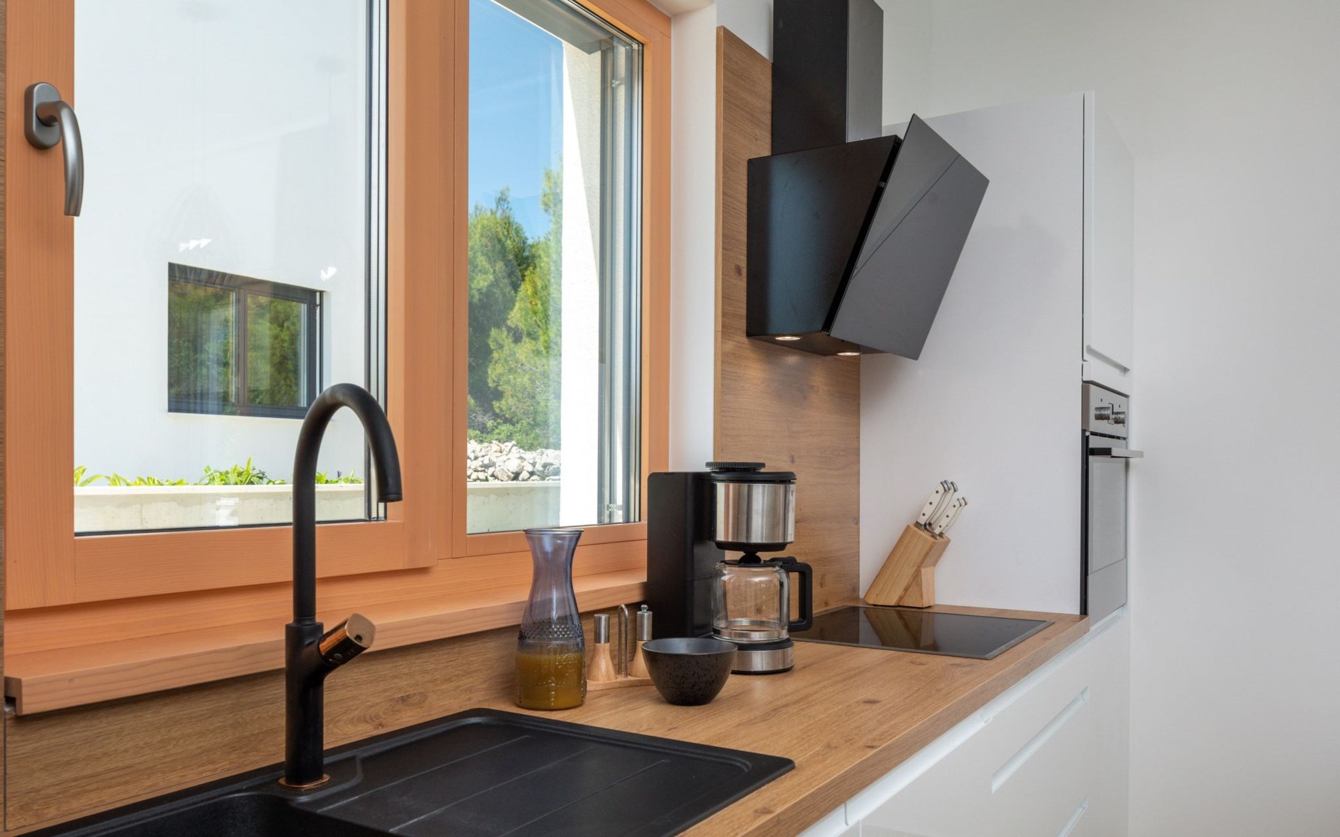 Unser exquisites Ferienhaus ist ganz auf Ihren Komfort und Ihre Bequemlichkeit ausgerichtet. Im Inneren finden Sie vier geräumige Schlafzimmer, die mit einer Klimaanlage ausgestattet sind, um allen Gästen eine erholsame Nachtruhe zu garantieren. Die Villa verfügt über insgesamt fünf Badezimmer, von denen zwei Schlafzimmer ein eigenes Bad mit Dusche und Badewanne haben, damit Sie sich entspannen können. Die Gäste werden den zusätzlichen Komfort der Fußbodenheizung im gesamten Haus zu schätzen wissen, zusammen mit einer Reihe von modernen Annehmlichkeiten wie einer Waschmaschine, einem Geschirrspüler, einer Kaffeemaschine und einem Wasserkocher, die einen problemlosen Aufenthalt gewährleisten.