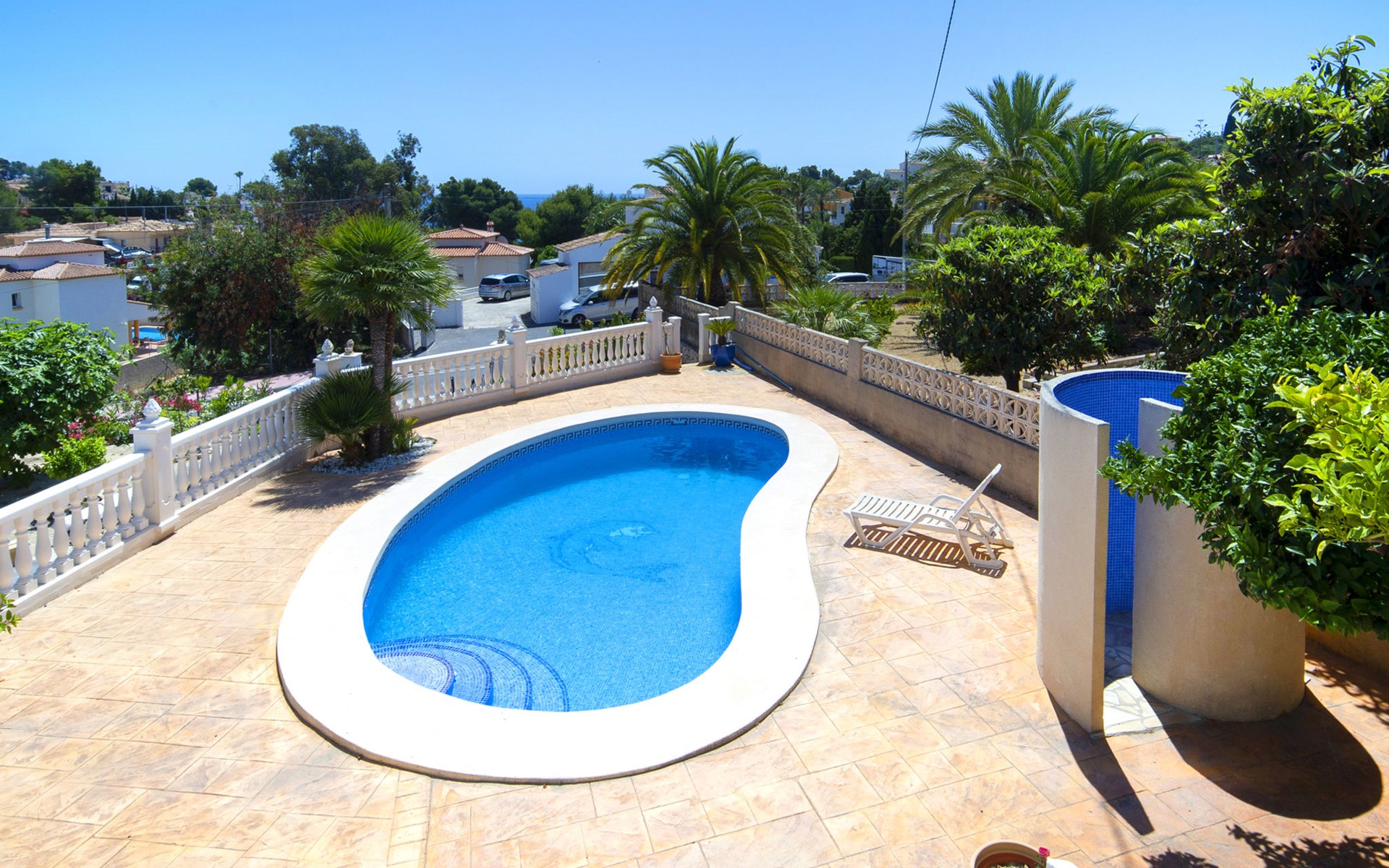 La Fustera: Gemütliches, komfortables Zweifamilienhaus "La Marina". Im Ort, 5.7 km vom Zentrum von Calpe, im Bezirk La Fustera, sonnige Lage im Villenviertel, 450 m vom Meer, 450 m vom Strand, an einer Hauptstrasse. Zur Mitbenutzung: Grundstück (eingezäunt), Garten, Schwimmbad (saisonale Verfügbarkeit: 01.Jan. - 31.Dez.). Aussendusche, Terrasse, Grill, Parkplatz. Lebensmittelgeschäft, Supermarkt 46 m, Restaurant, Bar, Café 400 m, Bushaltestelle 250 m, Sandstrand "Playa La Fustera" 450 m. Sporthafen 950 m, Jacht-Hafen 950 m, Golfplatz (9 Loch) 5.4 km. Nahe gelegene Sehenswürdigkeiten: Aqualandia, Mundomar, Terra Mítica, Terra Natura, Benidorm Palace Benidorm. Bitte beachten: Der Besitzer wohnt auf dem gleichen Grundstück.