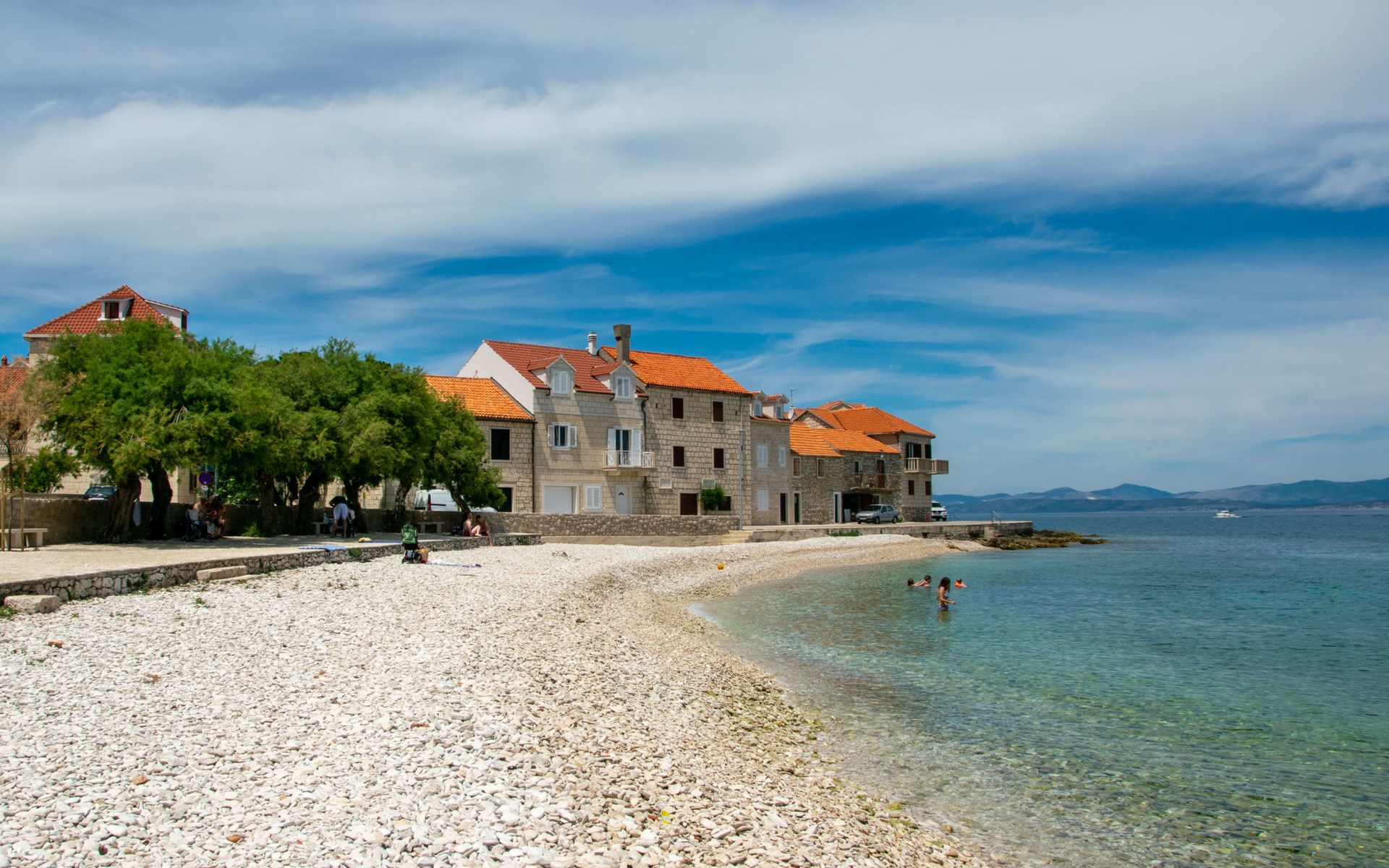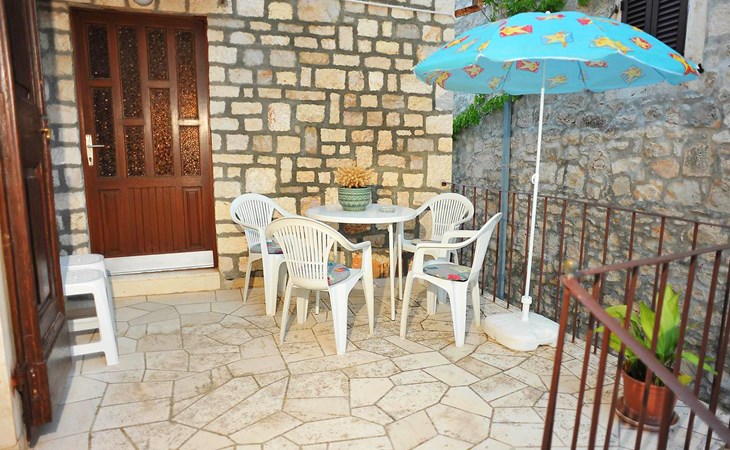 Mehrfamilienhaus "Mirta". 200 m vom Zentrum von Sutivan, ruhige Lage, 30 m vom Meer, 25 m vom Strand. Zur Mitbenutzung: Grill. Im Hause: Internetzugang. Öffentliche Parkplätze. Einkaufsgeschäft, Restaurant 300 m, Bushaltestelle 350 m, Kieselstrand 25 m. Tennis 700 m.