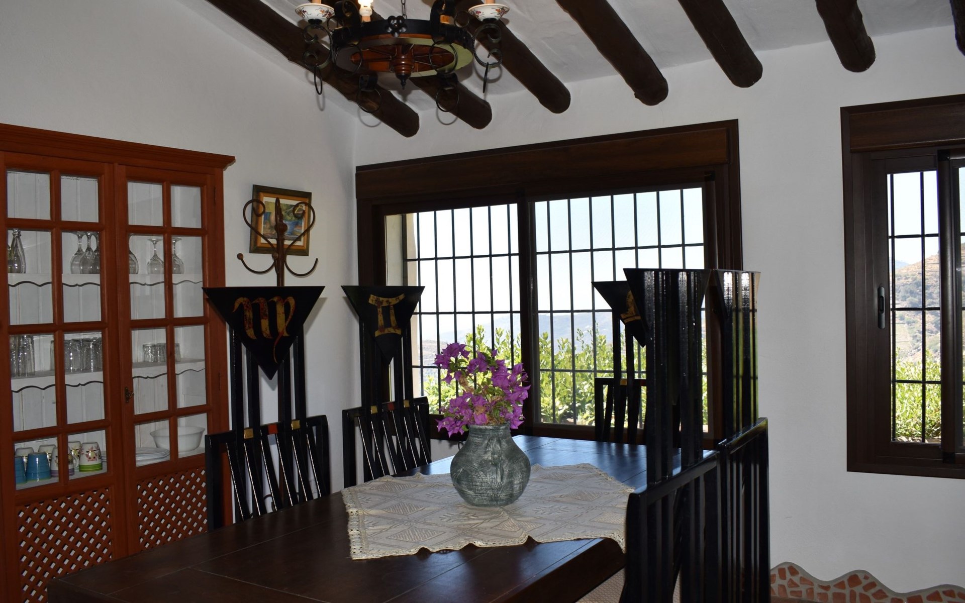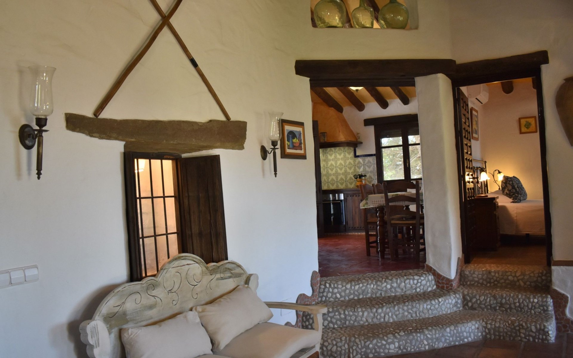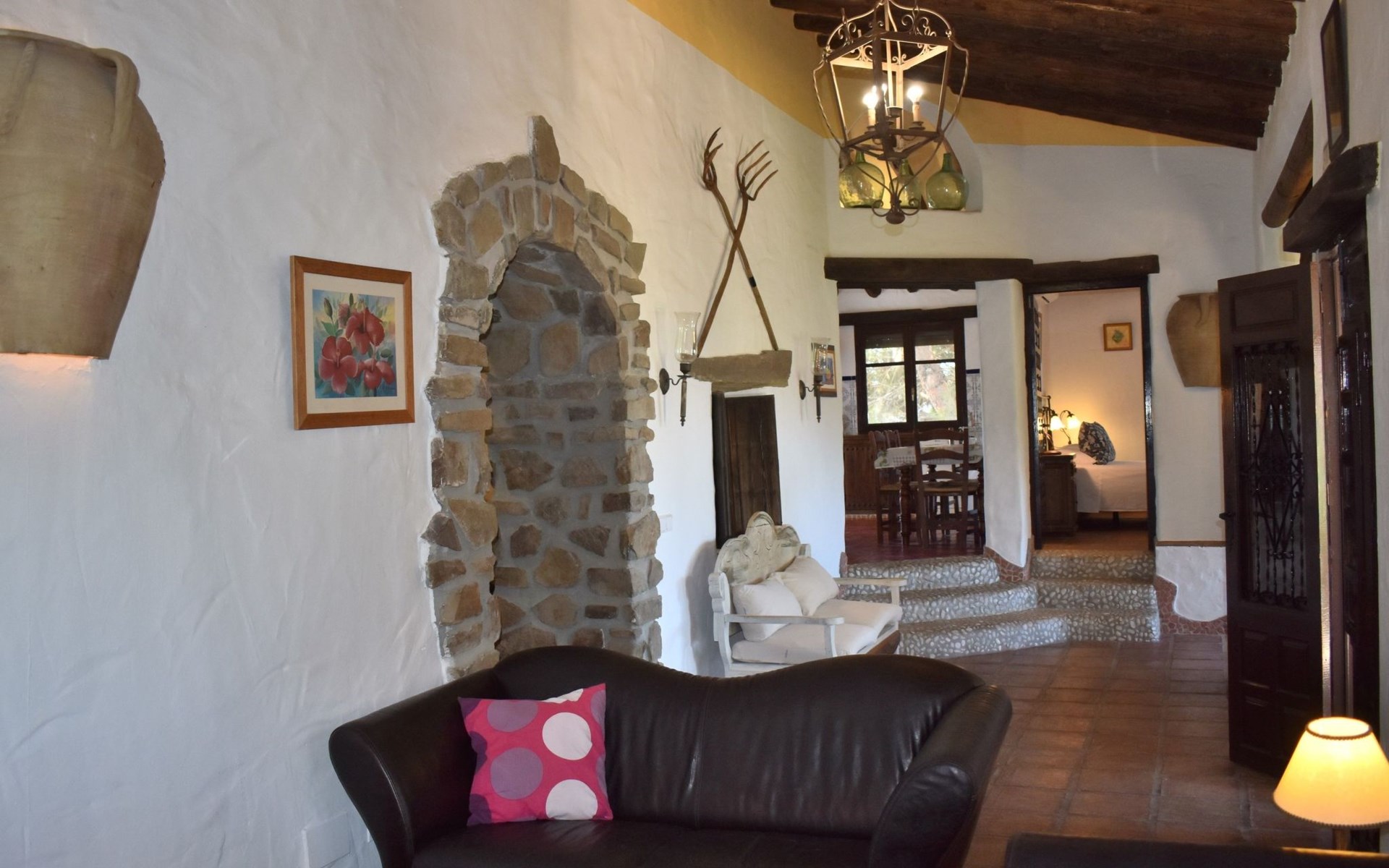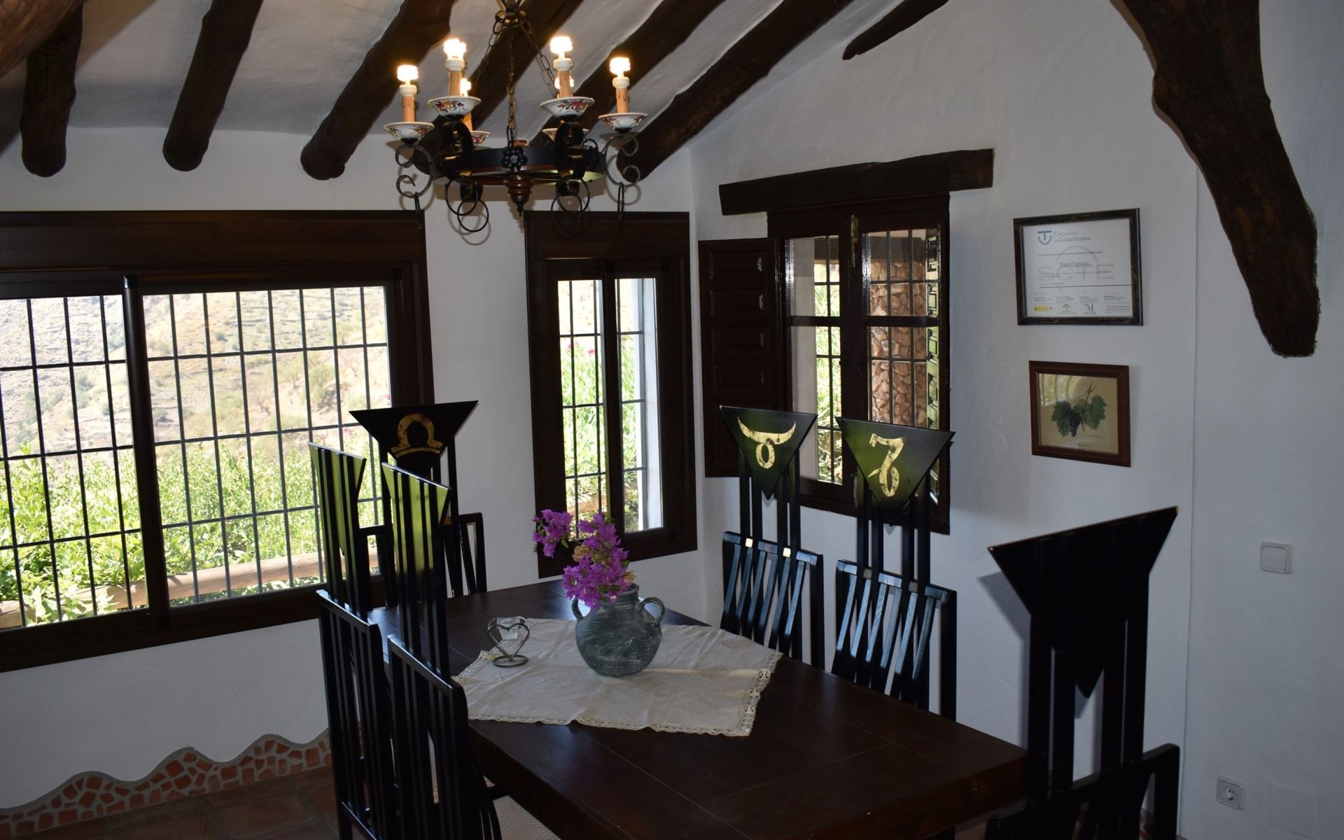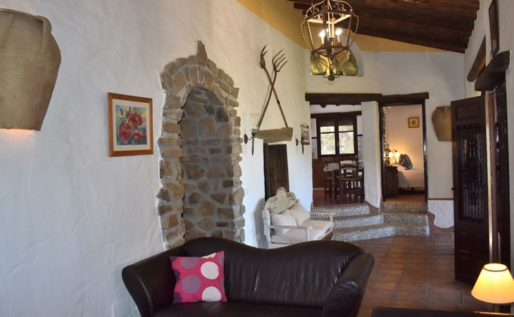 Die Finca Carrulo bietet Platz für 6 Personen und beeindruckt mit seiner originalgetreuen und detaillierten Dekoration. Im Wohnzimmer finden wir einen traditionellen andalusischen Kamin, Sat Tv und 2 Sofas. Im Anschluss die voll ausgestattete Küche mit Esstisch und Ausgang zu einem absolut privatem Balkon, der zu jeder Tageszeit ein idealer Ort für Mahlzeiten oder zum relaxen und geniessen der beeindruckenden Ausblicke auf die Bergwelt und die Küste ist. Die Finca komplettiert sich mit 3 Schlafzimmern, davon 2 mit Doppelbett und 1 mit 2 Einzelbetten und 2 Badezimmer, eins mit Dusche und das andere mit Badewanne und Dusche.