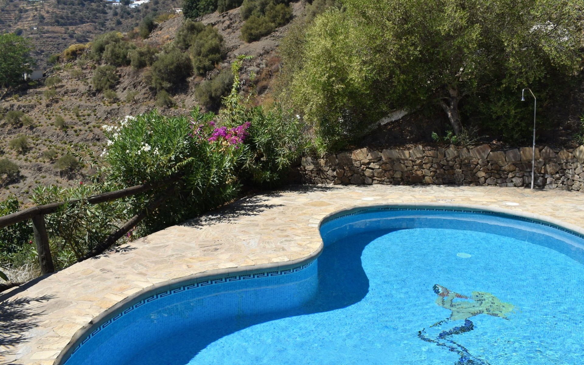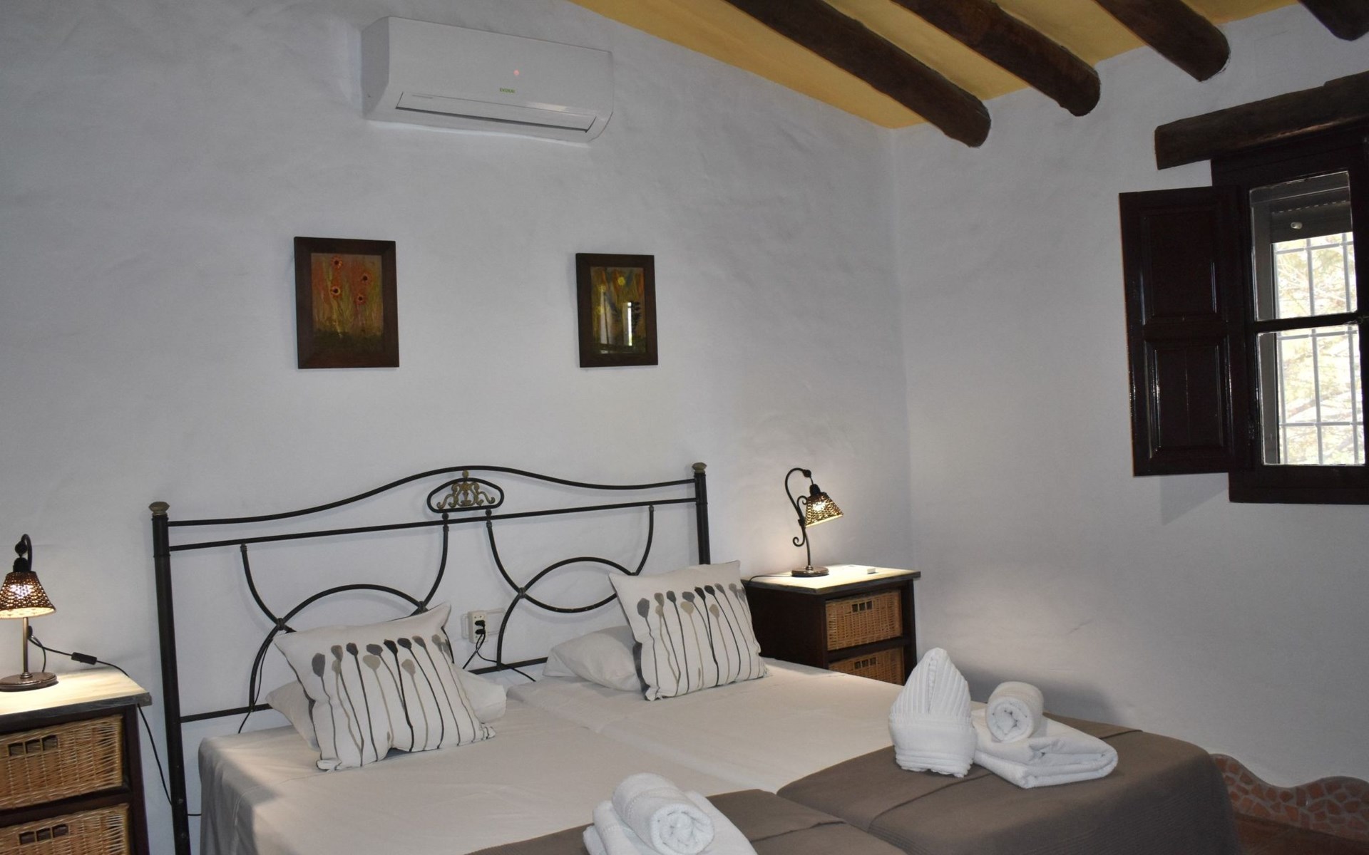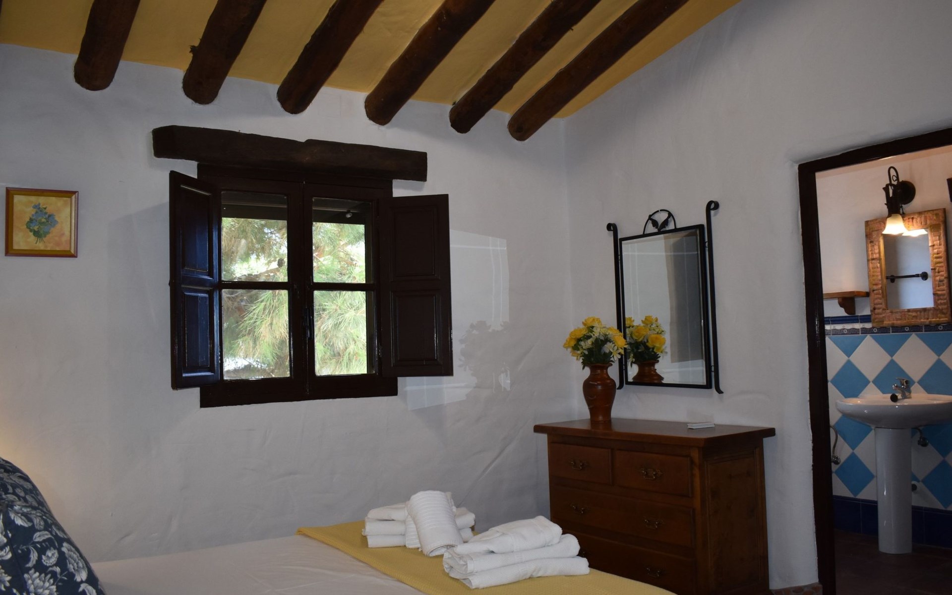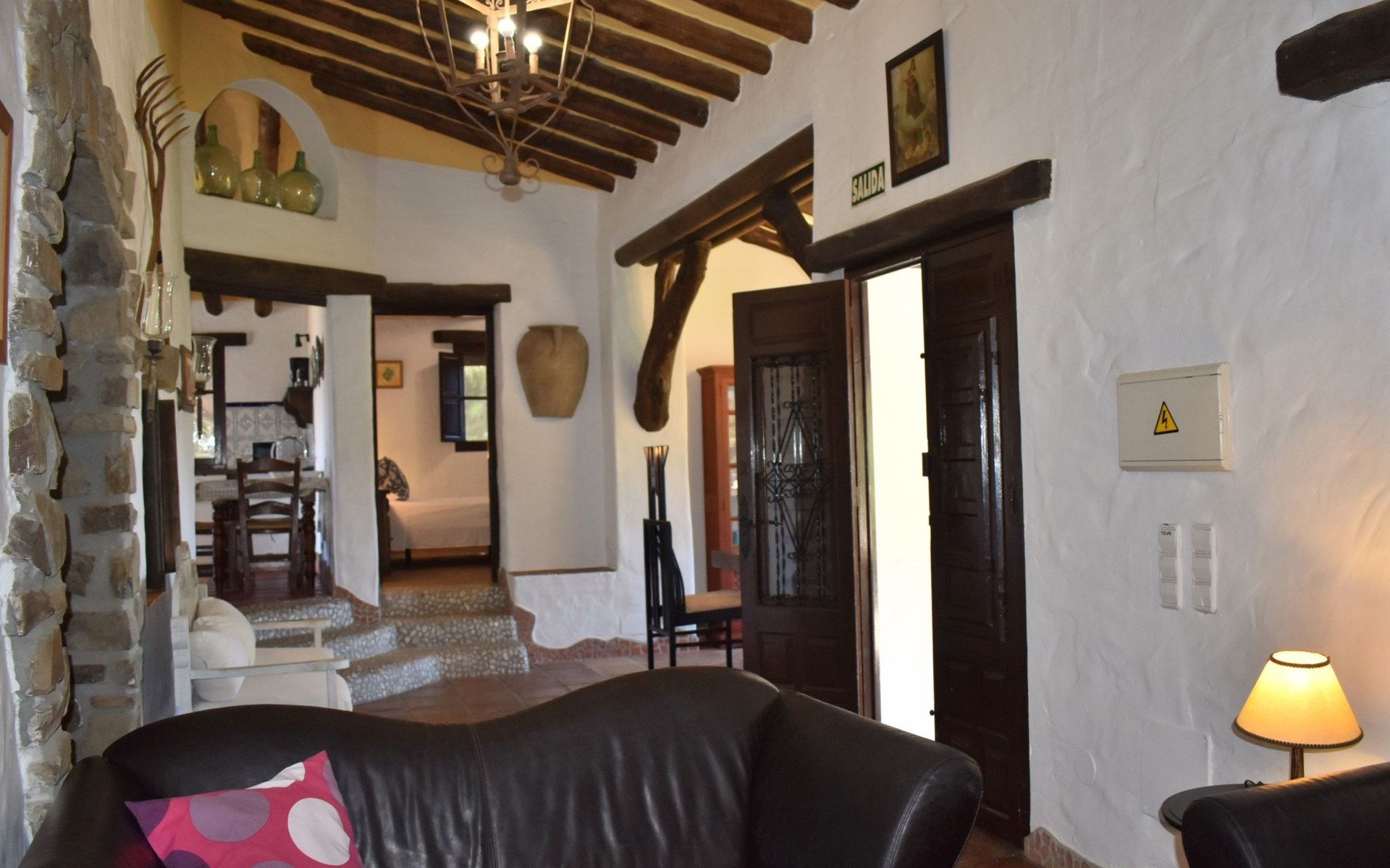 Die Finca Carrulo bietet Platz für 6 Personen und beeindruckt mit seiner originalgetreuen und detaillierten Dekoration. Im Wohnzimmer finden wir einen traditionellen andalusischen Kamin, Sat Tv und 2 Sofas. Im Anschluss die voll ausgestattete Küche mit Esstisch und Ausgang zu einem absolut privatem Balkon, der zu jeder Tageszeit ein idealer Ort für Mahlzeiten oder zum relaxen und geniessen der beeindruckenden Ausblicke auf die Bergwelt und die Küste ist. Die Finca komplettiert sich mit 3 Schlafzimmern, davon 2 mit Doppelbett und 1 mit 2 Einzelbetten und 2 Badezimmer, eins mit Dusche und das andere mit Badewanne und Dusche.