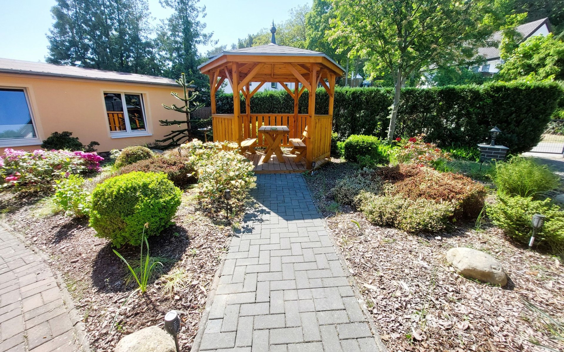 Ihr Auto können Sie ganz einfach auf einen Stellplatz des Hofes parken. Ein gemeinschaftlicher Pavillon steht Ihnen zum Genießen der Natur zur Verfügung.