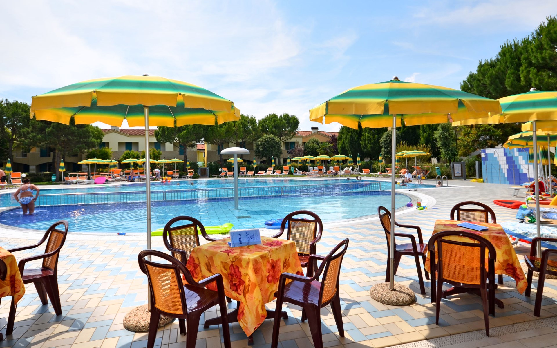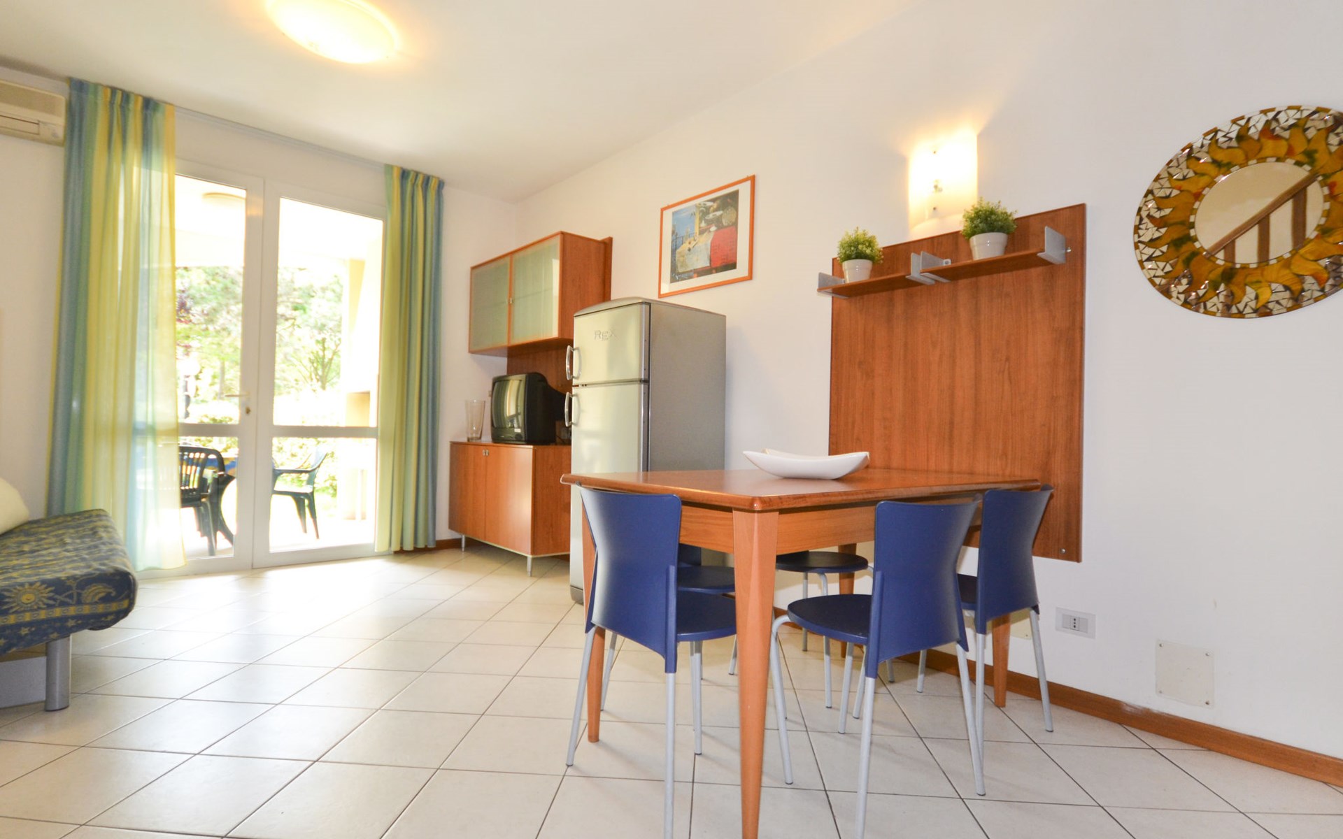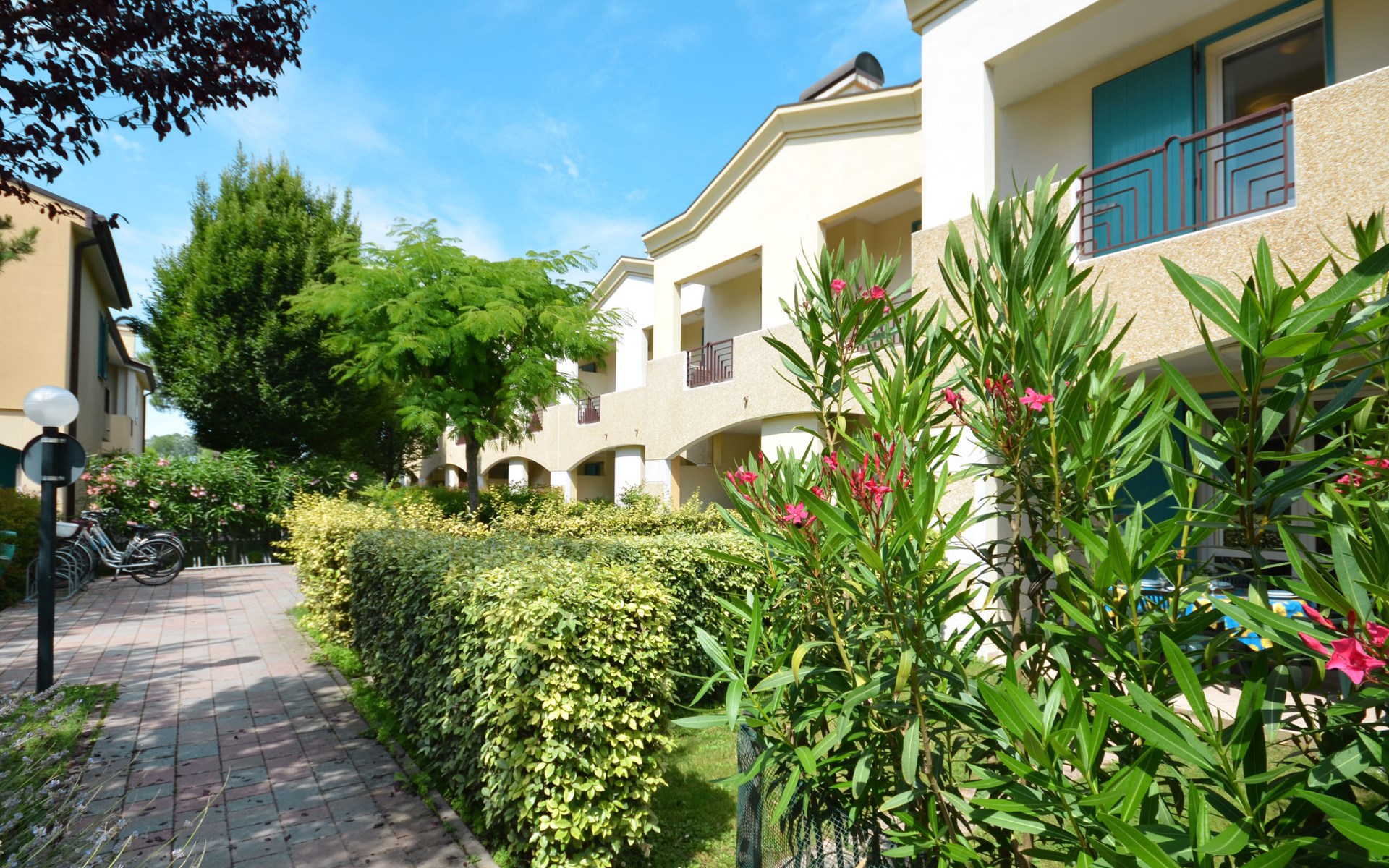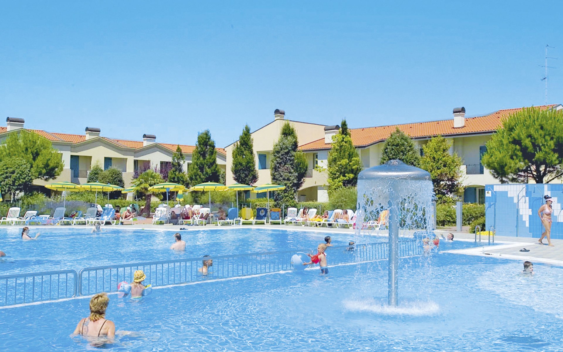 Grosse, kinderfreundliche Ferienanlage "Villaggio Marco Polo". 100 Häuser in der Residenz. Im Ortsteil Bibione-Spiaggia, 800 m vom Zentrum von Bibione, 13 km vom Zentrum von Lignano, 100 km vom Zentrum von Venezia, 650 m vom Meer. Zur Mitbenutzung: Grundstück 3 ha (eingezäunt), gepflegter Garten mit Rasen und Bäumen, 2 Schwimmbäder (25 x 12 m, 100 m2, saisonale Verfügbarkeit: 10.Mai. - 27.Sep.). Kinderbecken, Aussendusche, Beachvolleyball, Kinderspielplatz. In der Anlage: Bar, Wireless LAN, Waschmaschine, Wäschetrockner (zur Mitbenutzung, extra), Fahrradverleih. Parkplatz beim Haus auf dem Grundstück, Gemeinschaftsgarage. Lebensmittelgeschäft 800 m, Bushaltestelle 400 m, Bahnstation "Latisana (Milano-Venezia-Triest)" 21 km, Sandstrand 650 m, Thermalbad "Bibione Thermae" 650 m. Golfplatz (18 Loch) 9 km. Nahe gelegene Sehenswürdigkeiten: Oasi Naturalistica Val Grande - Bibione. Bitte beachten: Kinderbetreuung in der Saison (inkl.). Der Besitzer akzeptiert keine Gruppen. Strandservice: Von ca. Anfang Mai bis ca. Ende September sind jeweils 1 Liegestuhl, 1 Sonnenliege und 1 Sonnenschirm pro Wohnung im Mietpreis enthalten. Shuttleservice: Von ca. 23.05.-11.09. kostenloser Shuttlebus zum Strandabschnitt 'Un Nuovo Posto al Sole' bei den Thermen (täglich im 30-Minuten-Rhythmus, von 8-19 h). Bar geöffnet von ca. 23.05.-18.09.